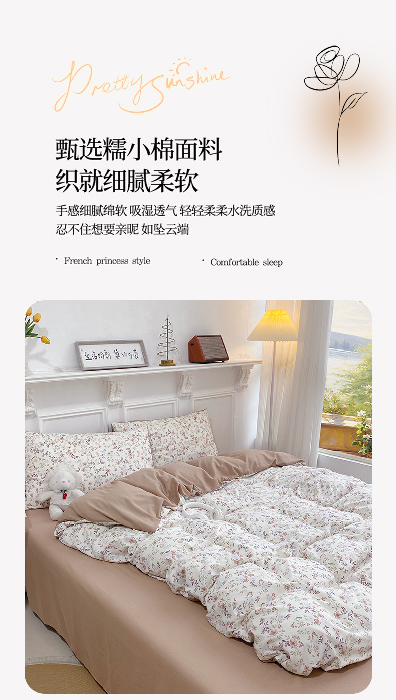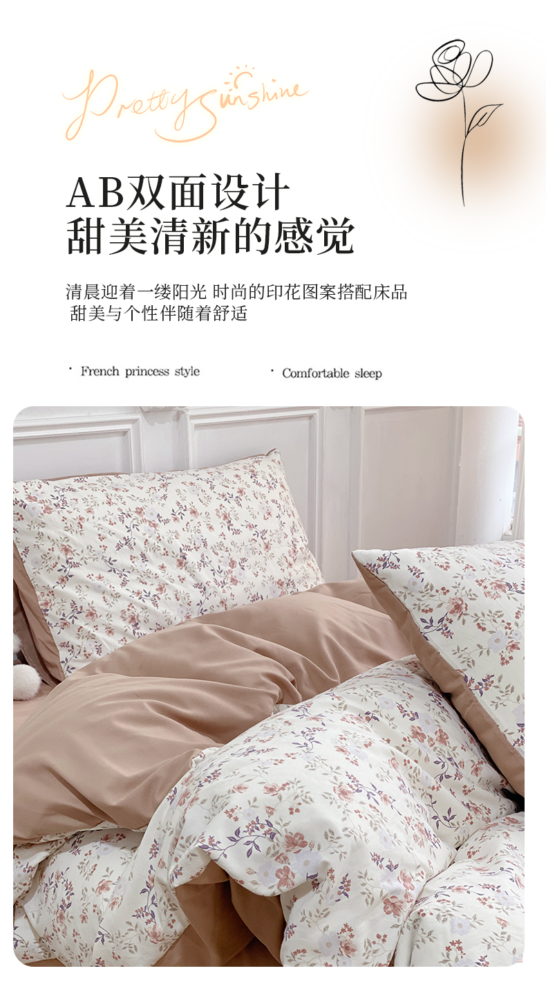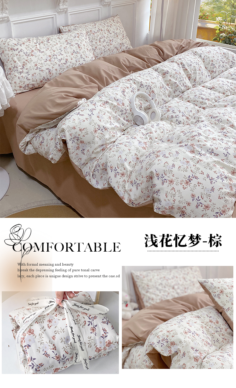 当前位置: 91家纺网 > 商品网购 > 床品套件 > 四件套 > 水洗棉四件套 > 丫丫家纺 2025新小红书直播热款水洗糯小棉四件套软敷敷糯叽叽ins卡通小清新学生床加大号小号单被套单床笠三四 A浅花忆梦-棕
