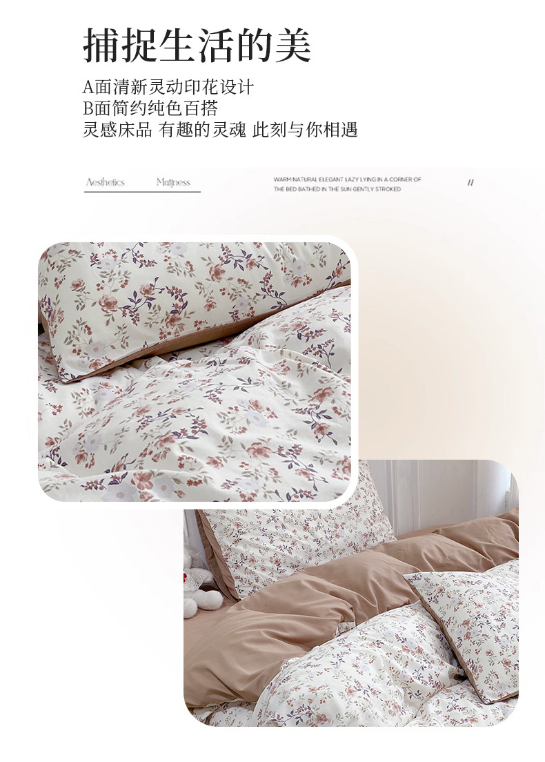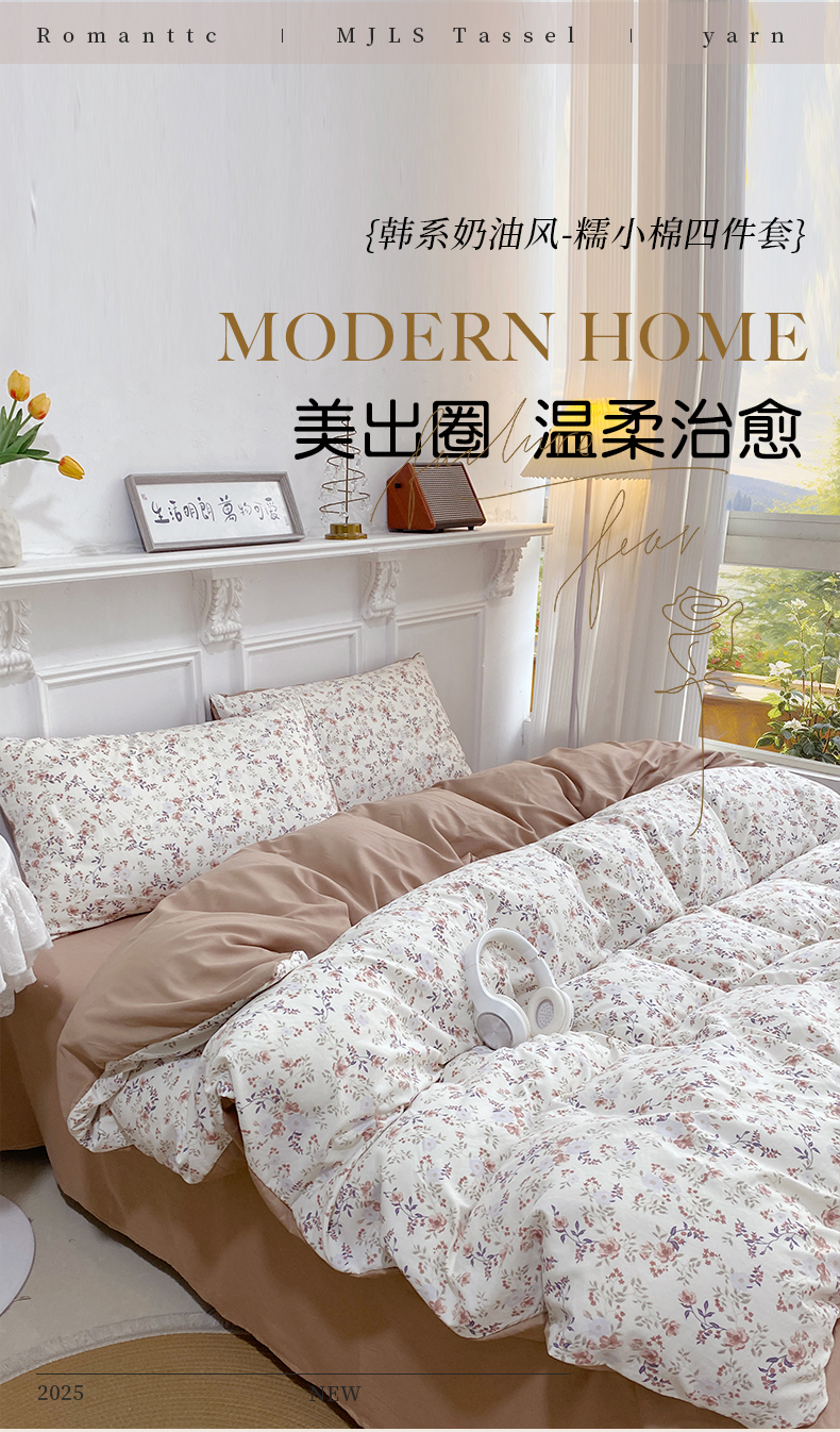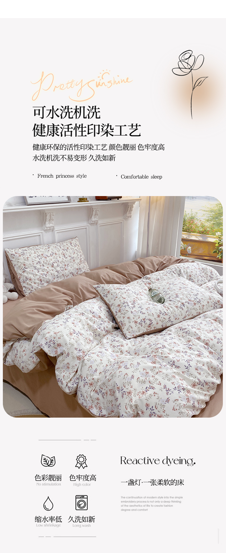 当前位置: 91家纺网 > 商品网购 > 床品套件 > 四件套 > 水洗棉四件套 > 丫丫家纺 2025新小红书直播热款水洗糯小棉四件套软敷敷糯叽叽ins卡通小清新学生床加大号小号单被套单床笠三四 A浅花忆梦-棕