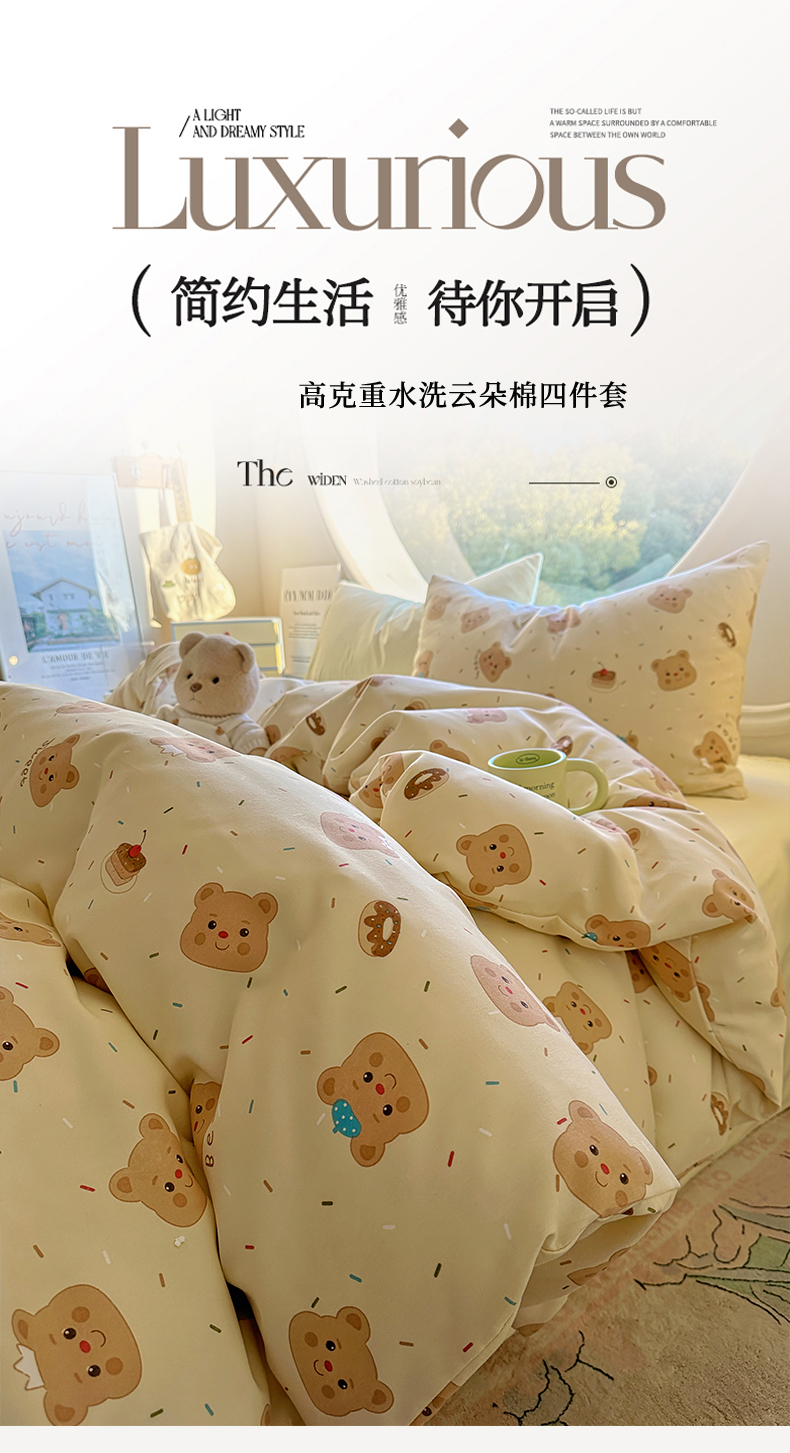 当前位置: 91家纺网 > 商品网购 > 床品套件 > 四件套 > 水洗棉四件套 > 茉礼 2025新款高克重ins风超柔软软糯糯小清新卡通印花水洗棉四件套 奶油小熊