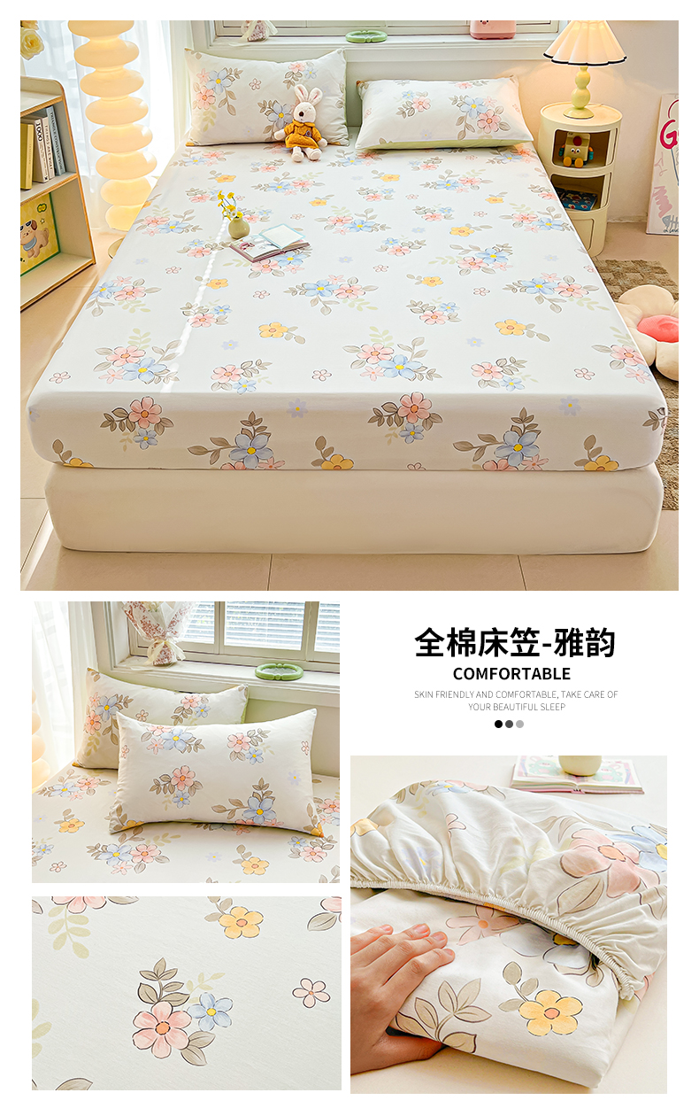 • 91家纺网 家纺一手货源 找家纺 雯豆2025春夏新品全棉床笠三件套学生成人印花纯棉床罩 全棉床笠-雅韵