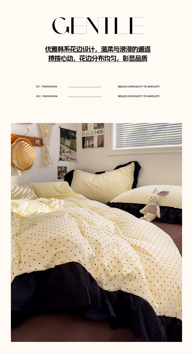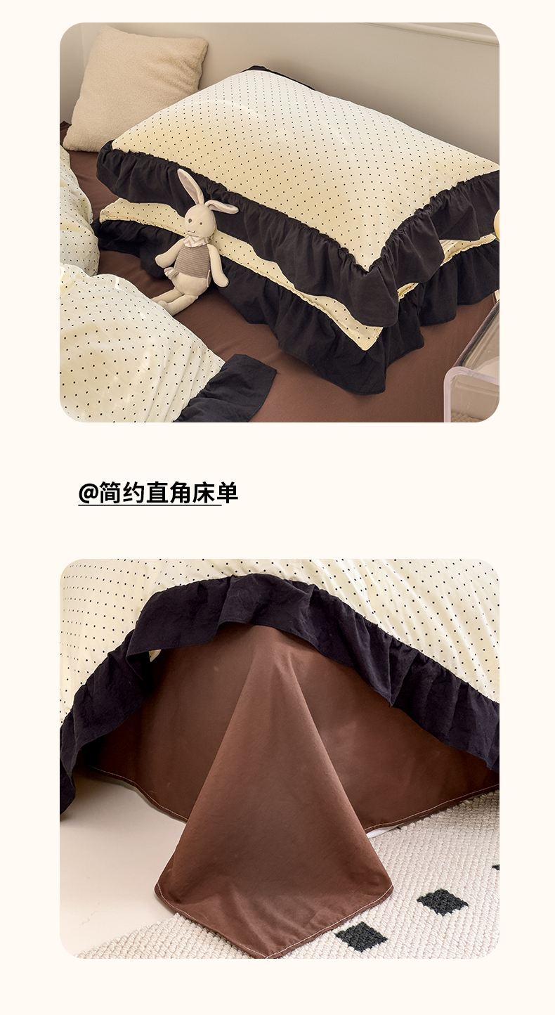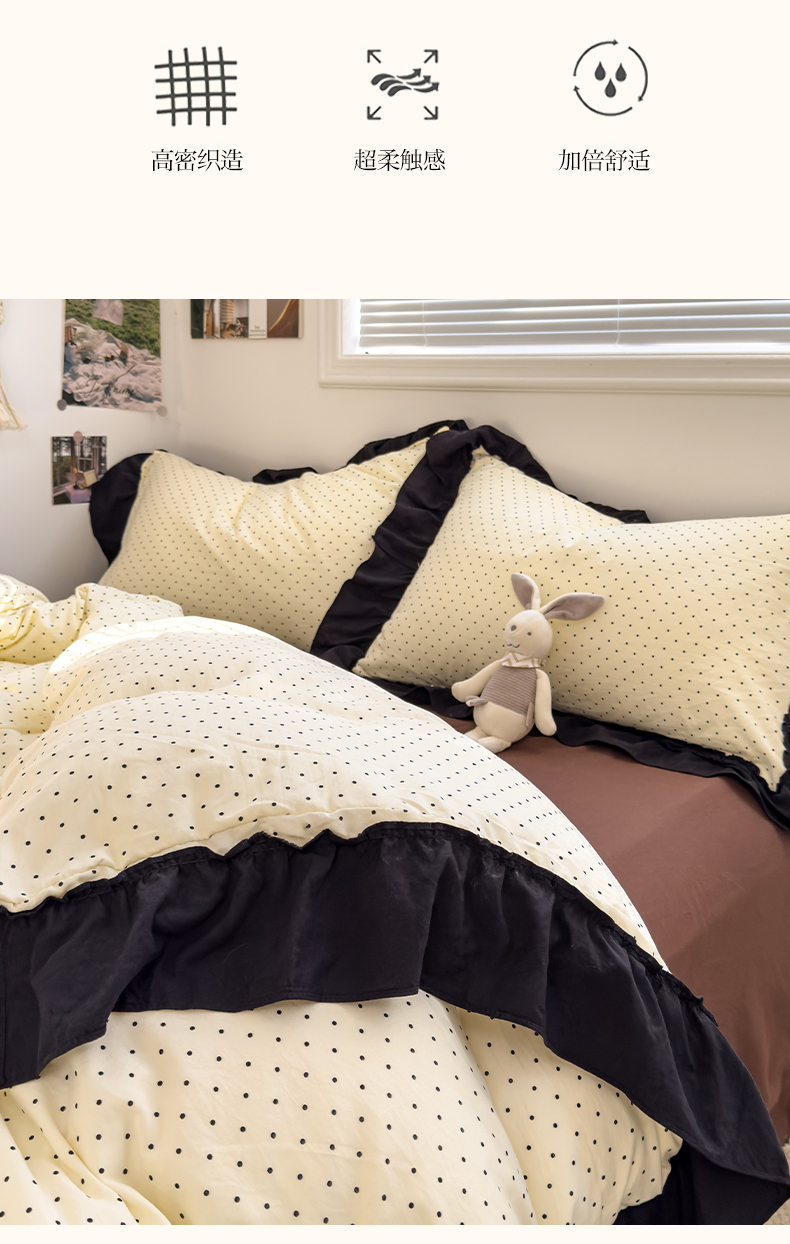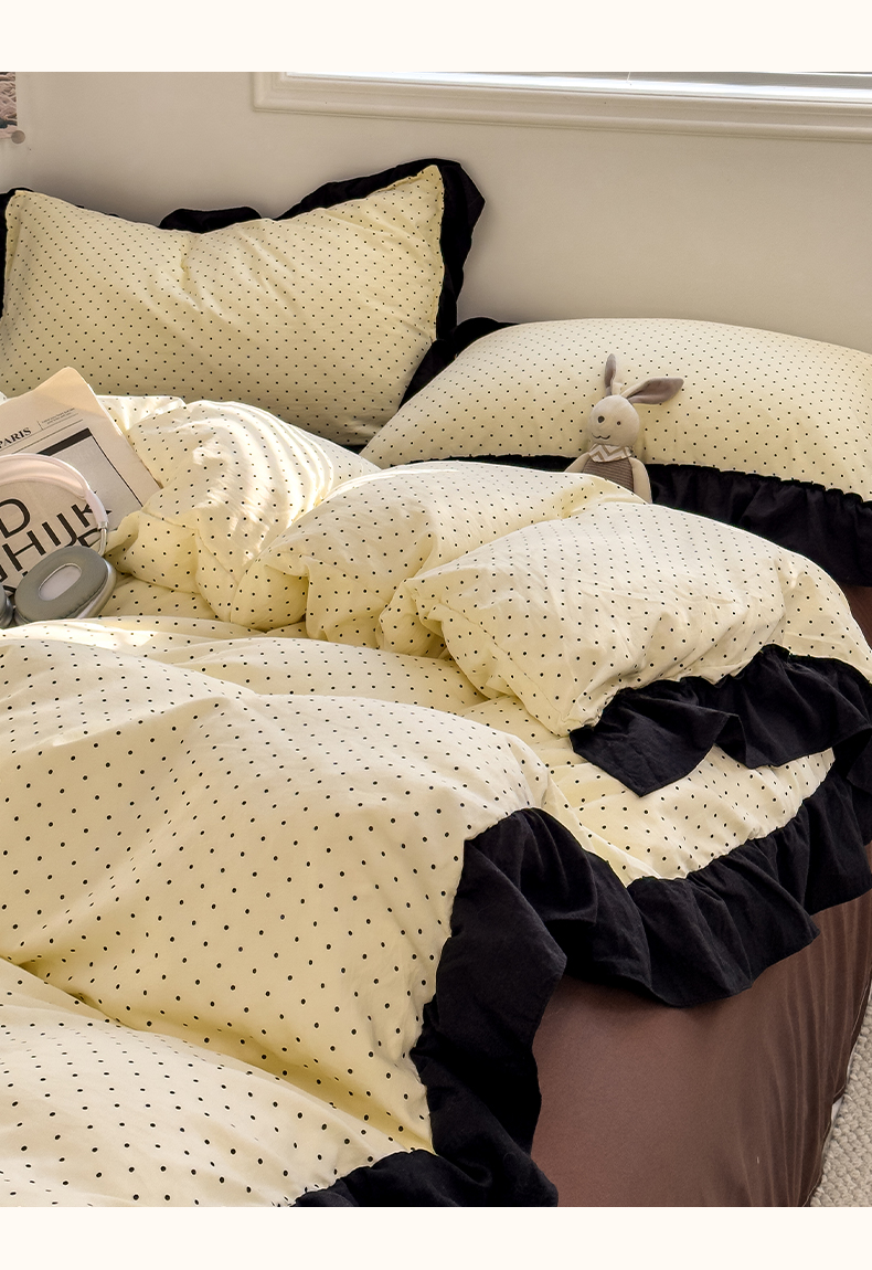 当前位置: 91家纺网 > 商品网购 > 床品套件 > 四件套 > 双层纱四件套 > 繁花家居 2025新款黑色花边赫本风水洗棉双层纱针织棉韩式花边四件套 星点绮梦
