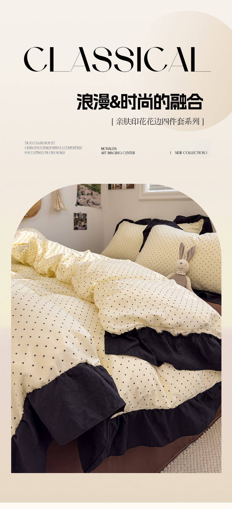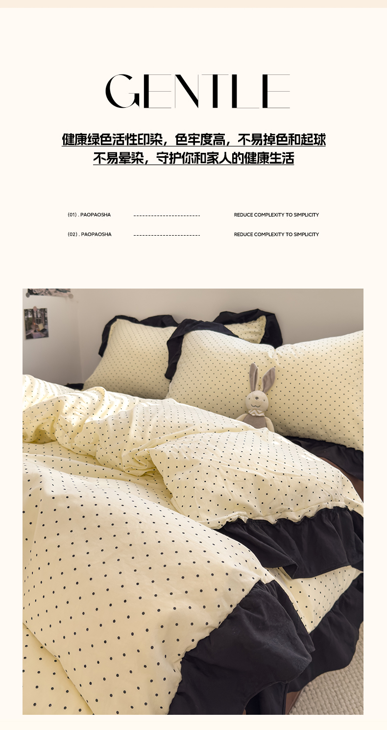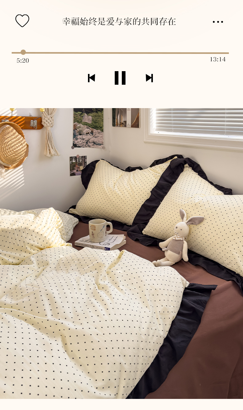 当前位置: 91家纺网 > 商品网购 > 床品套件 > 四件套 > 双层纱四件套 > 繁花家居 2025新款黑色花边赫本风水洗棉双层纱针织棉韩式花边四件套 星点绮梦
