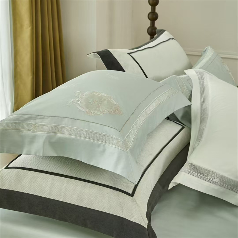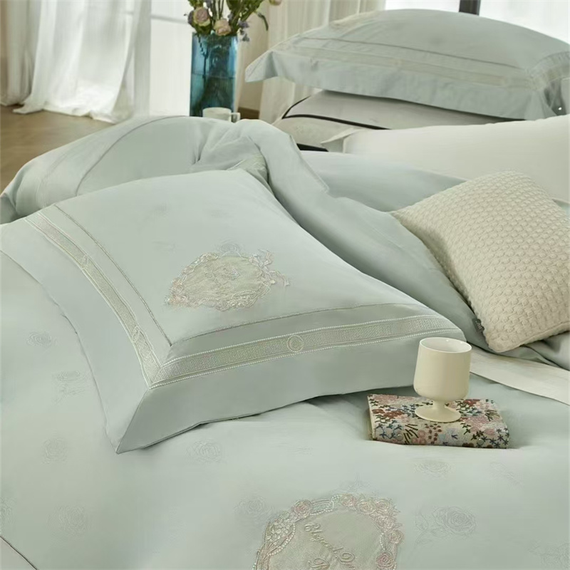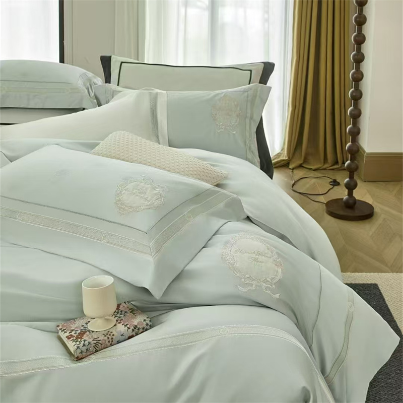 (总)玖玖爱家纺 2023新款120支贡缎长绒棉刺绣梦柔系列四件套,梦柔-香槟金,梦柔-香橙桔,梦柔-高级灰,梦柔-水蓝,梦柔-芙蓉玉