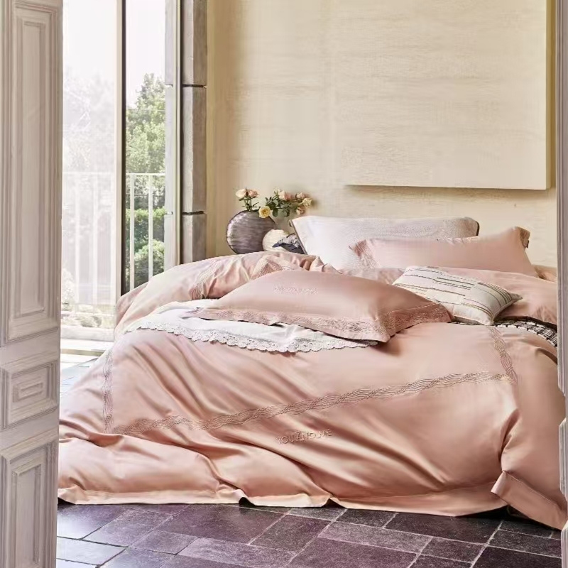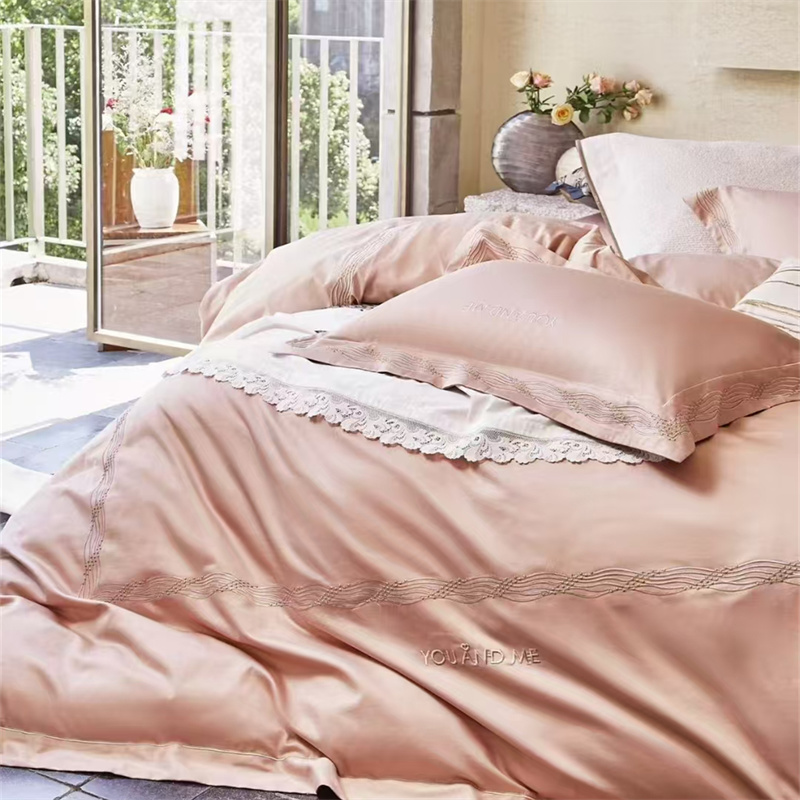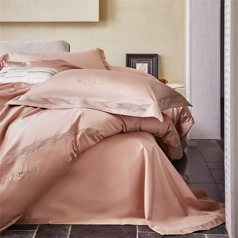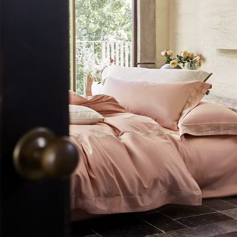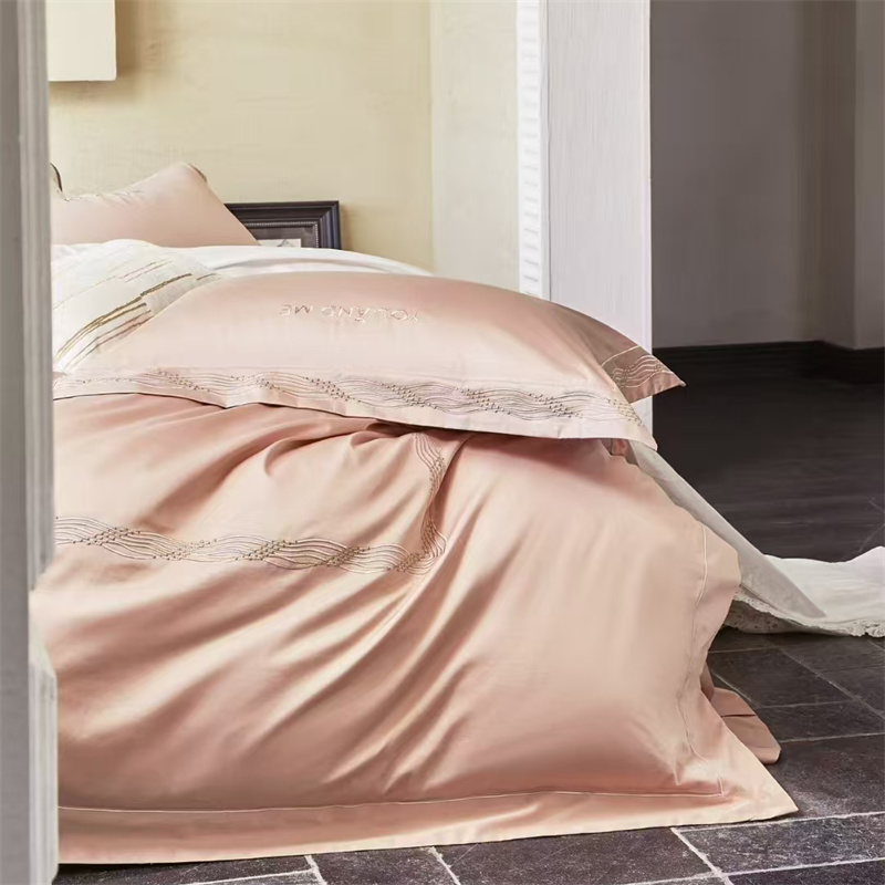 (总)玖玖爱家纺 2023新款120支贡缎长绒棉刺绣梦柔系列四件套,梦柔-香槟金,梦柔-香橙桔,梦柔-高级灰,梦柔-水蓝,梦柔-芙蓉玉