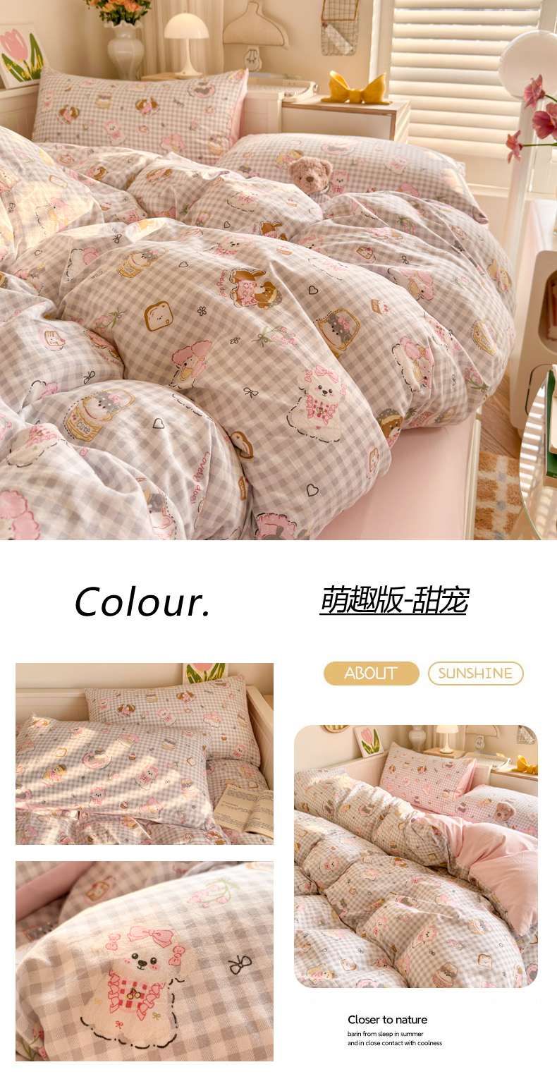 当前位置: 91家纺网 > 商品网购 > 床品套件 > 四件套 > 水洗棉四件套 > 慕澄家纺 2025新款小清新水洗棉印花四件套 萌趣版-甜宠