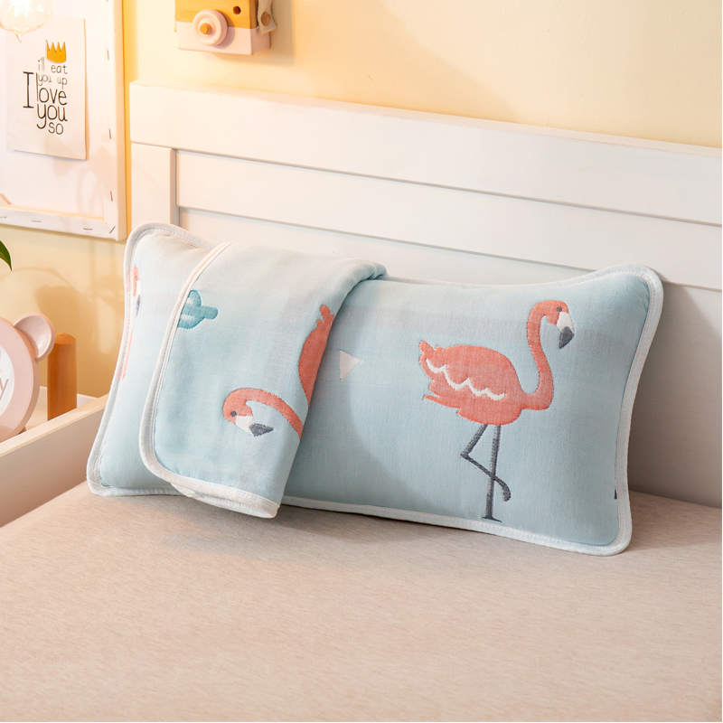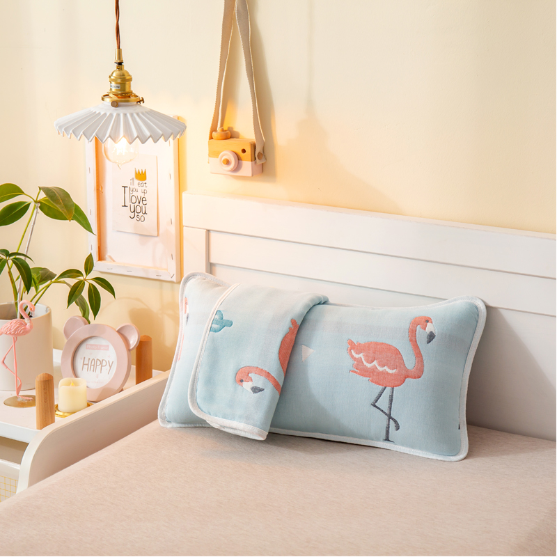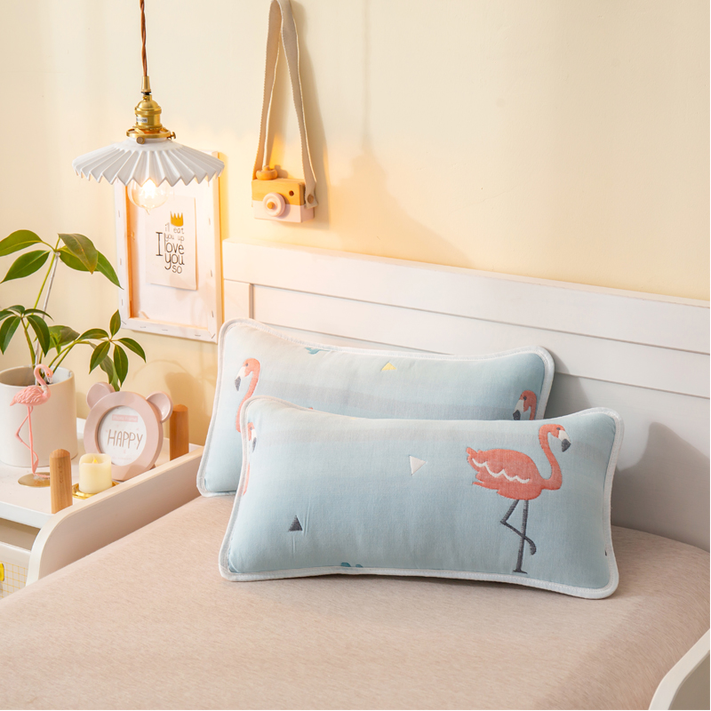 朴尔家纺-毛巾被 2025新款全棉卡通六层纱布儿童枕套 辛福鸟蓝