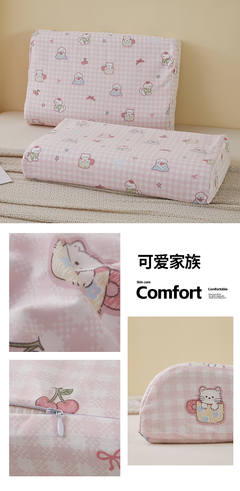 商品名称:翎盈家纺 2025新款纯棉小清新乳胶枕专用枕套 可爱家族