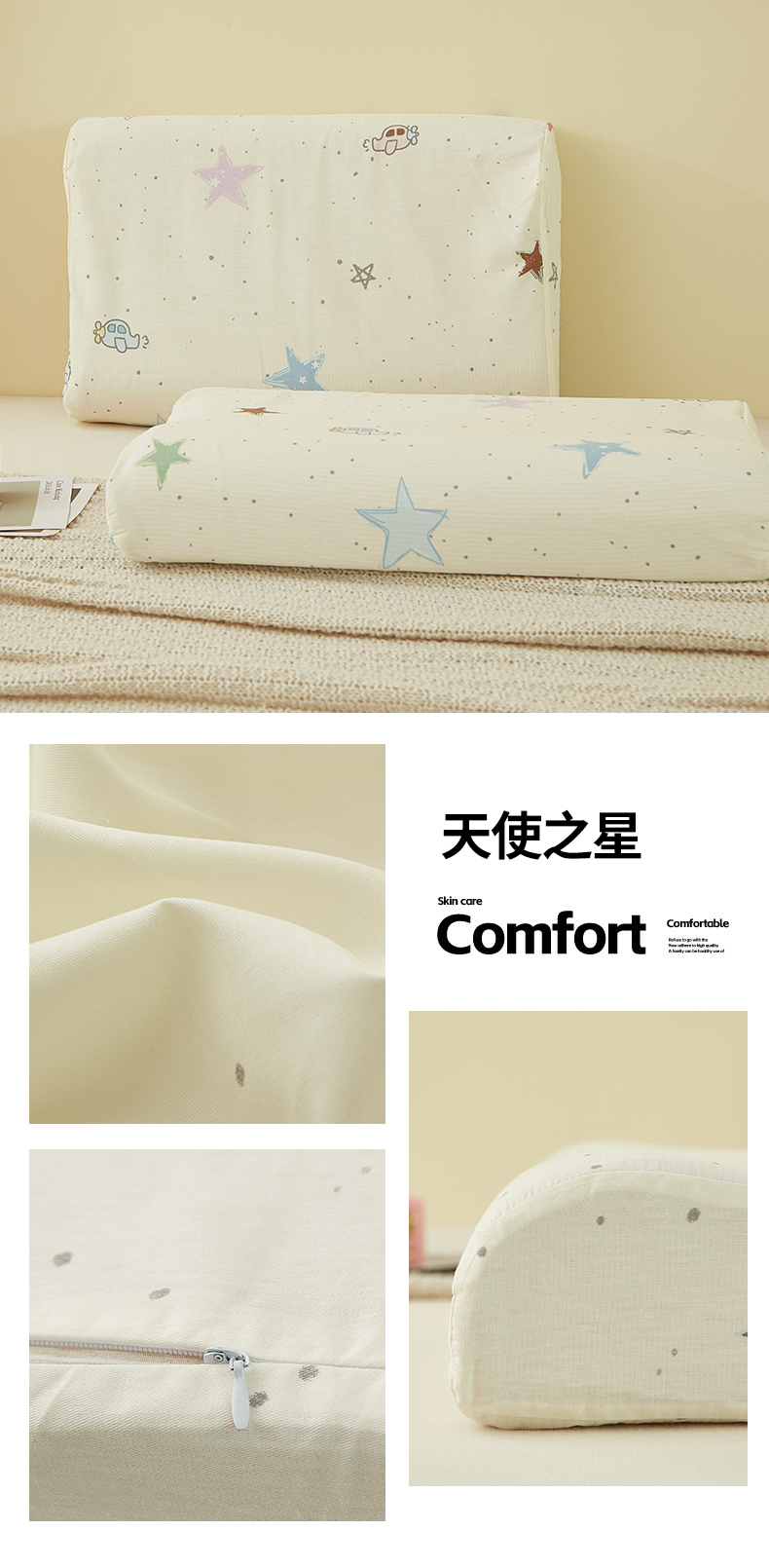 商品名称:翎盈家纺 2025新款纯棉小清新乳胶枕专用枕套 天使之星