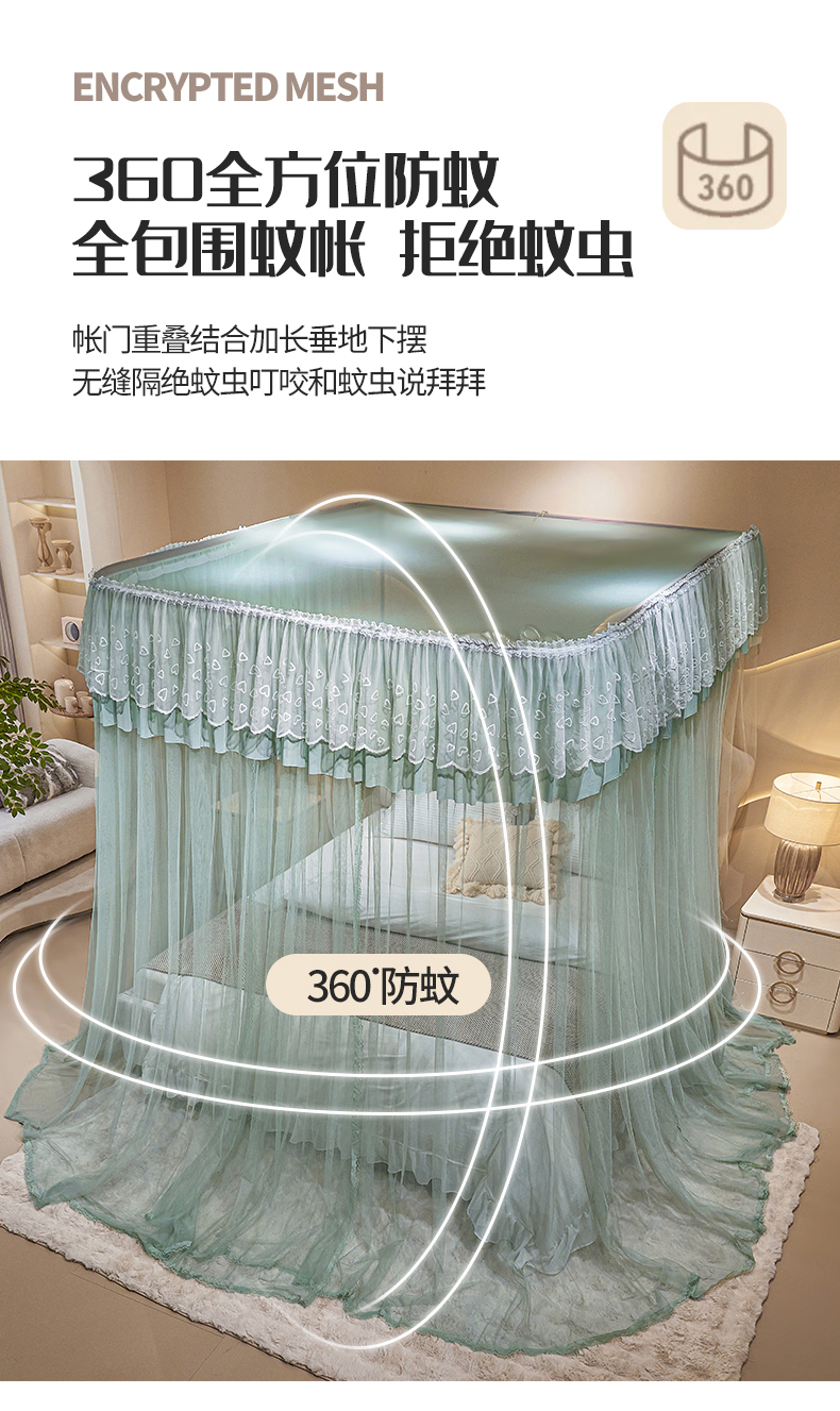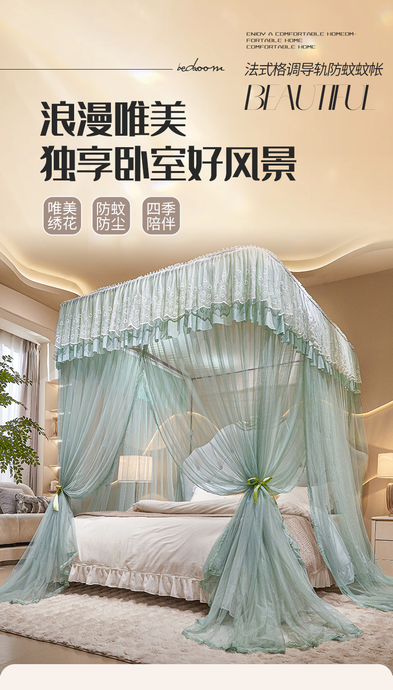 当前位置: 91家纺网 > 商品网购 > 床上用品 > 蚊帐 > 导轨蚊帐 > 夏彩 2025新款绣花加柔加密铝合金接口高度可调节轨道蚊帐88620 88620薄荷绿