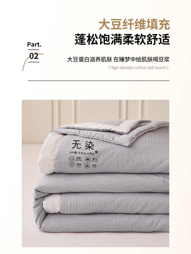 商品名称:仁凯家纺 2025新款A类无染原棉大豆被夏被夏凉被空调被子 清新灰-绿边