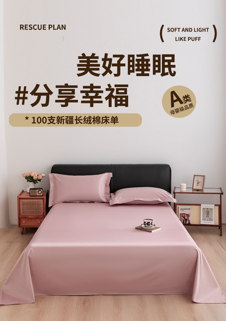 宝时兰 2025新款100支新疆长绒棉单品床单全棉枕套纯棉三件套 茱萸粉