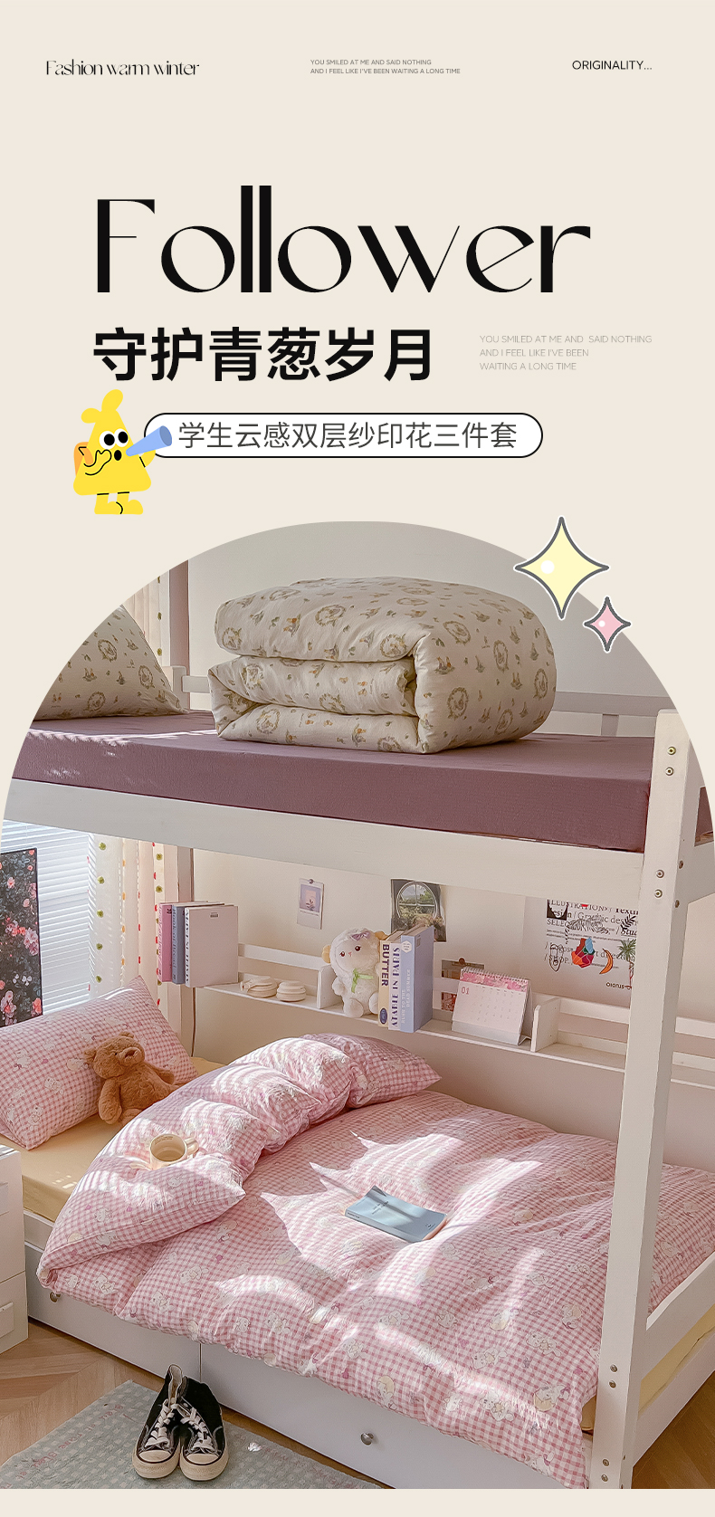 当前位置: 91家纺网 > 商品网购 > 床品套件 > 三件套 > 韩巢家纺 2025新款云感双层纱超柔裸睡级学生宿舍上下铺床单被套三件套-(提供卖家秀) 猫猫晚宴