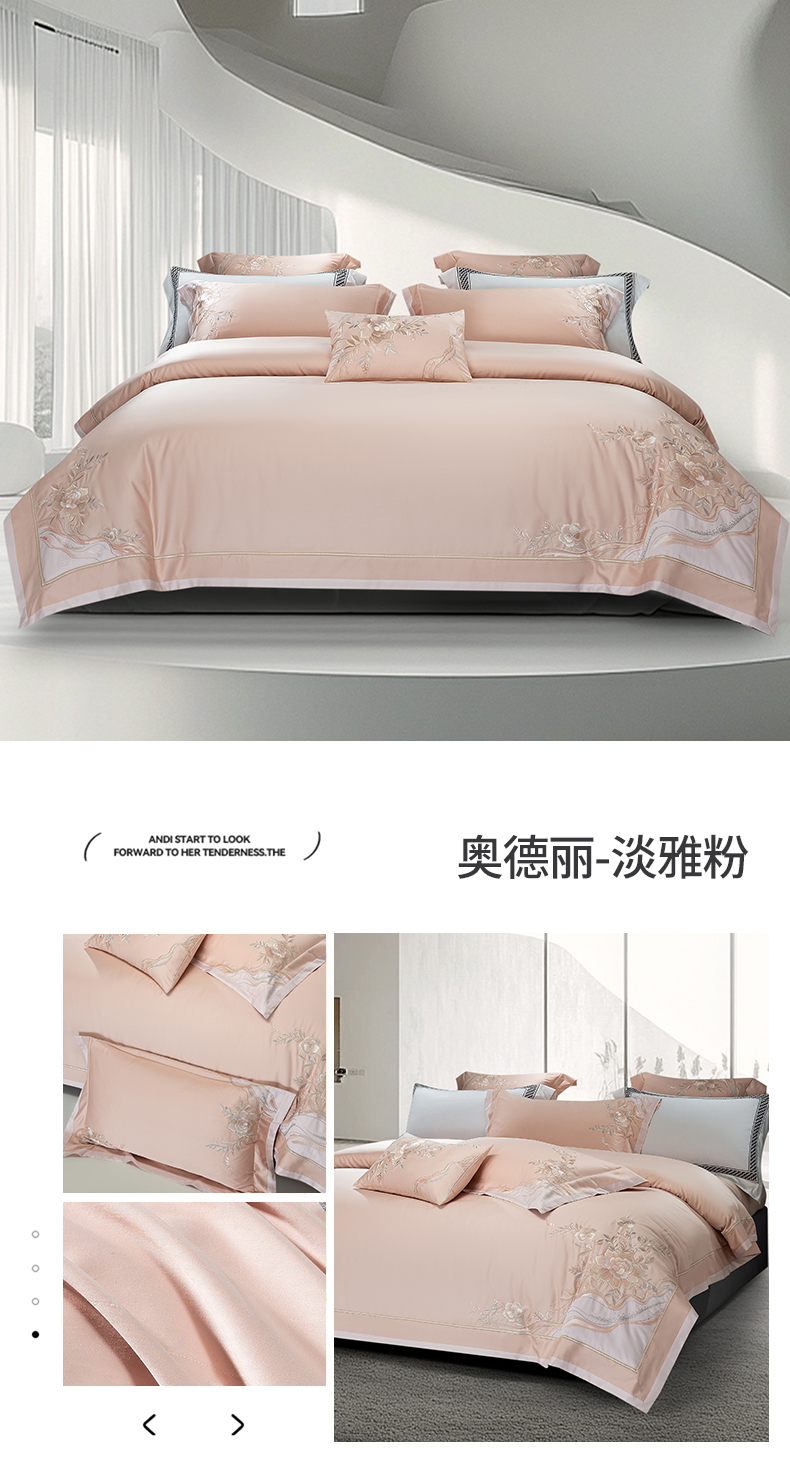高大尚婚庆馆 2025春夏新款 长绒棉高端绣花四件套-奥德丽 奥德丽-淡雅粉