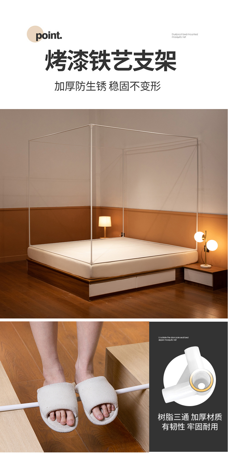 (总)飞轮海蚊帐 2023新款三开门落地遮光蚊帐-L-93,高级灰,芥末绿,奶油黄,香槟