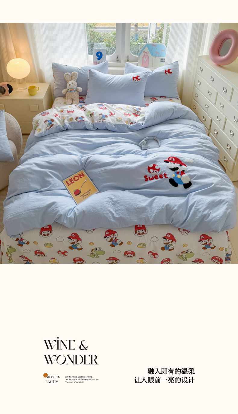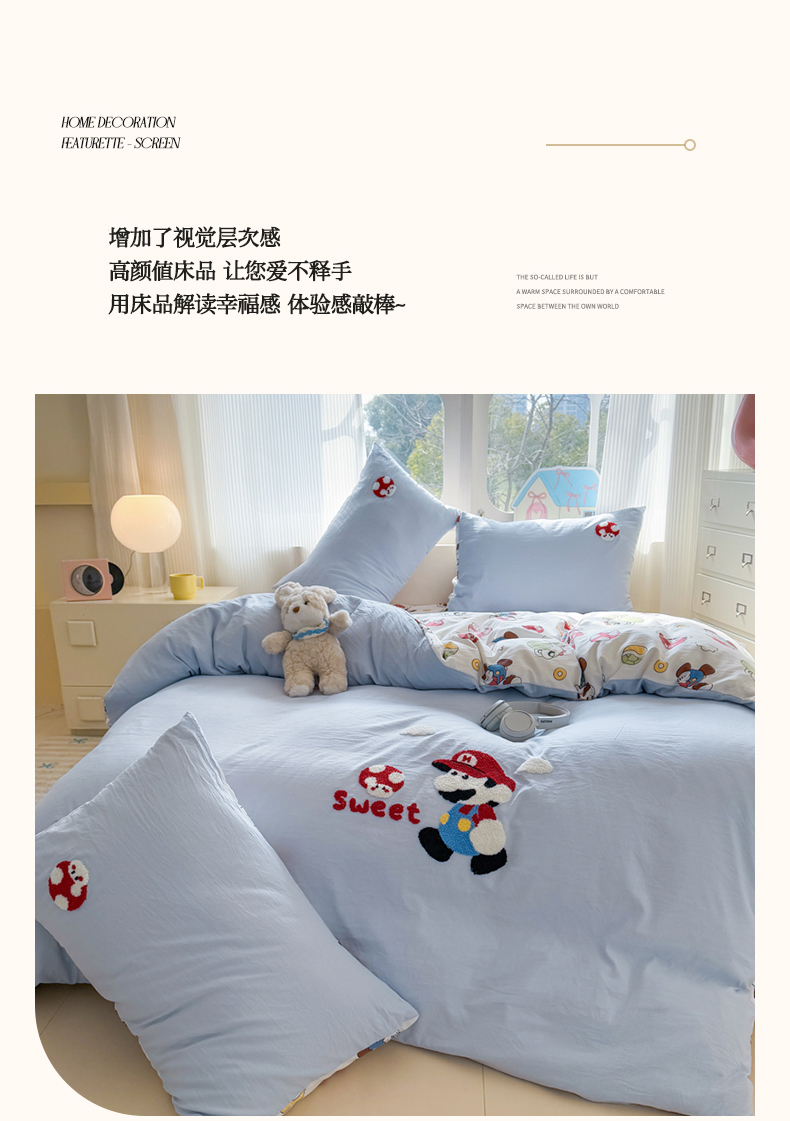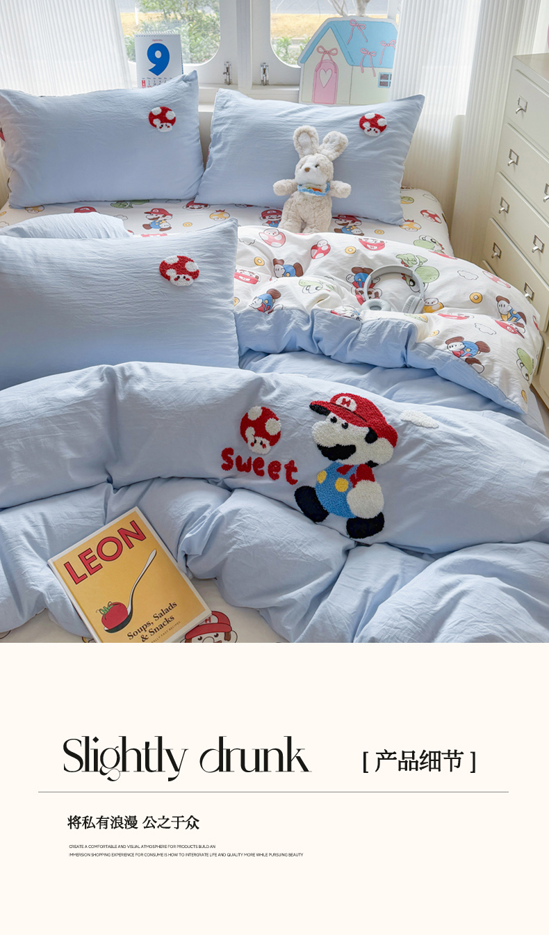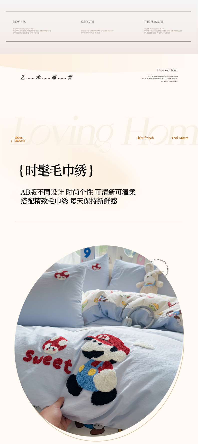 当前位置: 91家纺网 > 商品网购 > 床品套件 > 四件套 > 化纤活性四件套 > 晚爱 2025新款A类ins风毛巾绣三丽鸥卡通水洗棉超柔亲肤云朵棉四件套 马里奥
