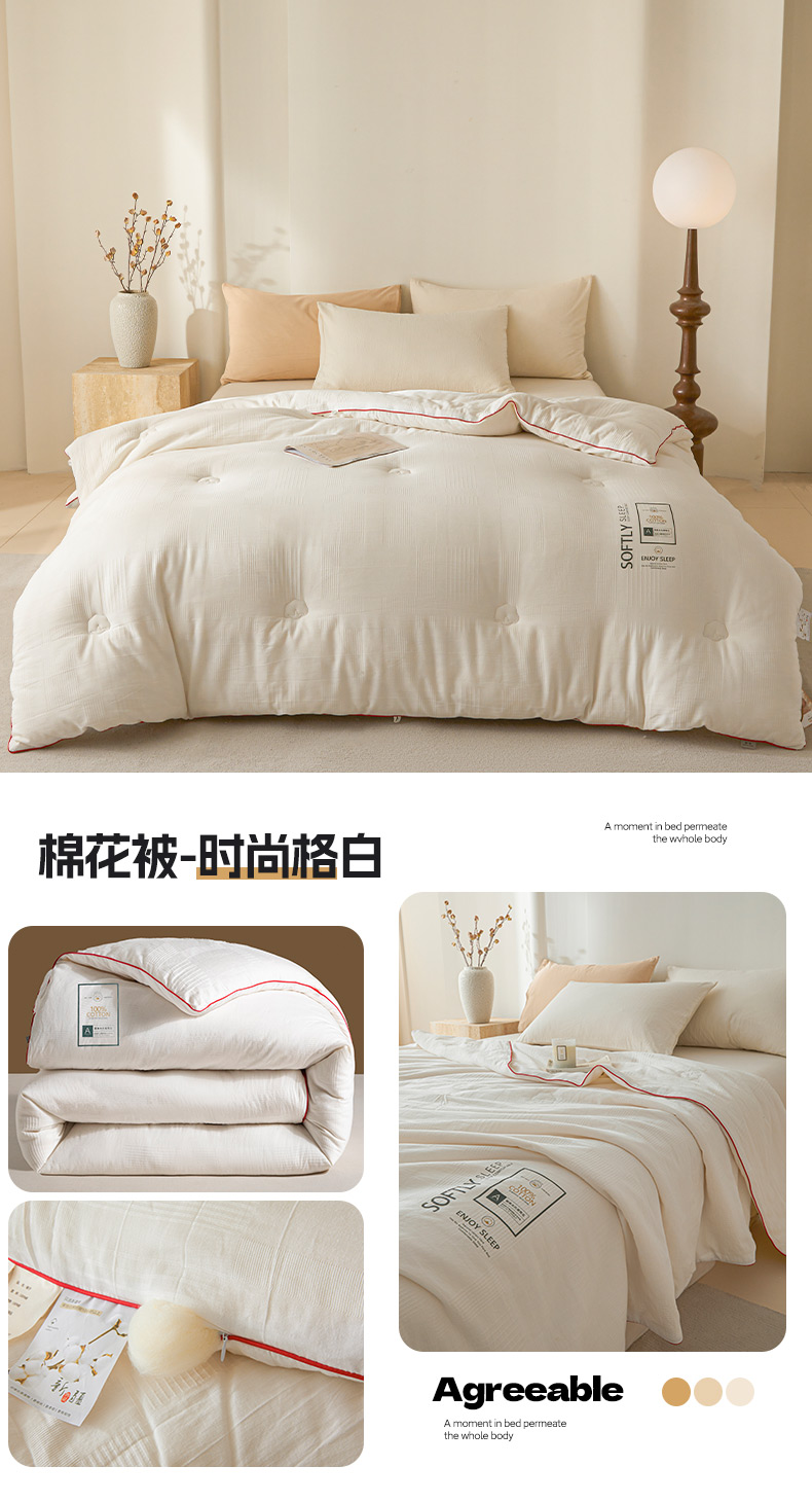 • 91家纺网 家纺一手货源 找家纺 莱登卡奴 25新款全棉A类水洗棉提花100%棉花被夏被 棉花被-时尚格白