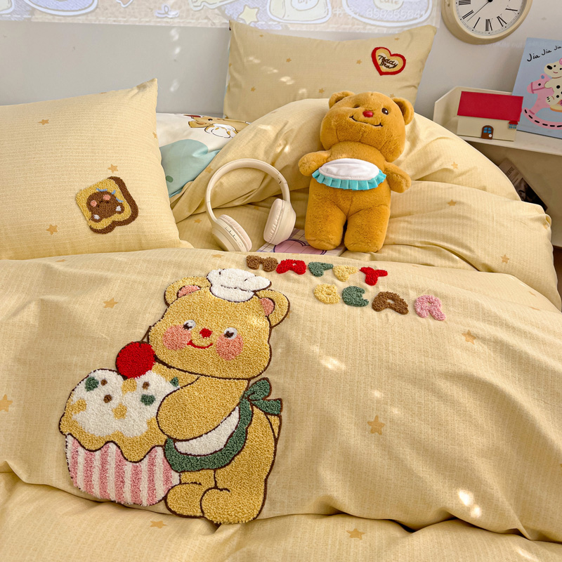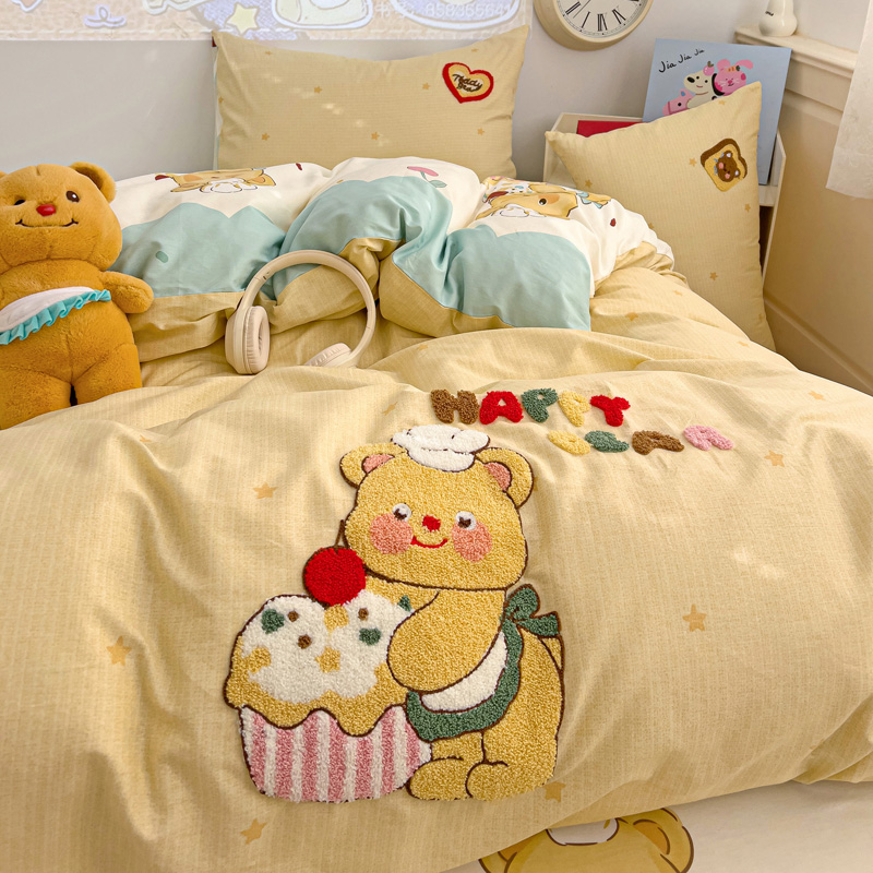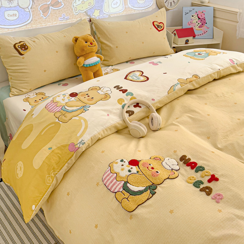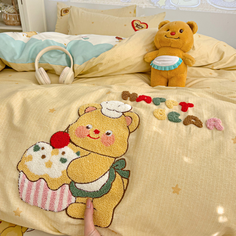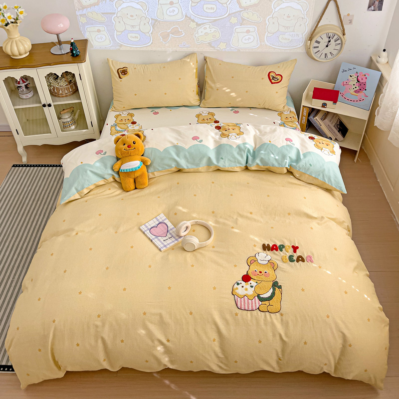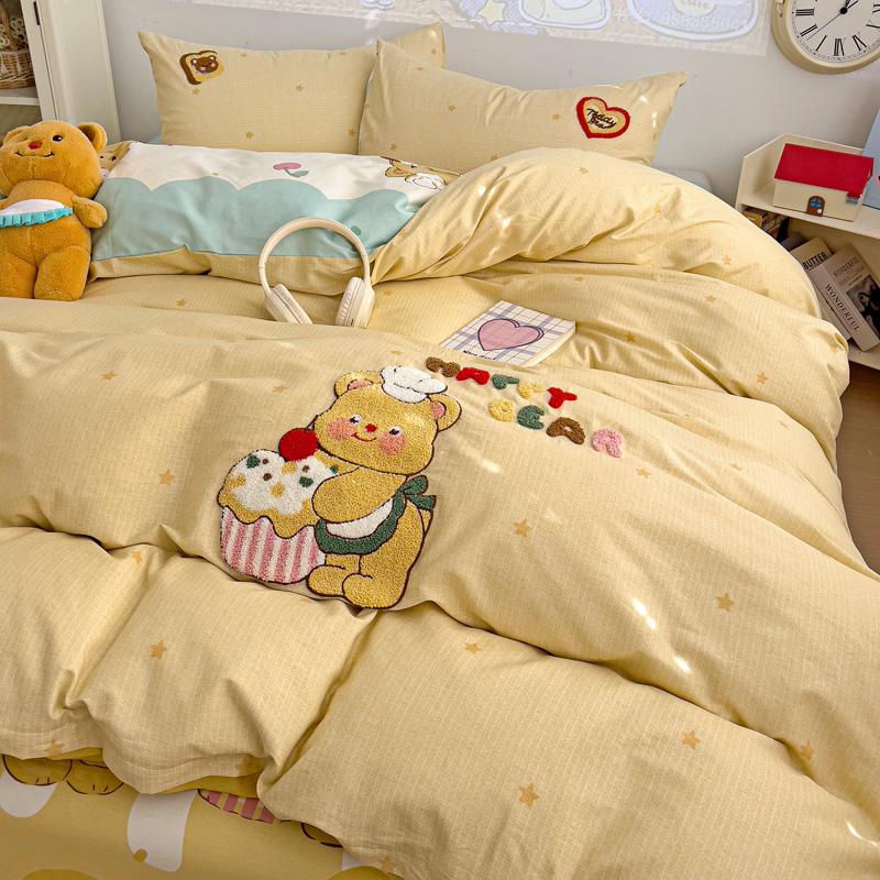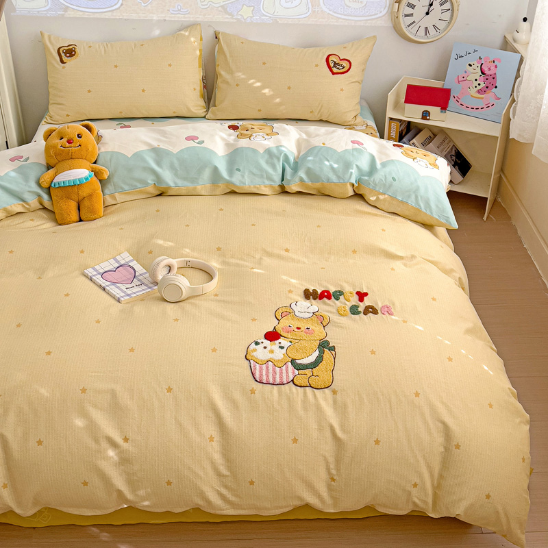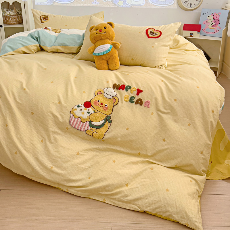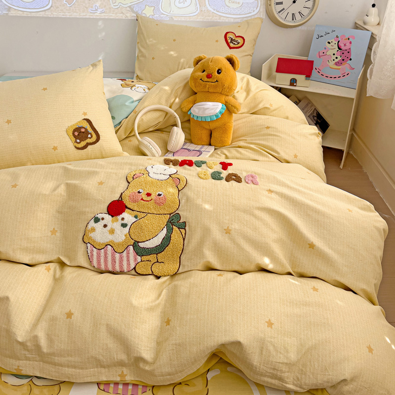 商品名称:云锦家居 2025新款13370纯棉毛巾绣呆萌系列四件套 奶油小熊