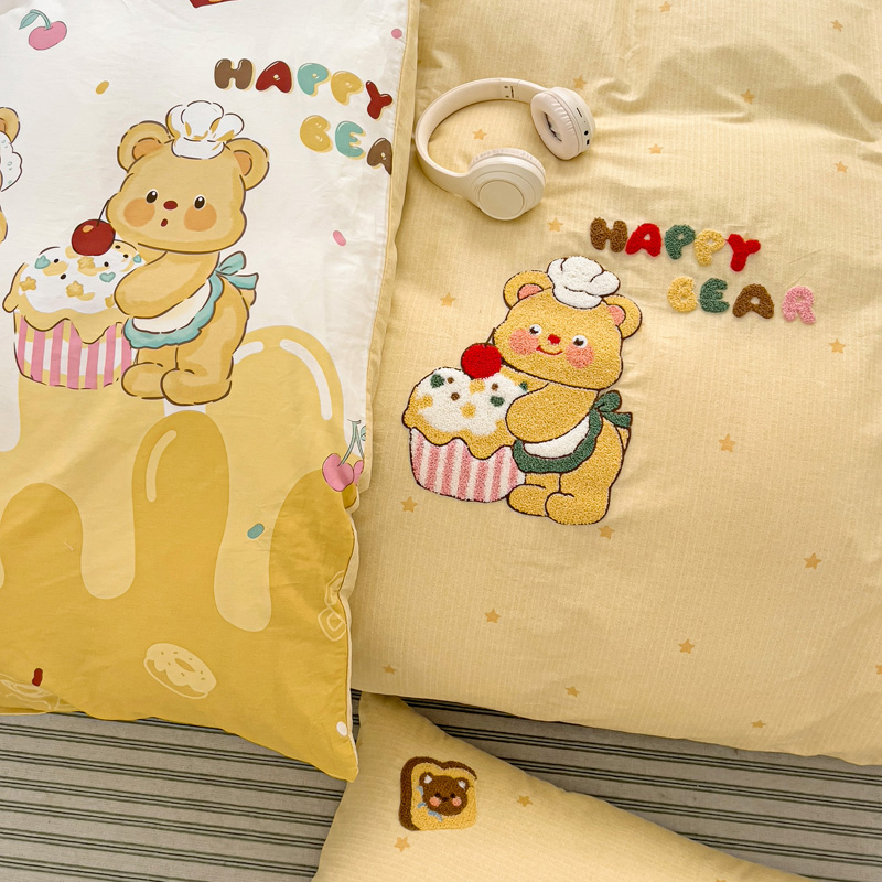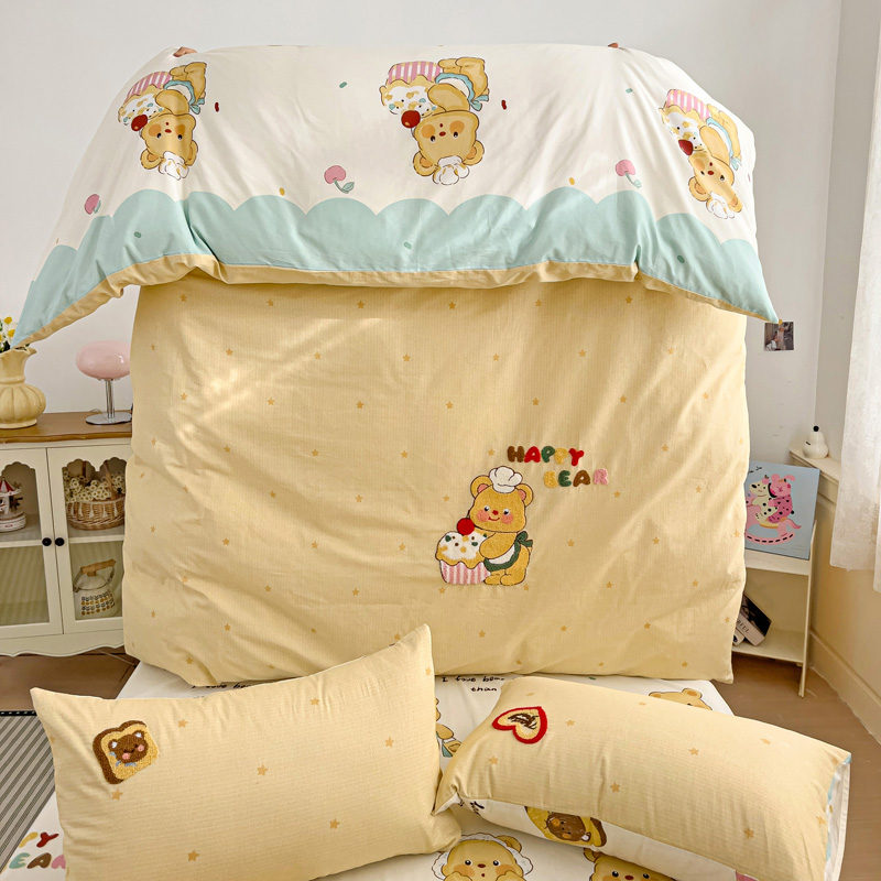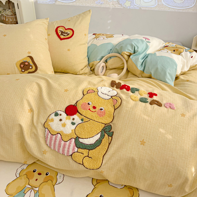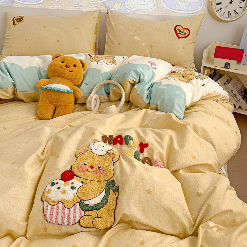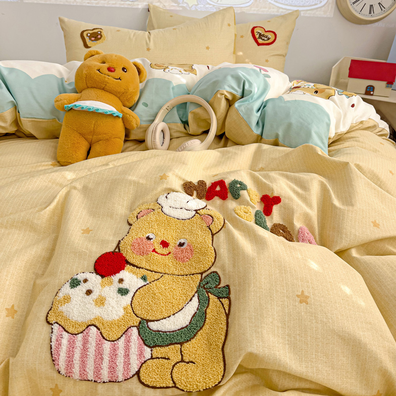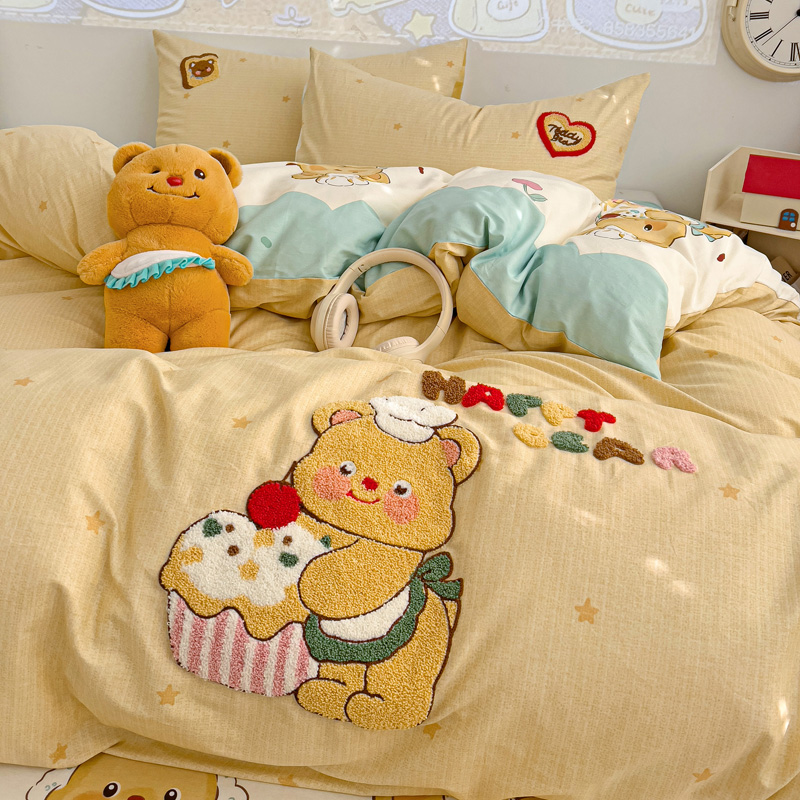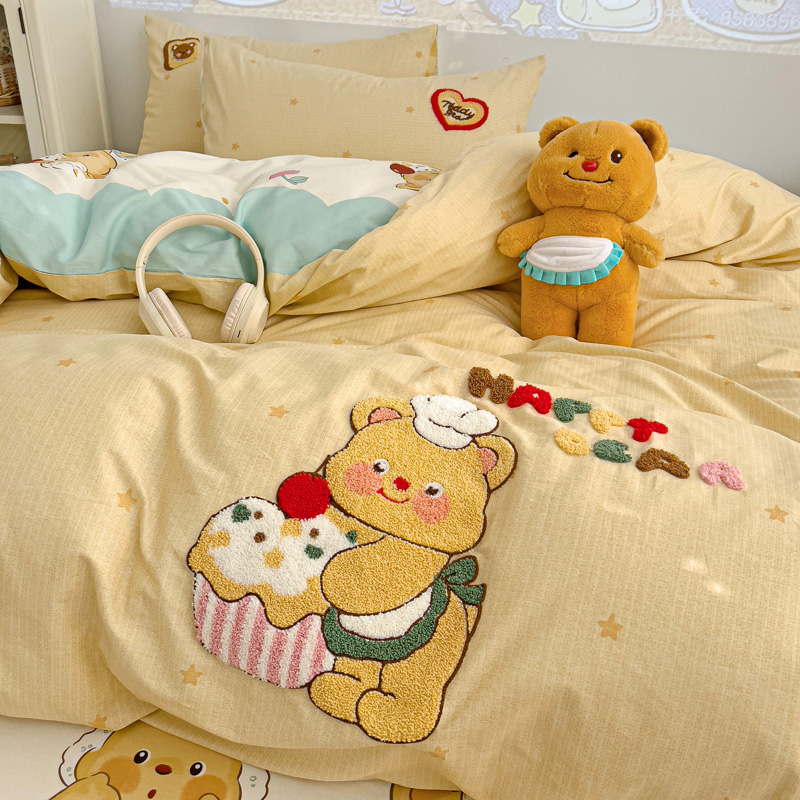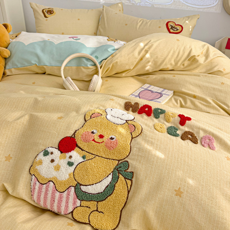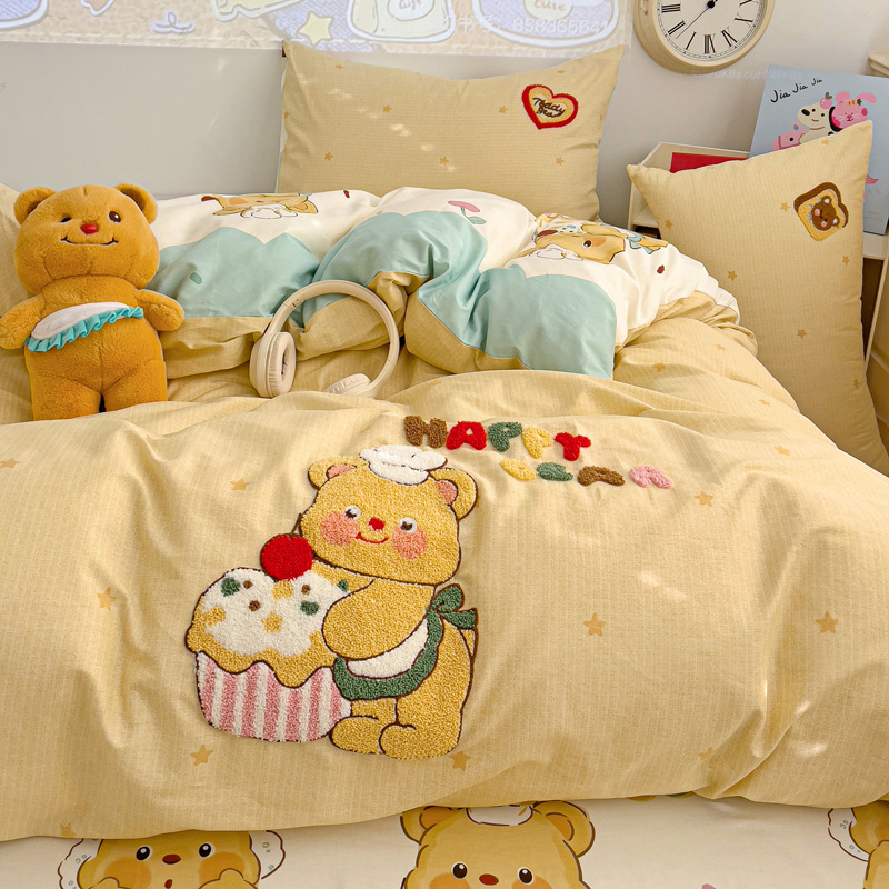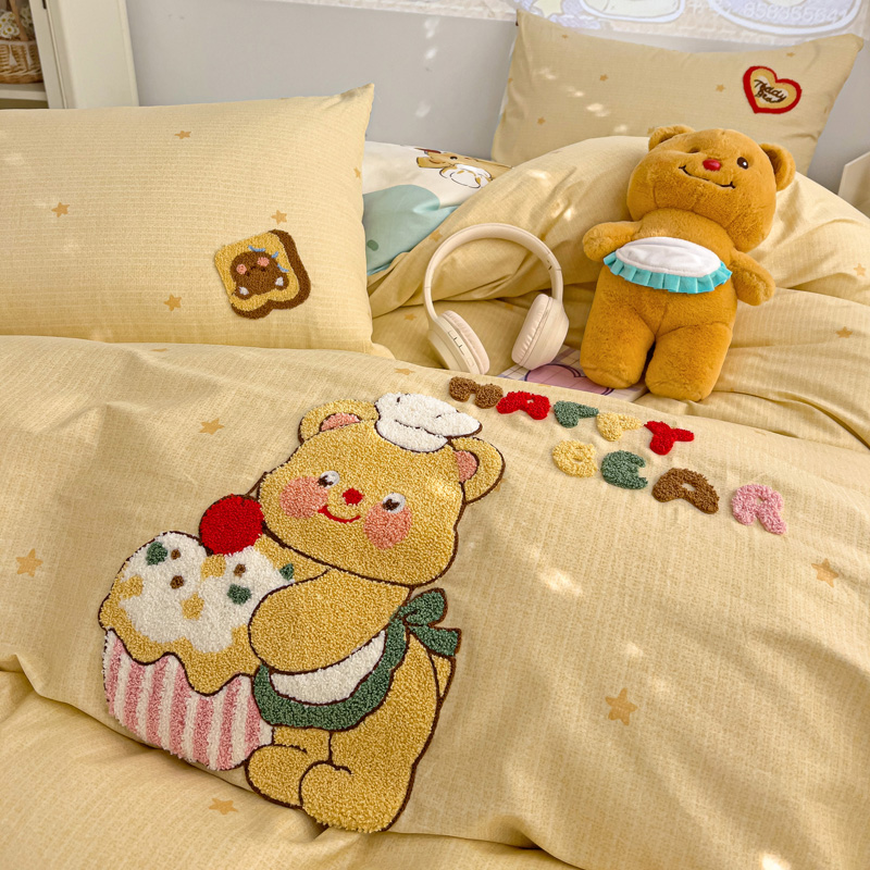 商品名称:云锦家居 2025新款13370纯棉毛巾绣呆萌系列四件套 奶油小熊