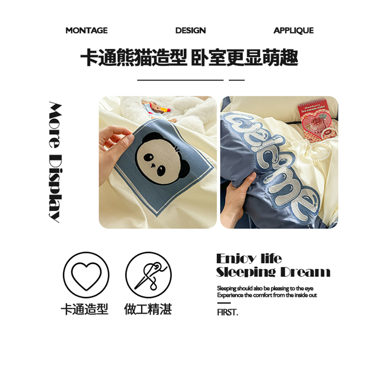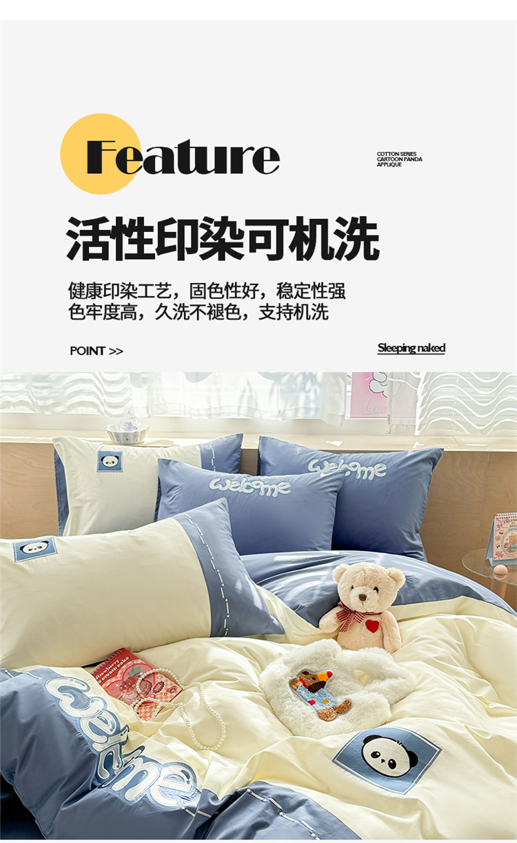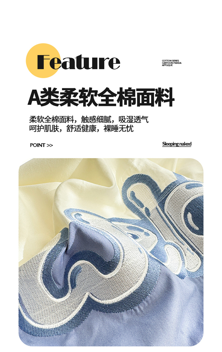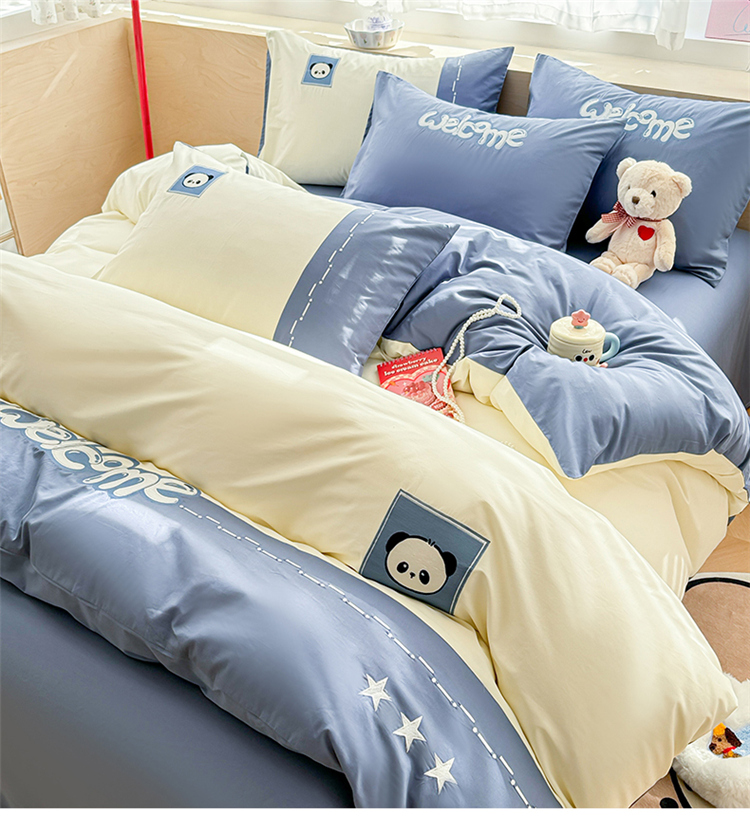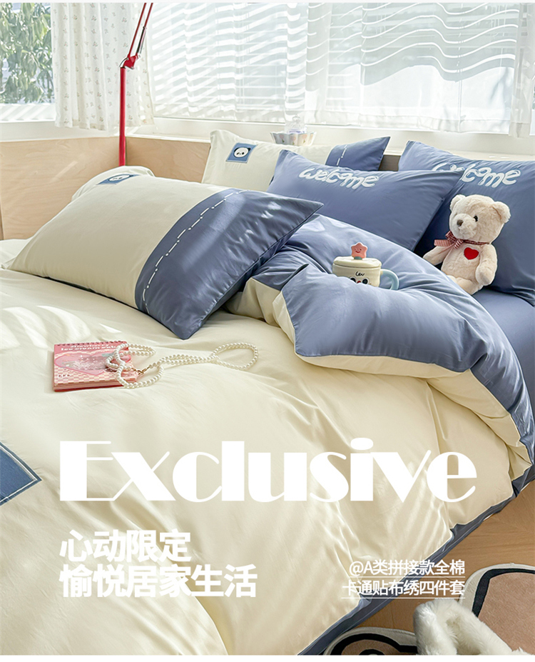 商品名称:懒猫家纺 2025新款【懒宝威尔】全棉拼接刺绣四件套 懒宝威尔-蓝