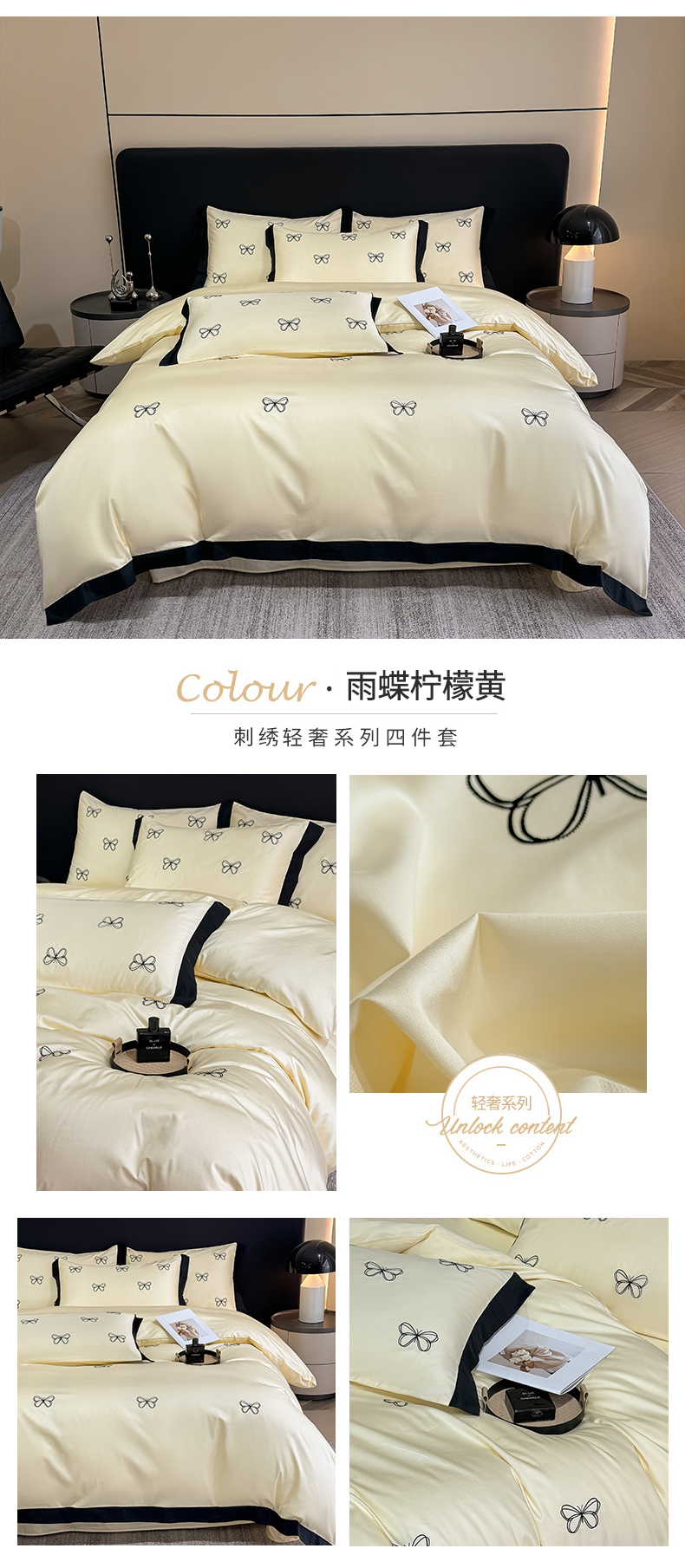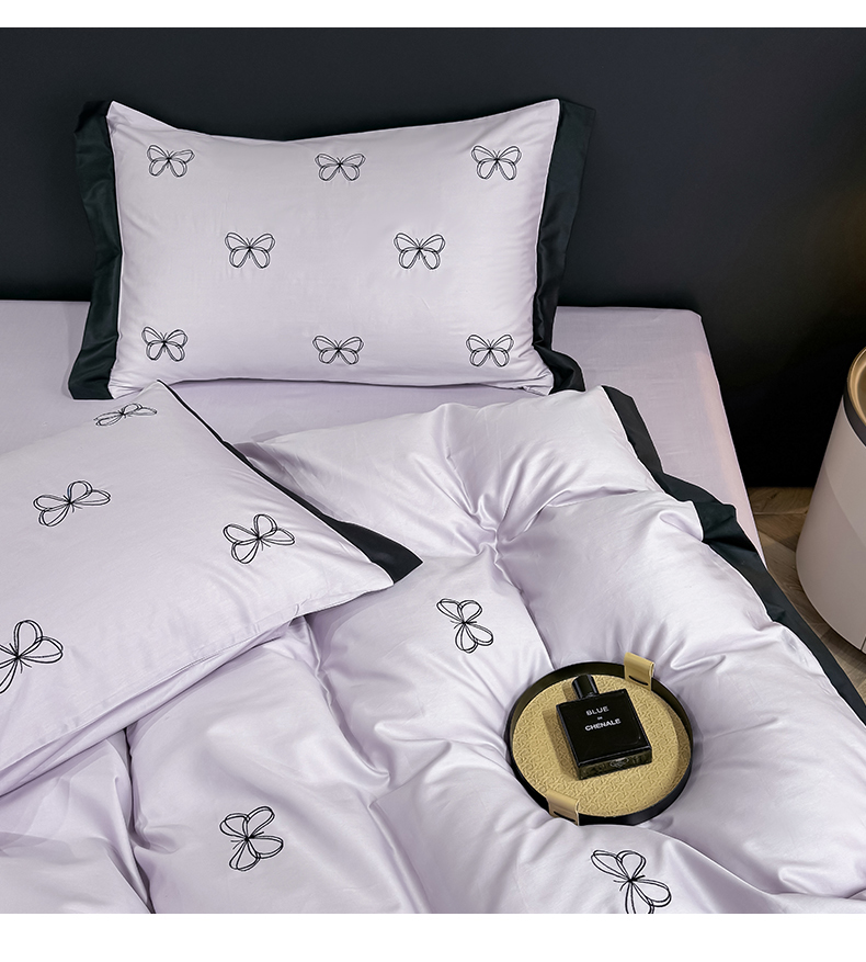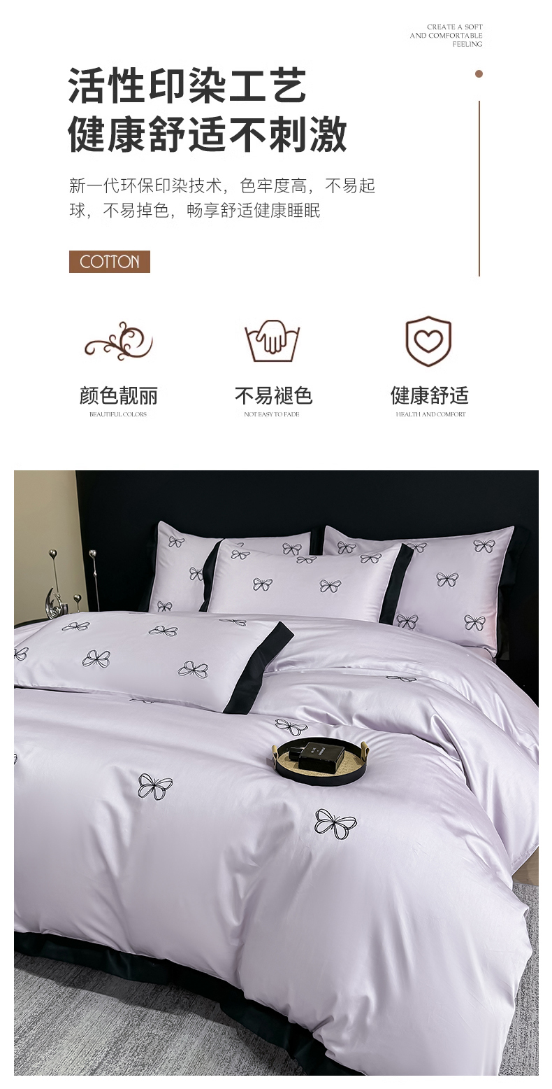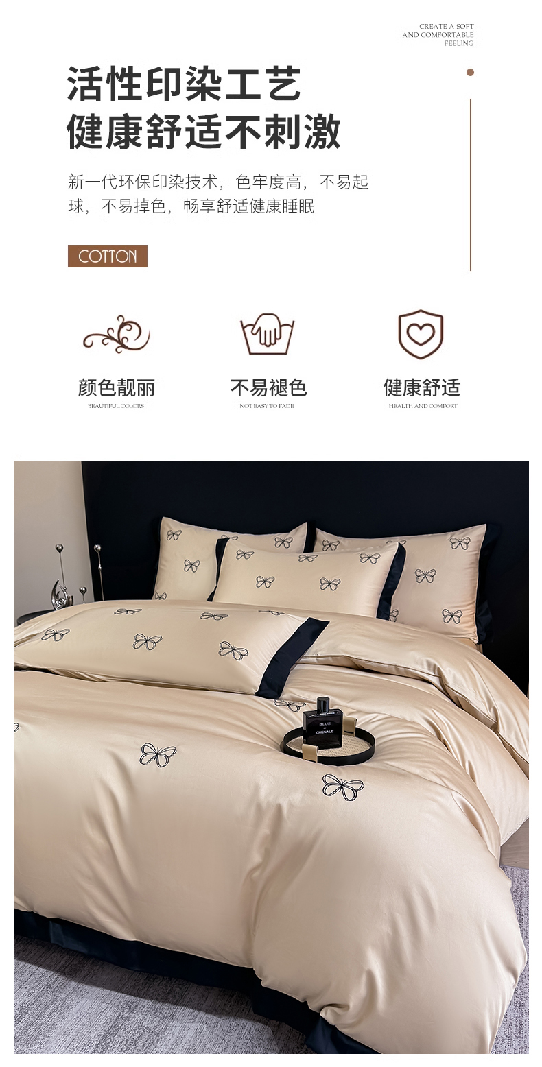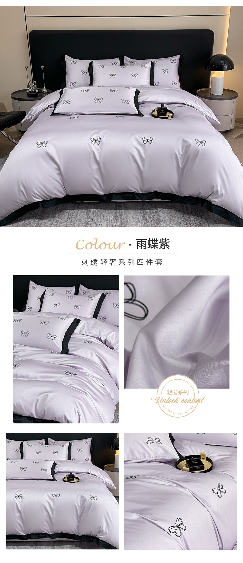 当前位置: 91家纺网 > 商品网购 > 床品套件 > 四件套 > 长绒棉四件套 > (总)KA家纺2025春夏A类纯棉全棉贡缎绣花长绒棉四件套 雨蝶系列
