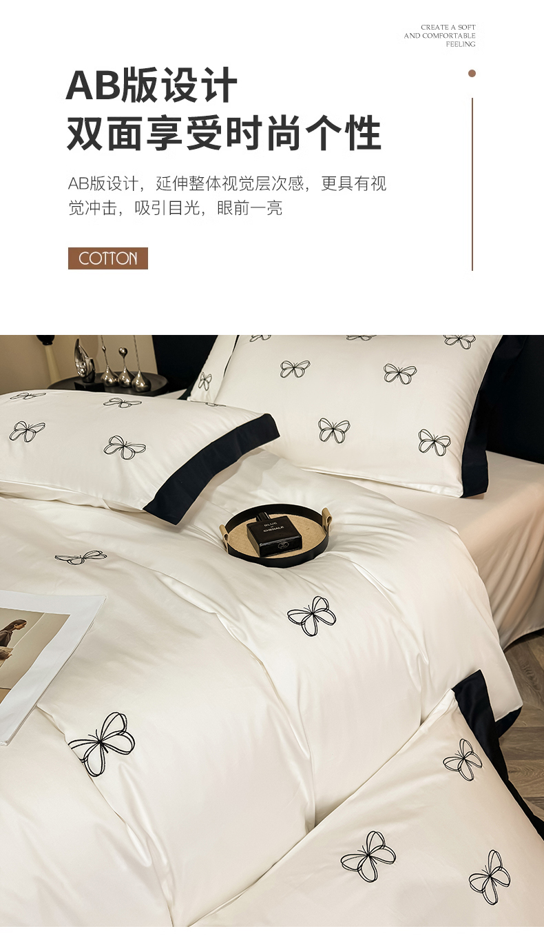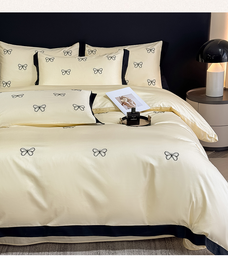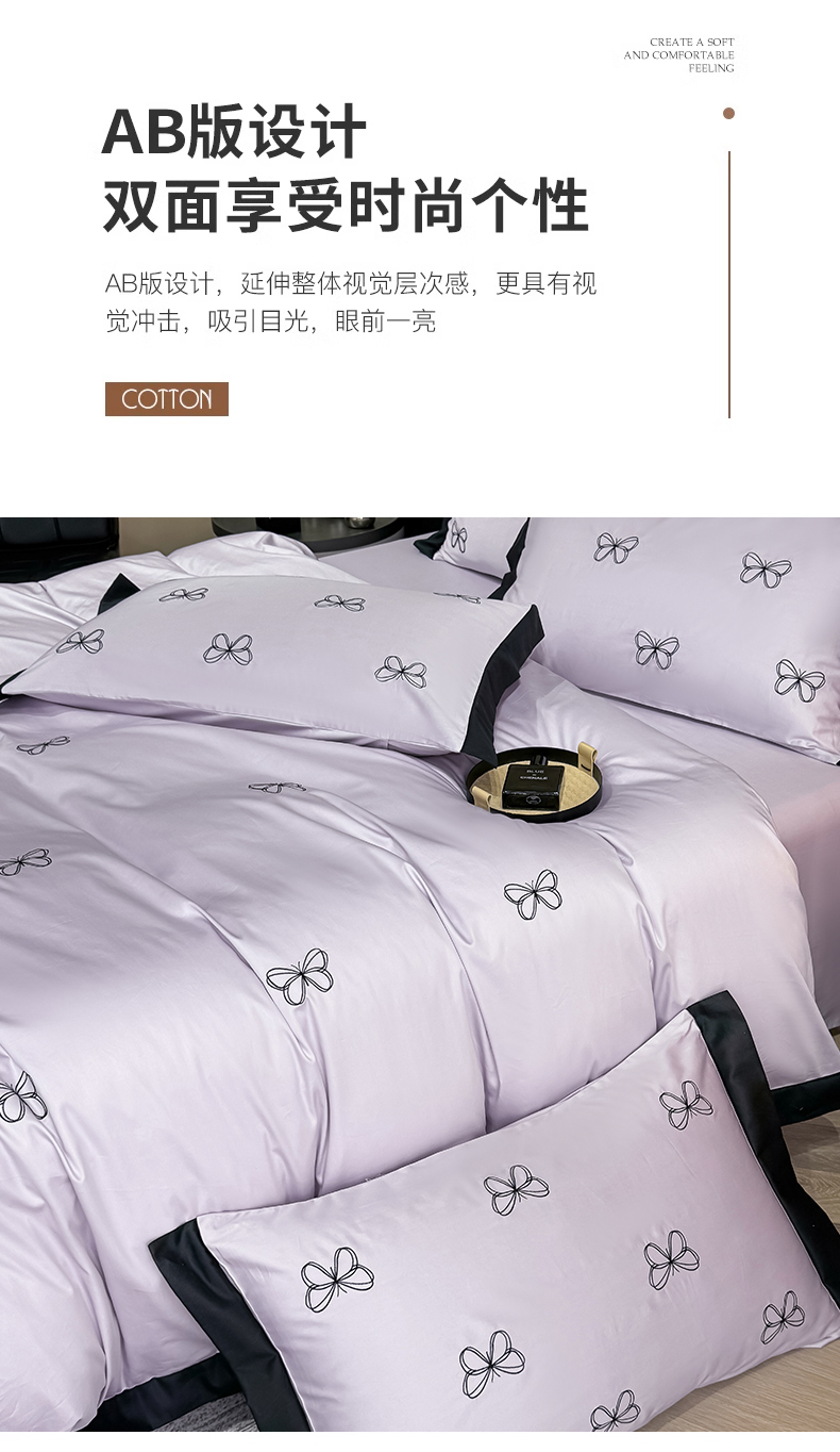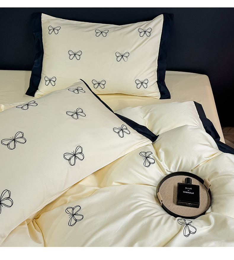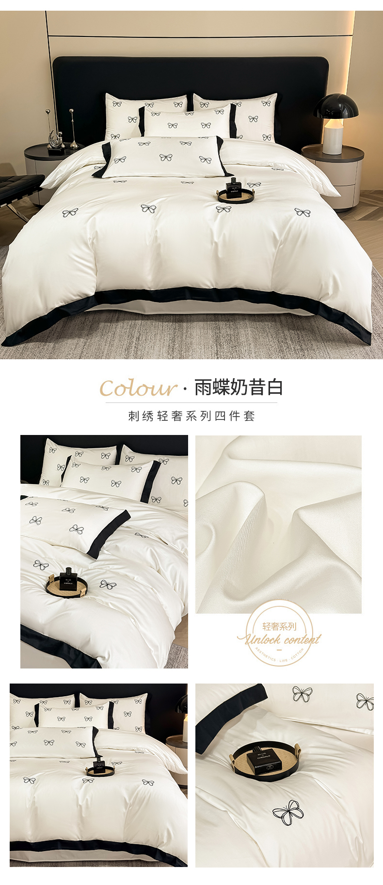 当前位置: 91家纺网 > 商品网购 > 床品套件 > 四件套 > 长绒棉四件套 > (总)KA家纺2025春夏A类纯棉全棉贡缎绣花长绒棉四件套 雨蝶系列