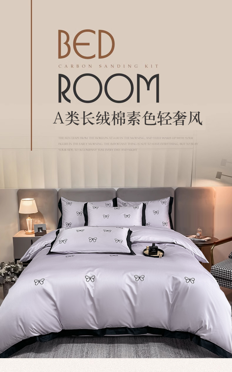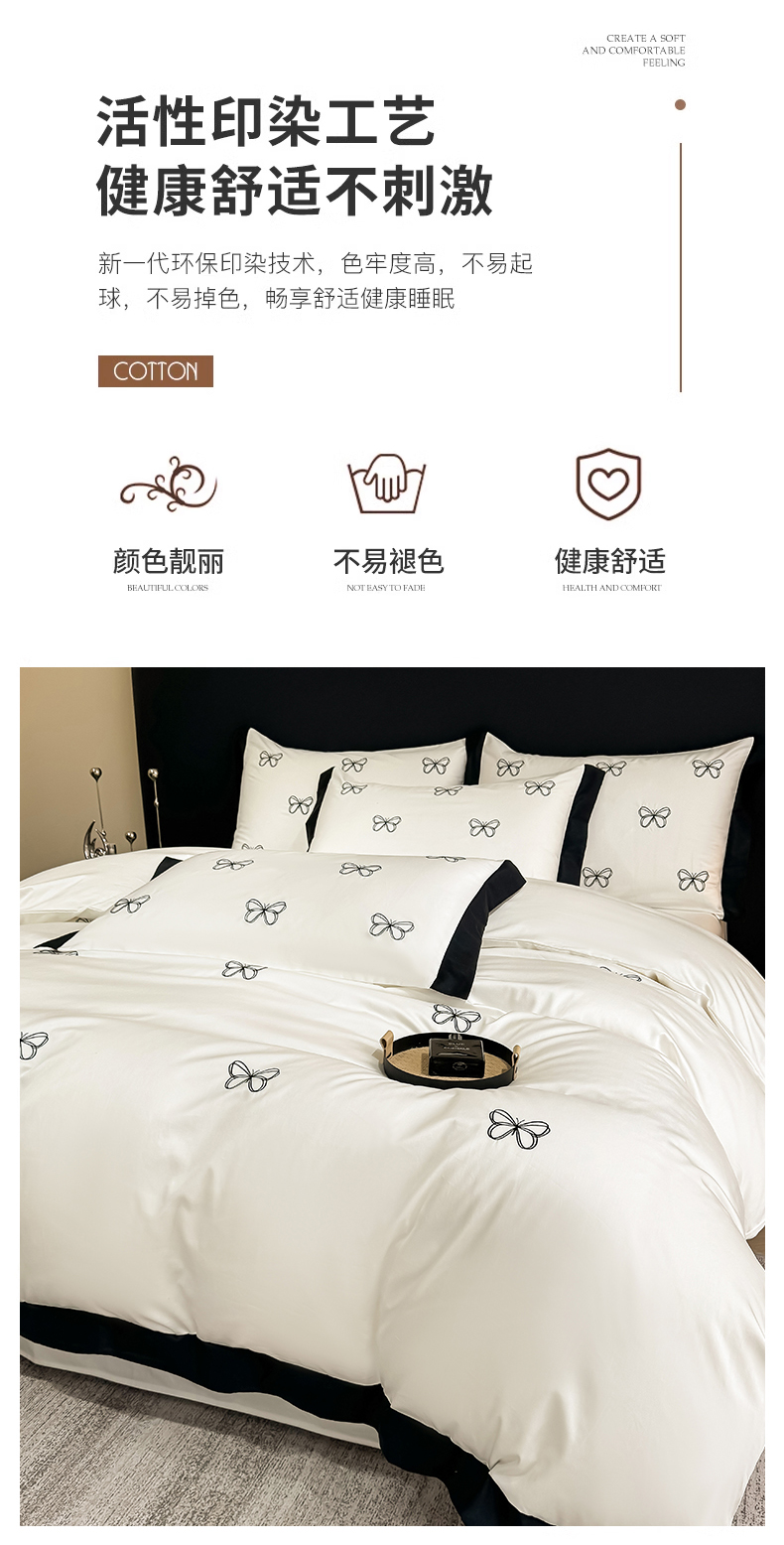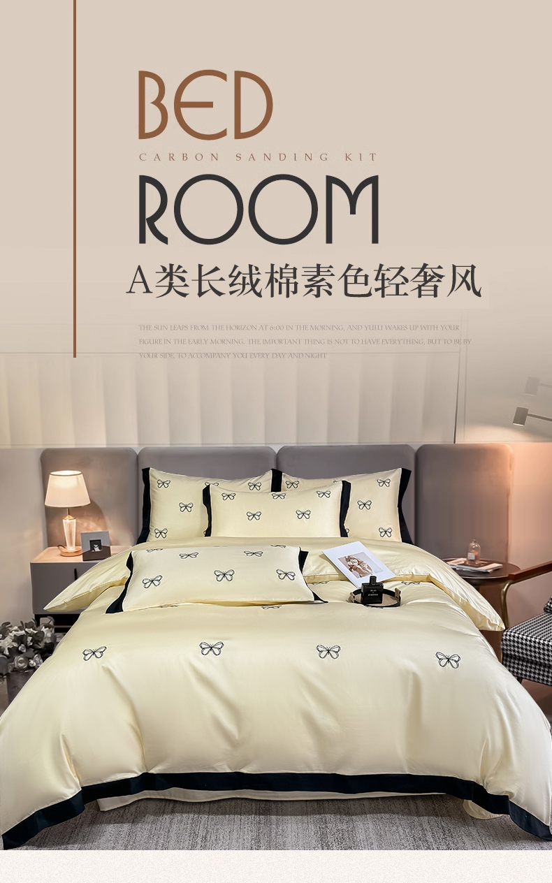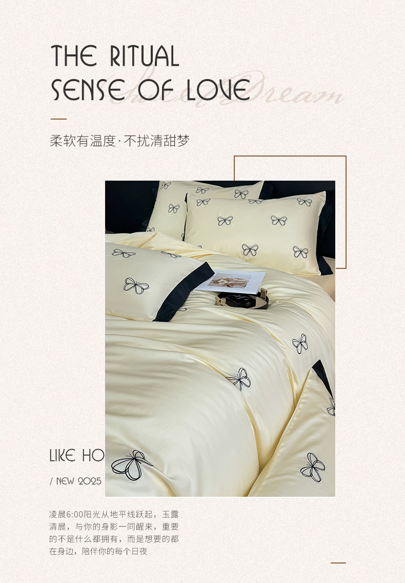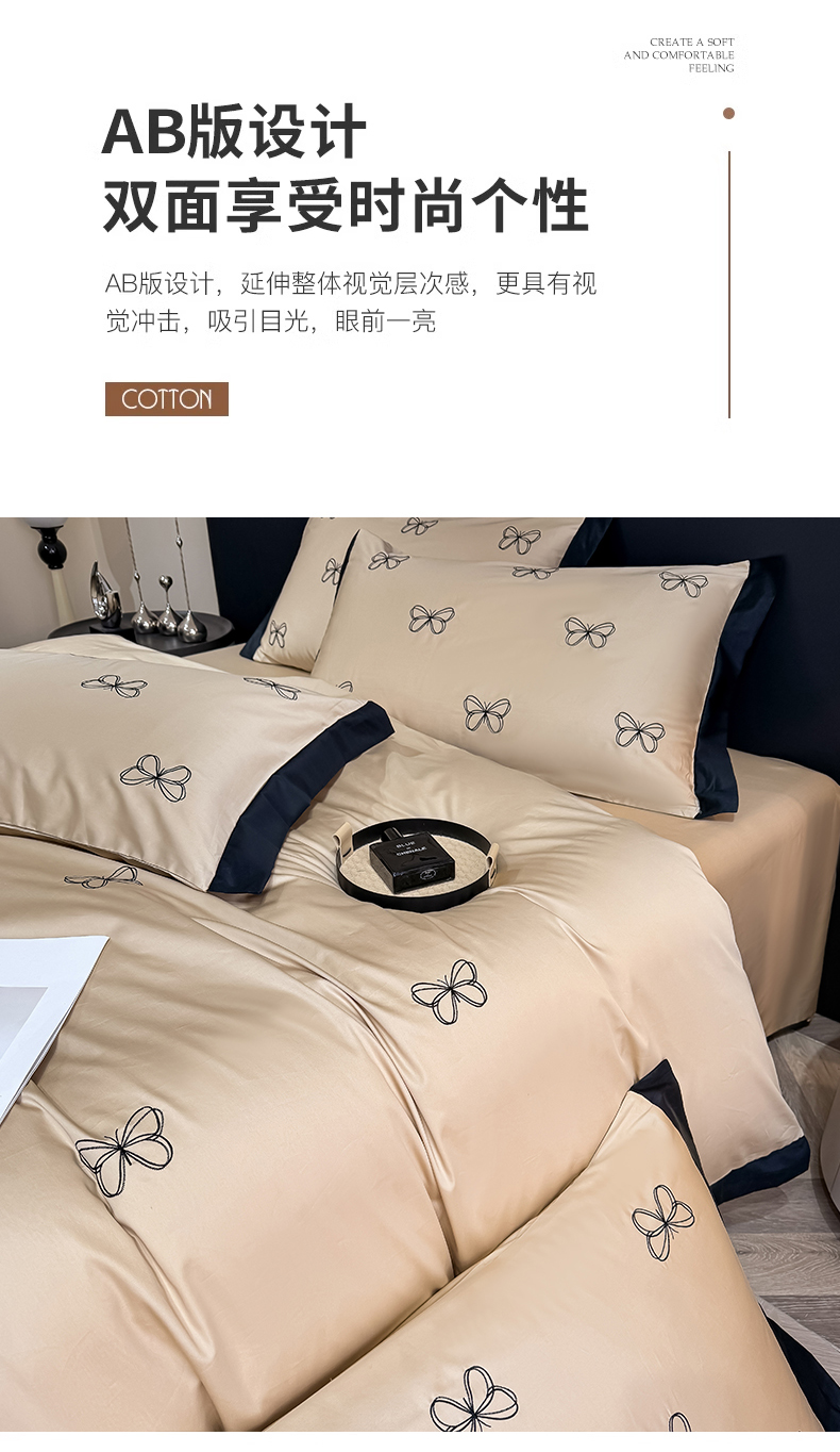 当前位置: 91家纺网 > 商品网购 > 床品套件 > 四件套 > 长绒棉四件套 > (总)KA家纺2025春夏A类纯棉全棉贡缎绣花长绒棉四件套 雨蝶系列