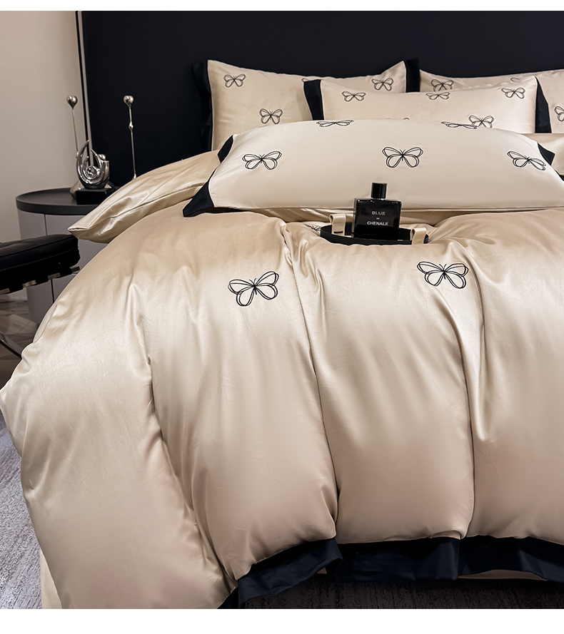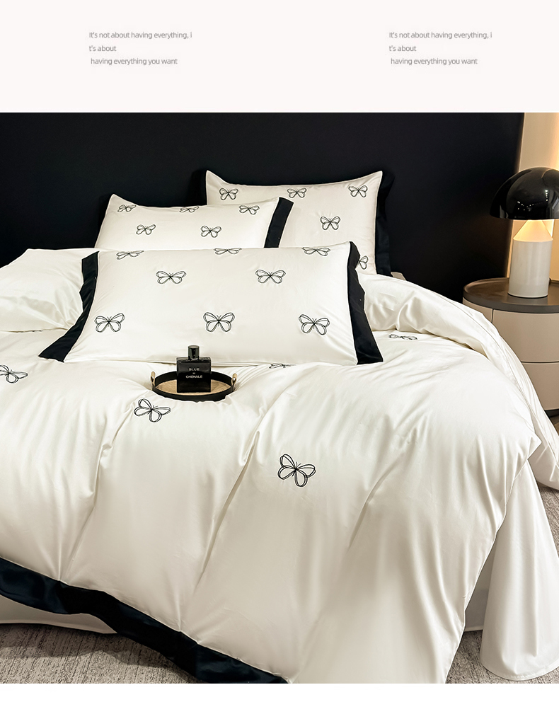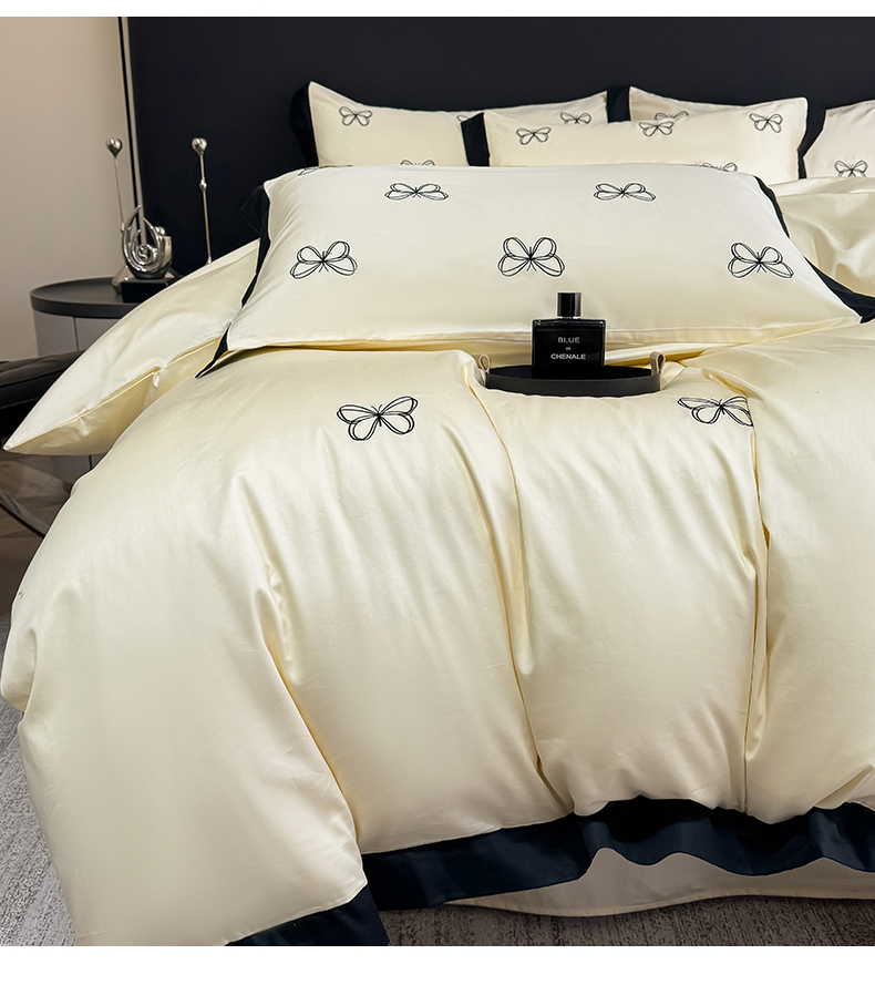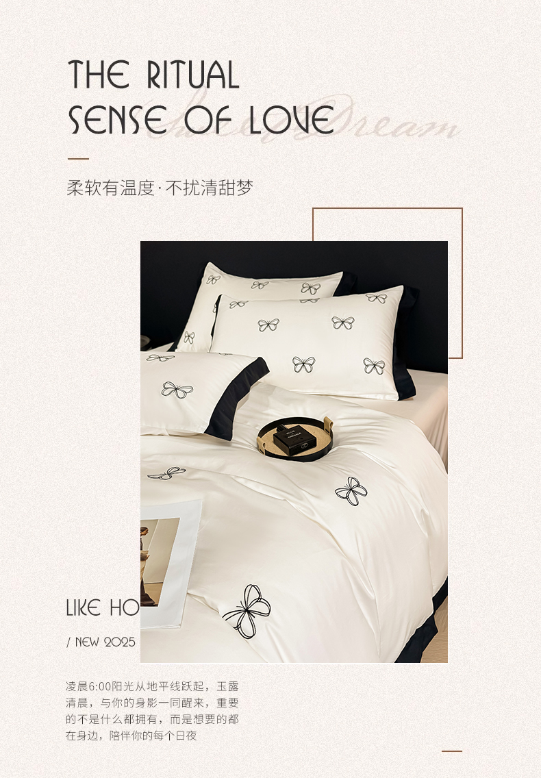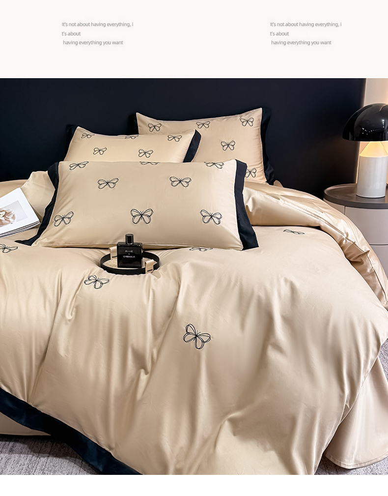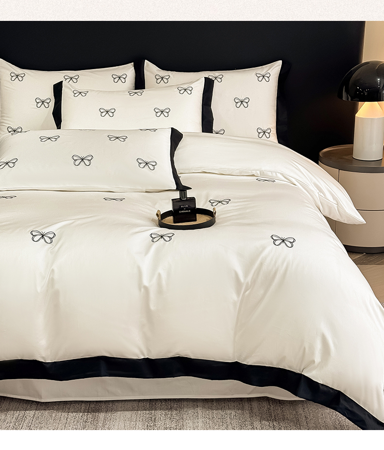 当前位置: 91家纺网 > 商品网购 > 床品套件 > 四件套 > 长绒棉四件套 > (总)KA家纺2025春夏A类纯棉全棉贡缎绣花长绒棉四件套 雨蝶系列