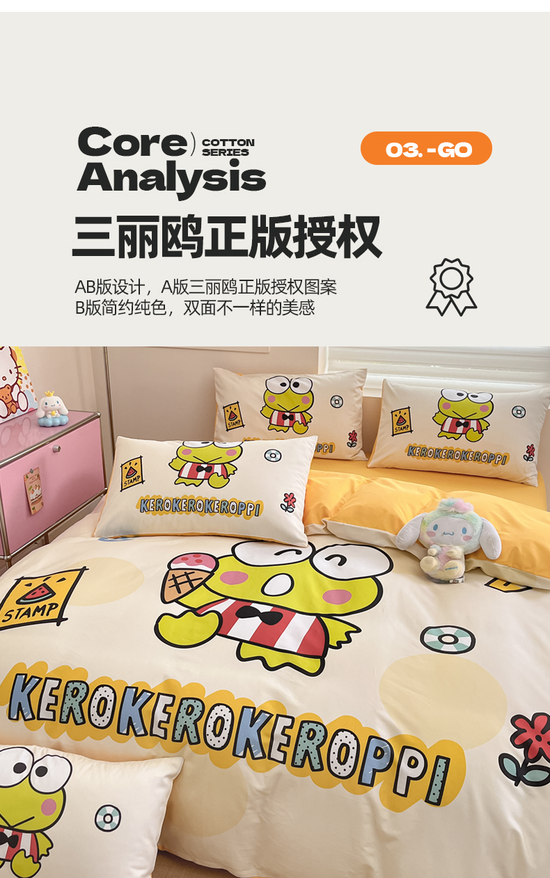 当前位置: 91家纺网 > 商品网购 > 床品套件 > 四件套 > 全棉普通四件套 > 金爱家 2025新款纯棉数码印花大阪三丽鸥四件套 假期快乐