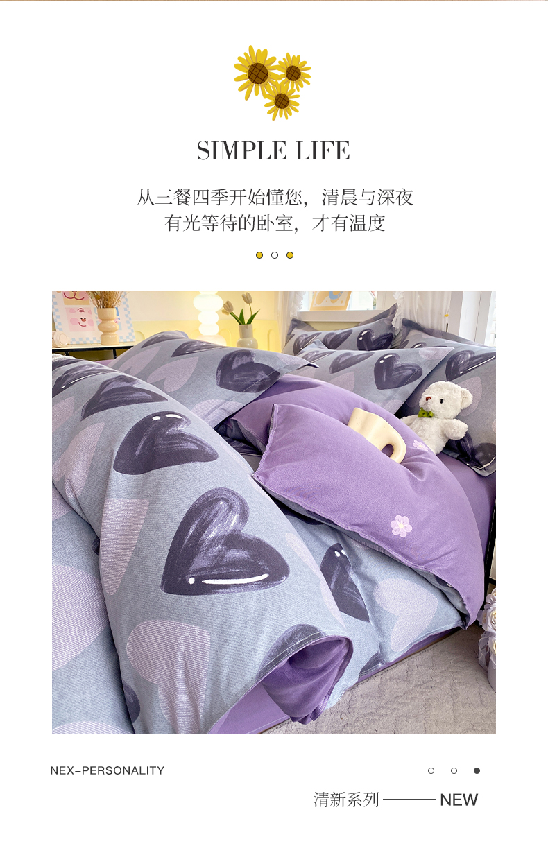 商品名称:好亿来 2025新款植物羊绒加厚斜纹磨毛四件套心语心愿