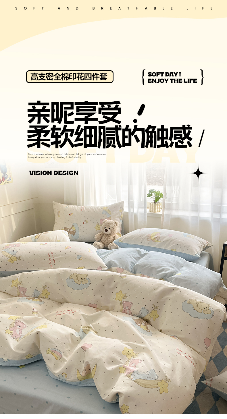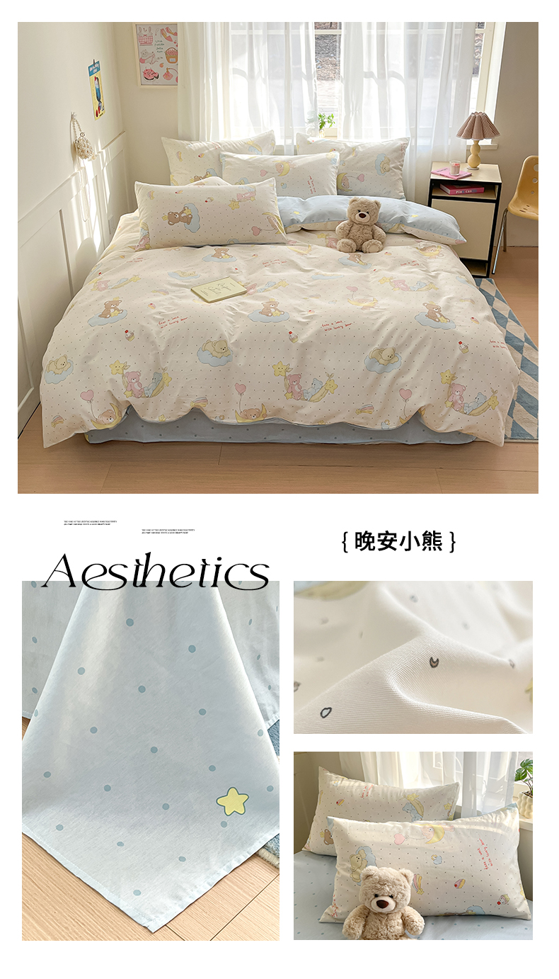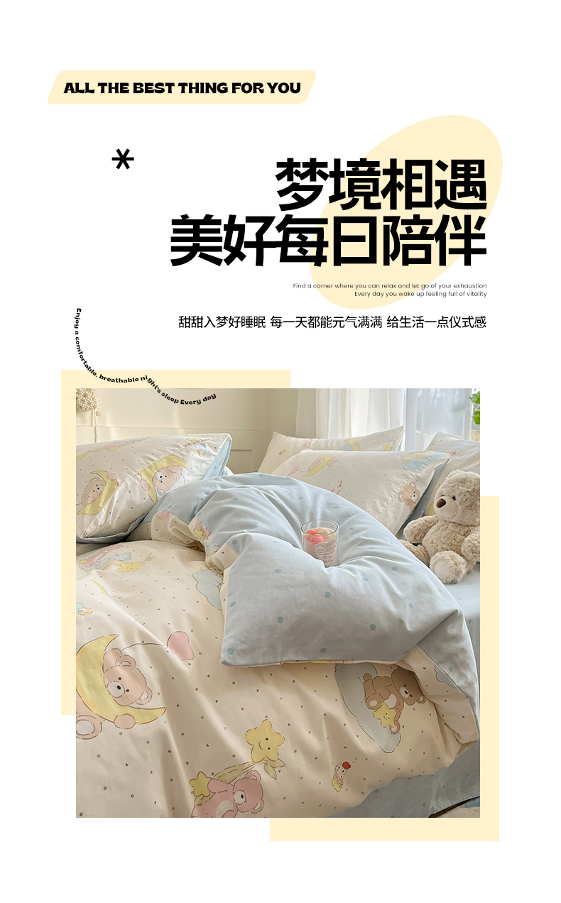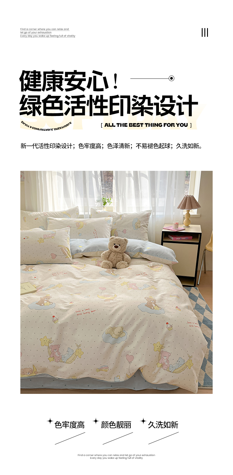 吉象家纺 2025新款高支密全棉印花四件套12868跑量款 晚安小熊