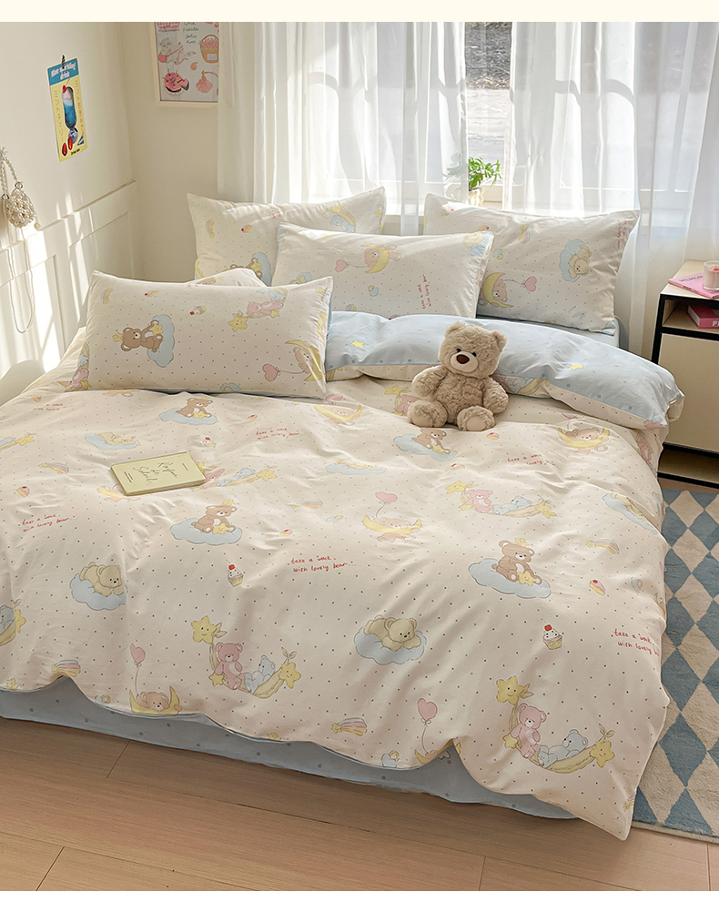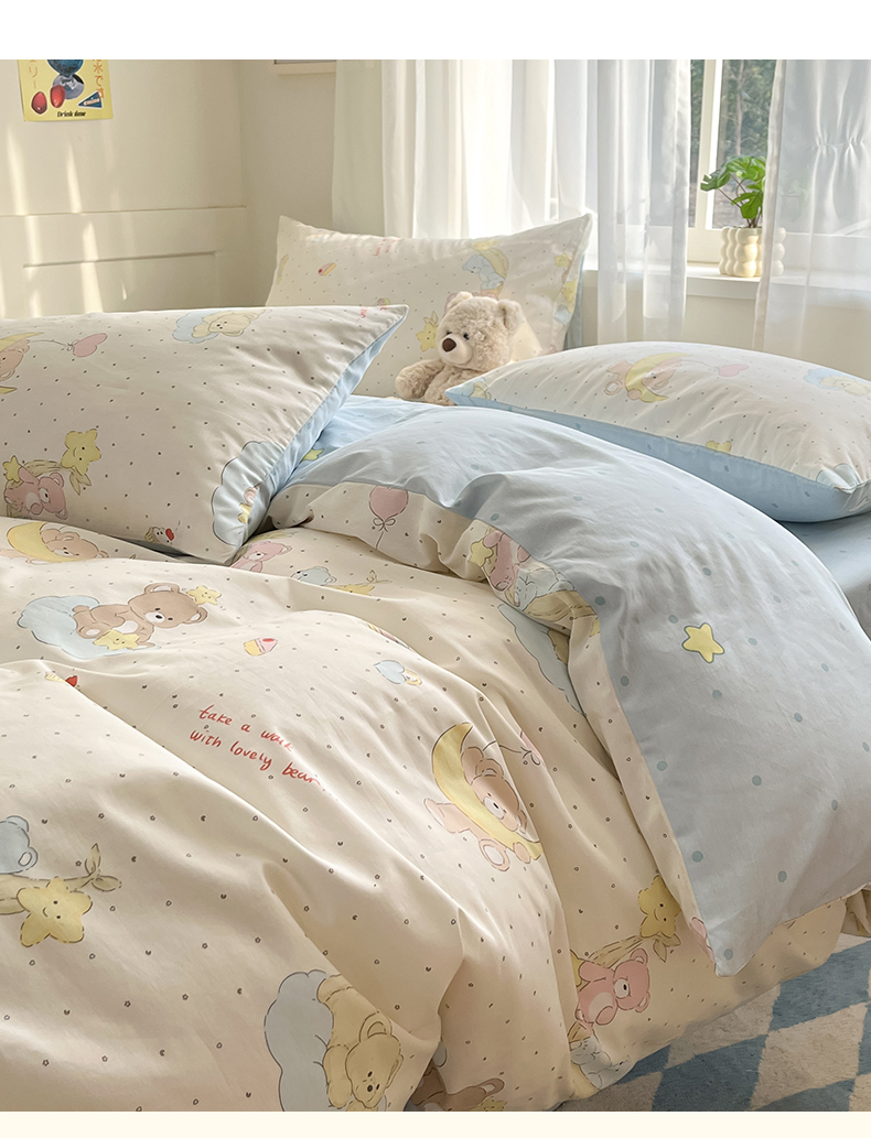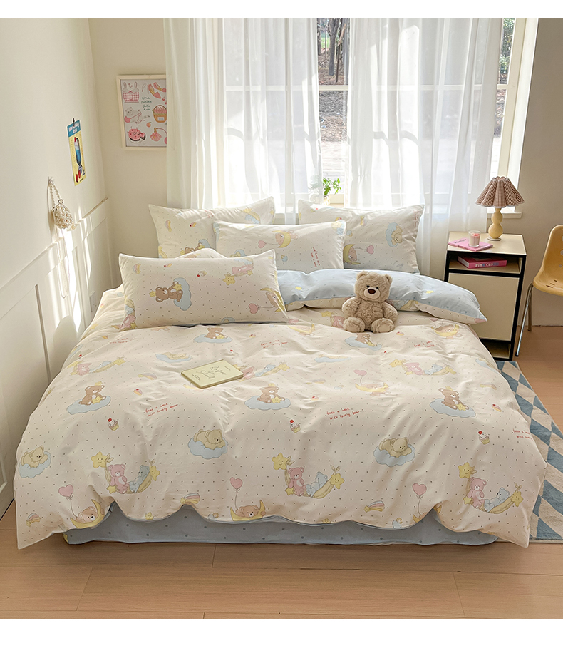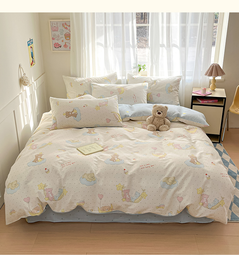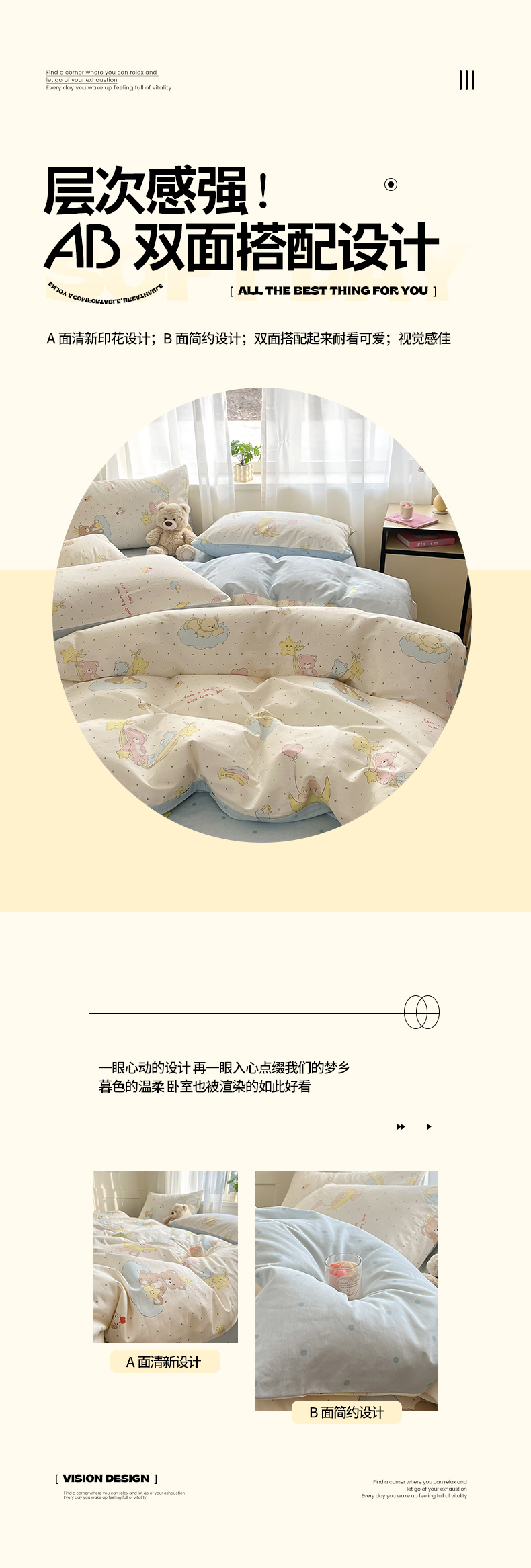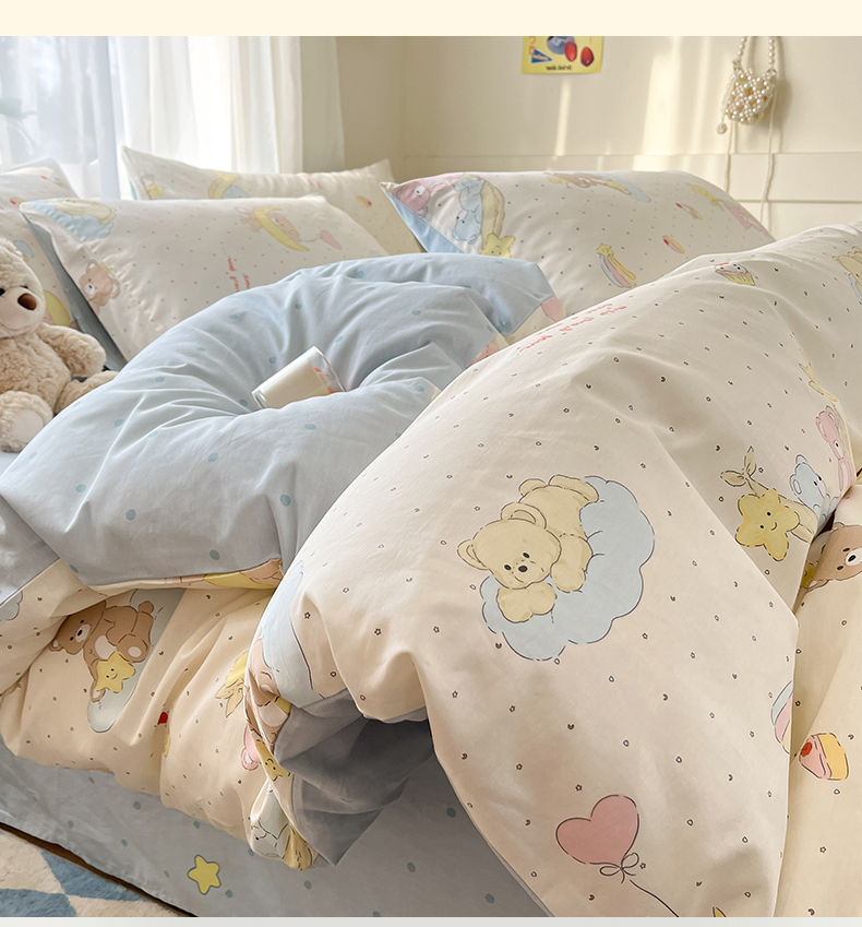 吉象家纺 2025新款高支密全棉印花四件套12868跑量款 晚安小熊