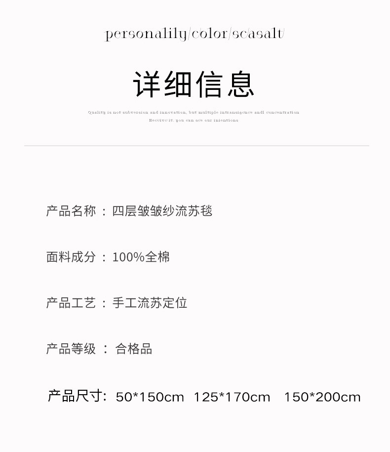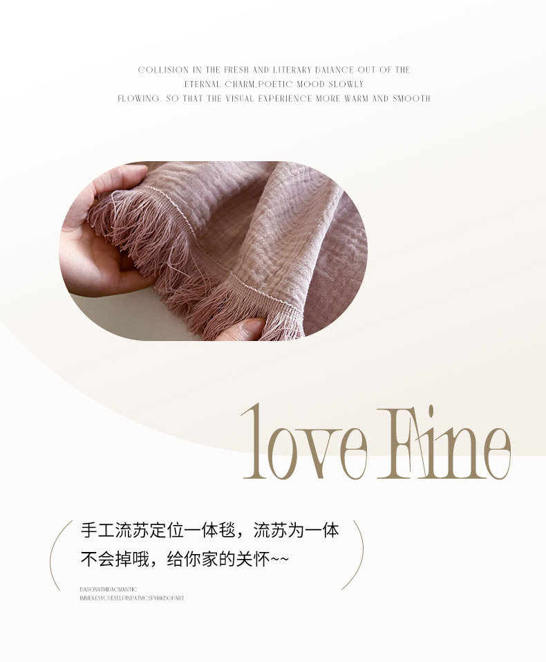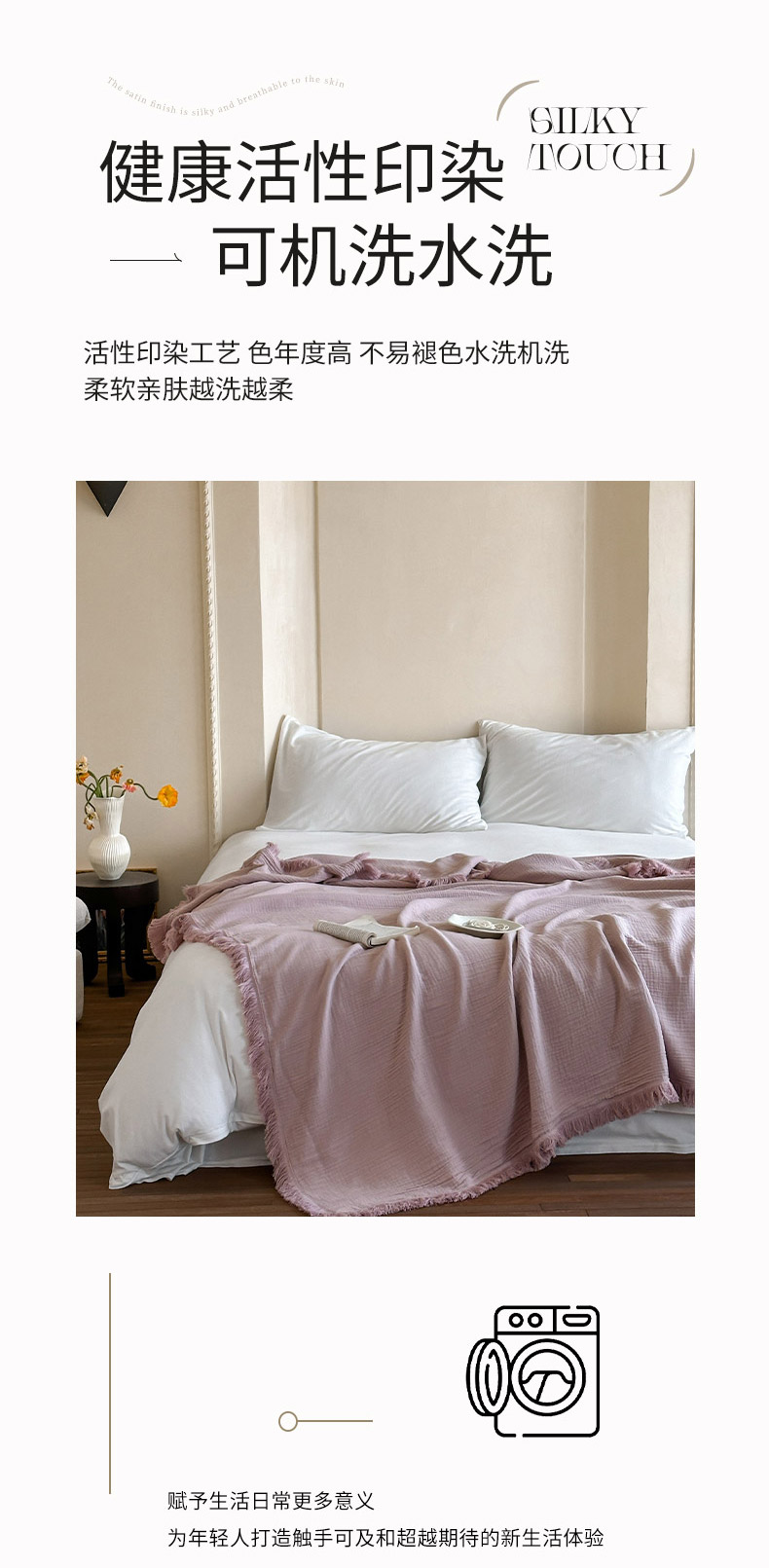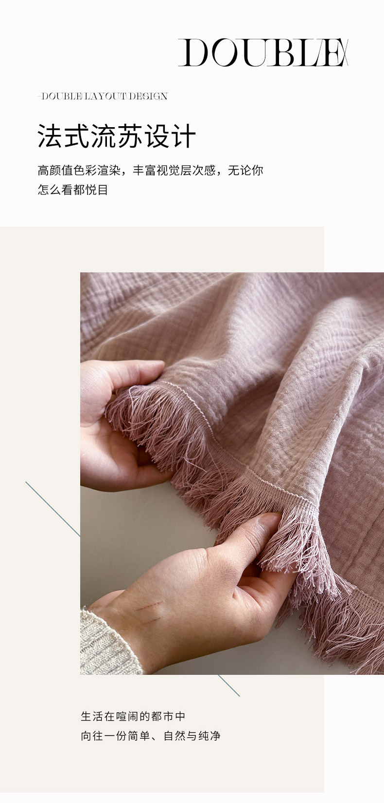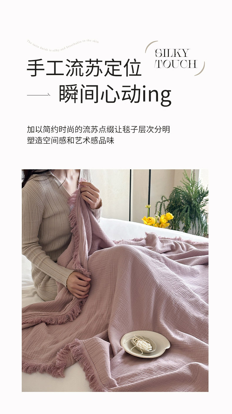 商品名称:三朵 2025新款全棉四层绉绉纱流苏多功能毯 格蕾丝粉