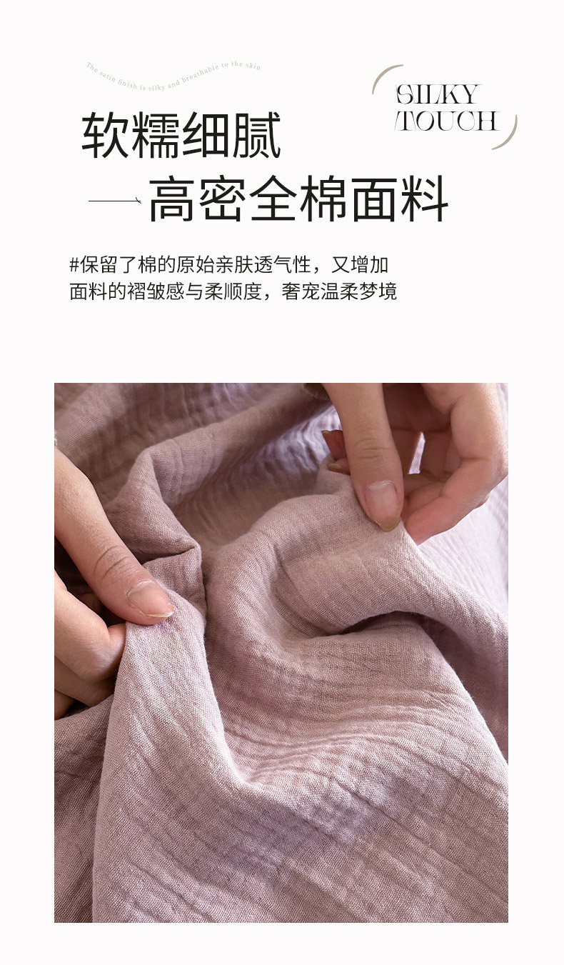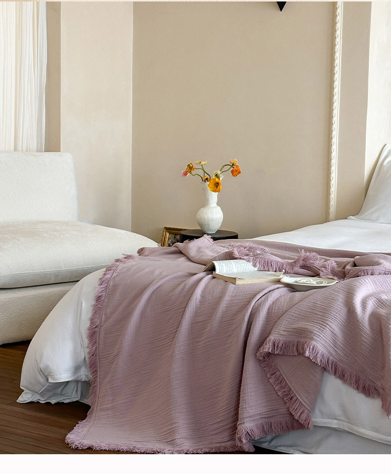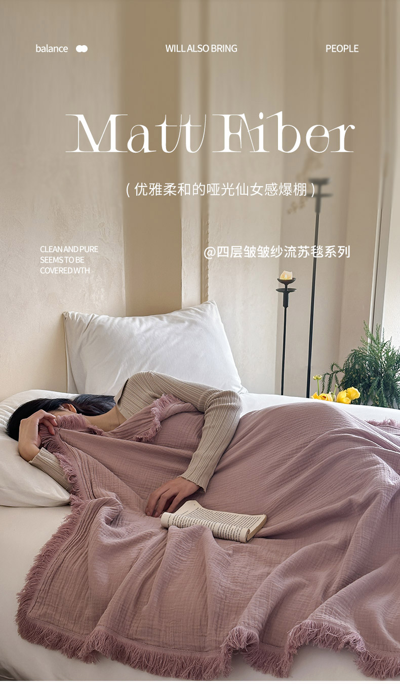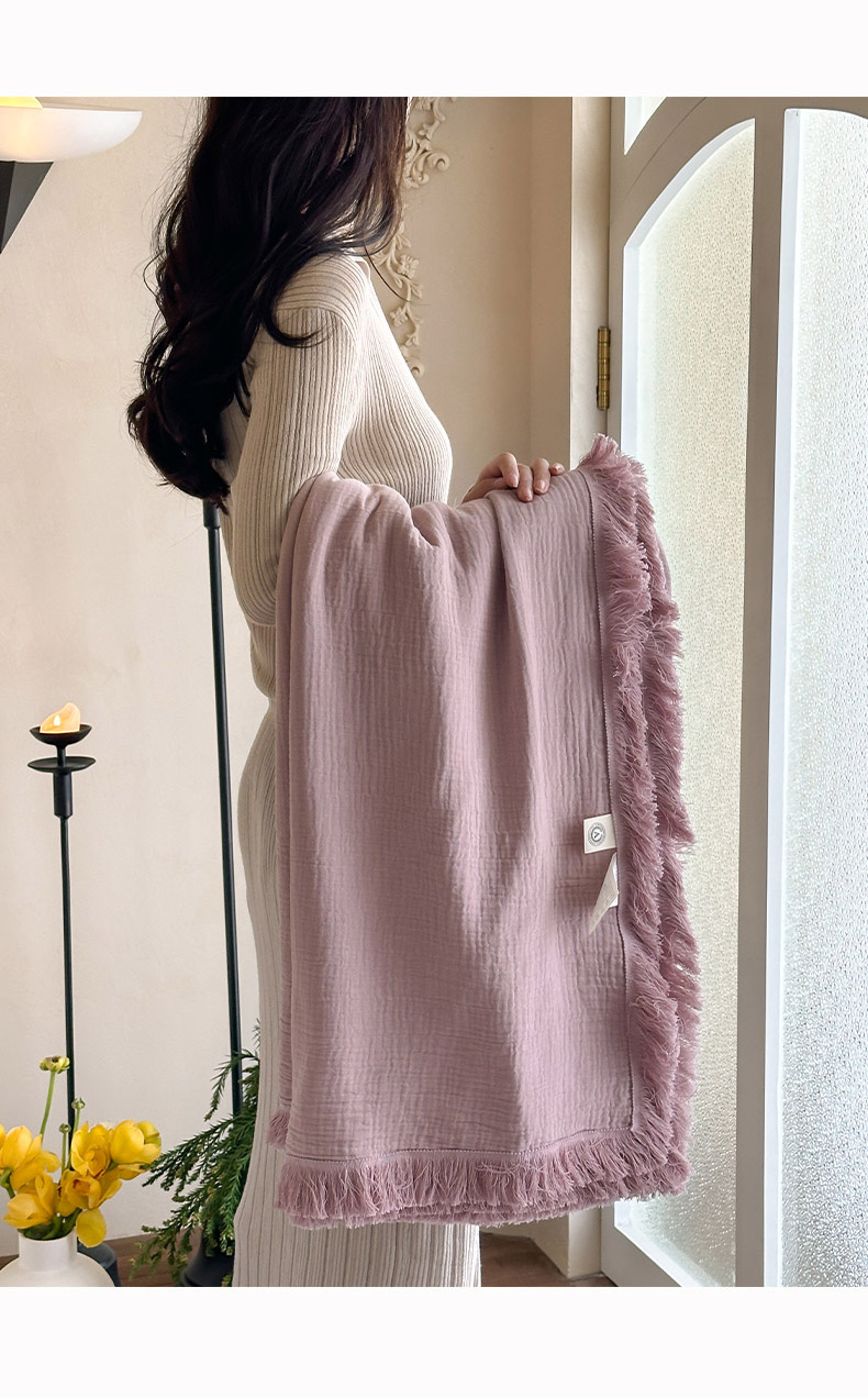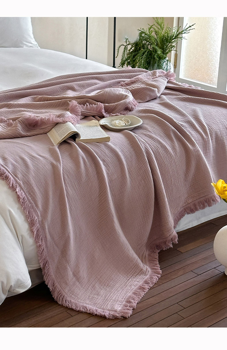 三朵 2025新款全棉四层绉绉纱流苏多功能毯 格蕾丝粉