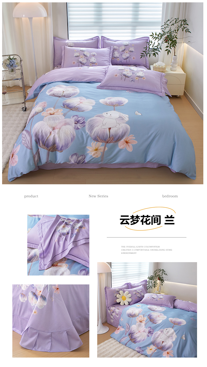 启航家居2025新款春夏直播爆款全棉大版印花四件套 云梦花间兰