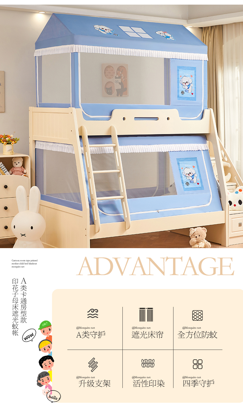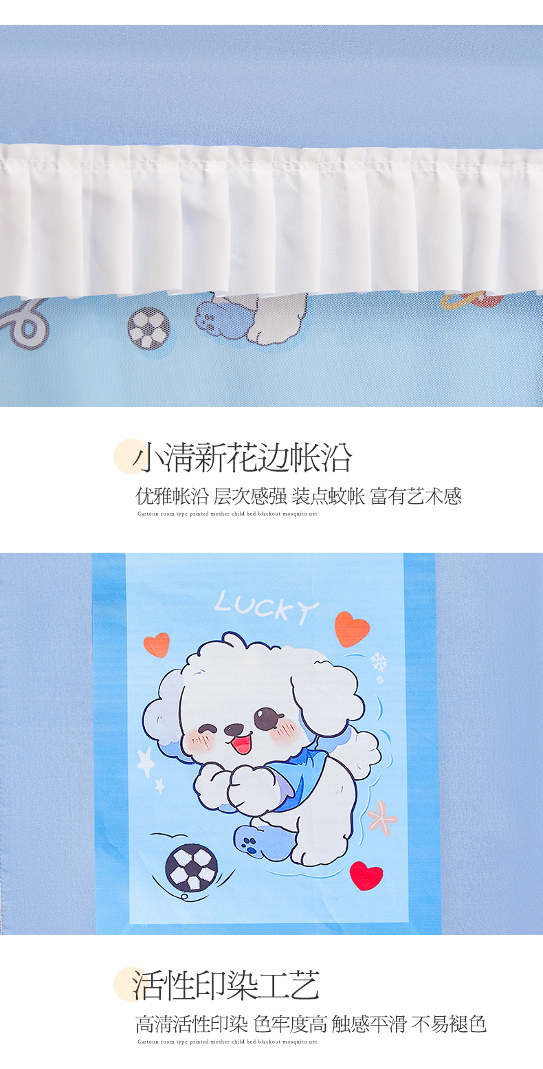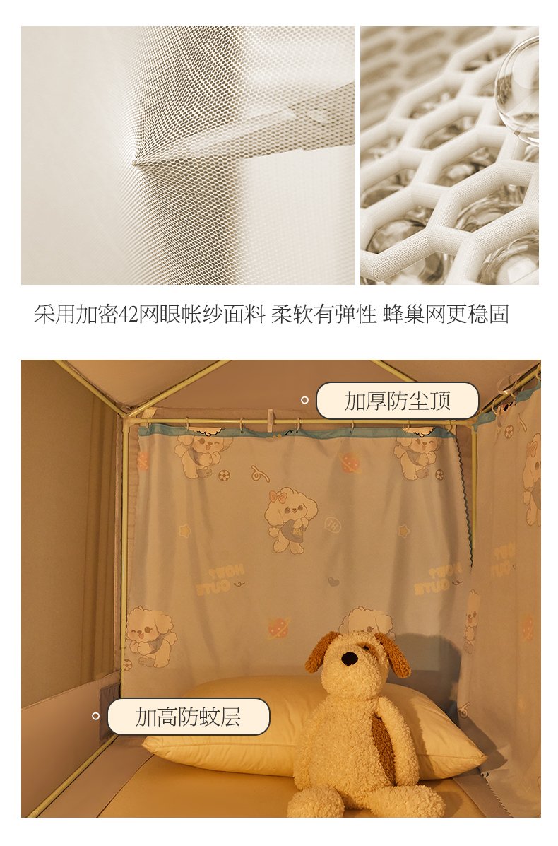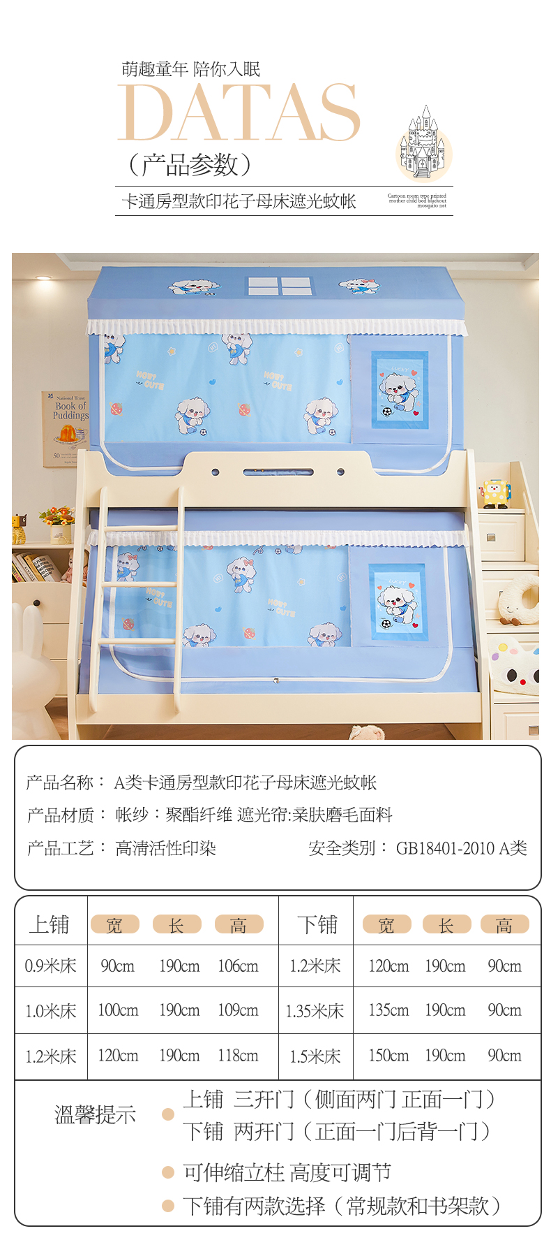 当前位置: 91家纺网 > 商品网购 > 床上用品 > 蚊帐 > 坐床式蚊帐 > 迪凡保罗蚊帐 2025新款2504专版印花遮光帘上下铺子母蚊帐-城堡款 可爱狗狗