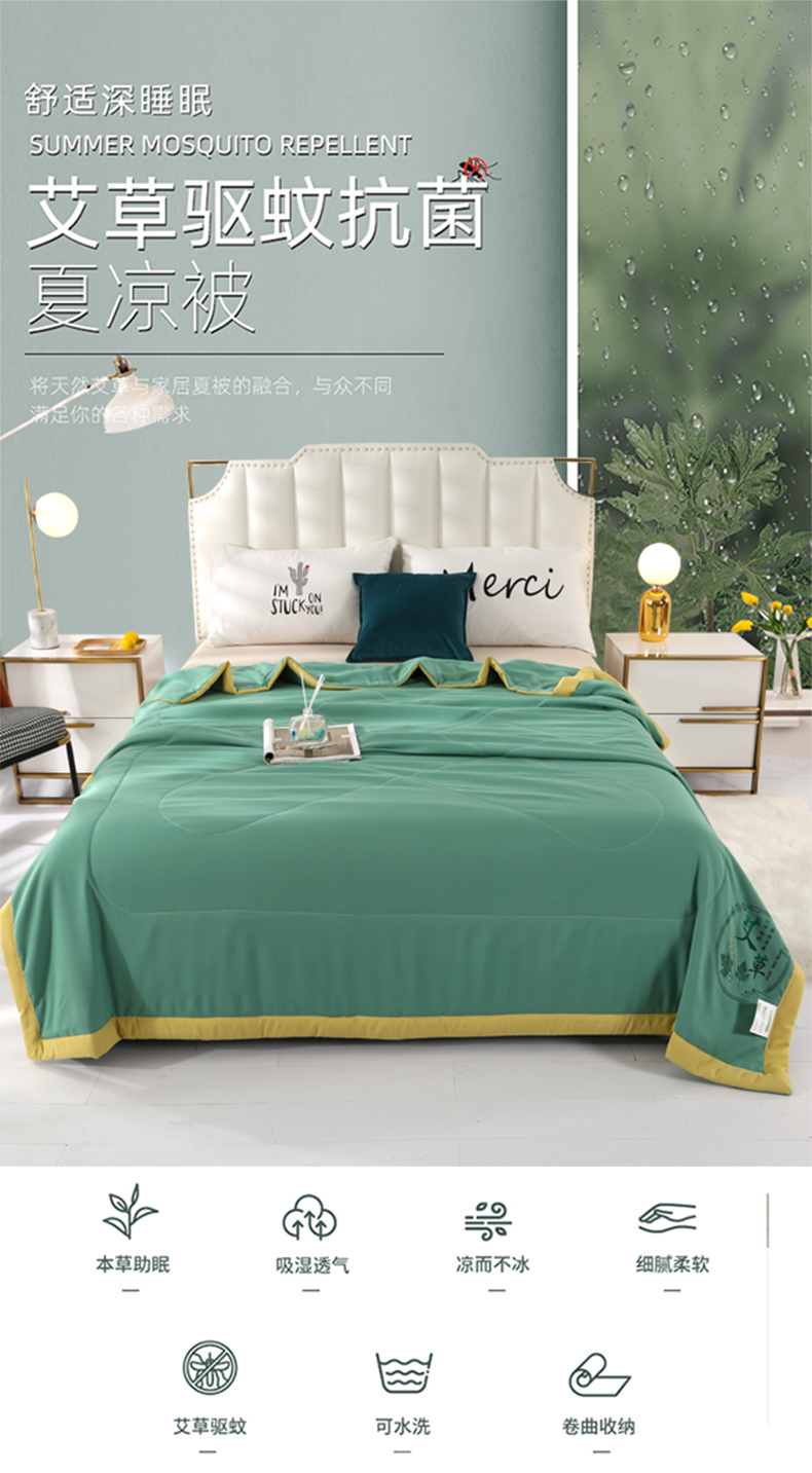商品名称:圣尔雅家纺 2025新款艾草驱蚊抗菌夏凉被子被芯 青草绿