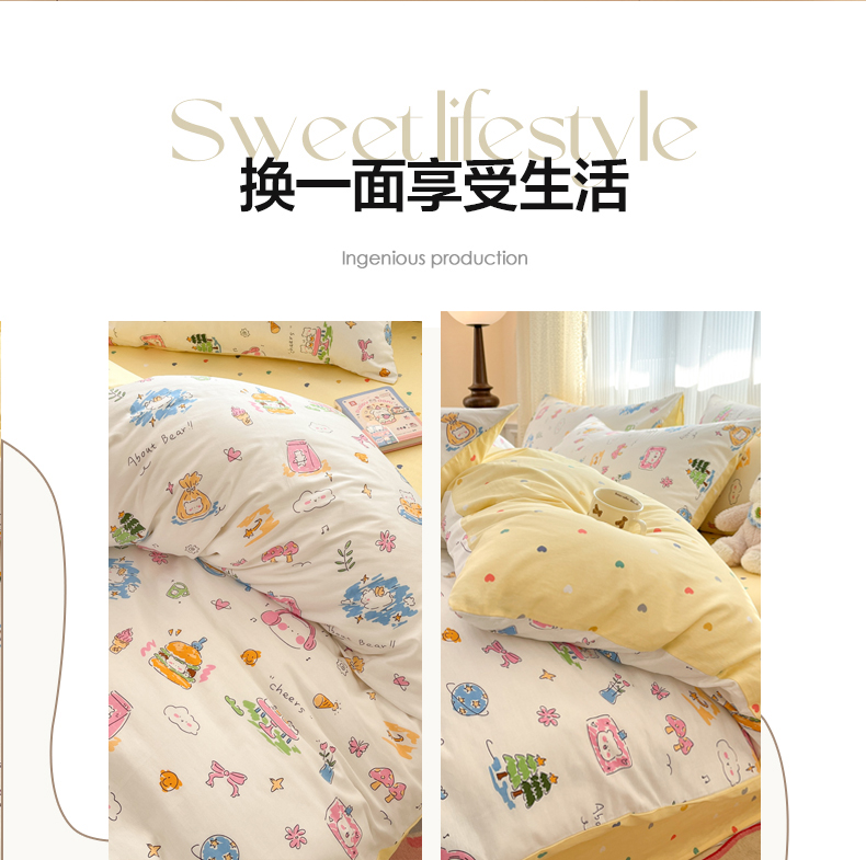 当前位置: 91家纺网 > 商品网购 > 床品套件 > 四件套 > 全棉普通四件套 > 麦伦家居 2025春夏新品全棉斜纹40支13372系列 开心生活