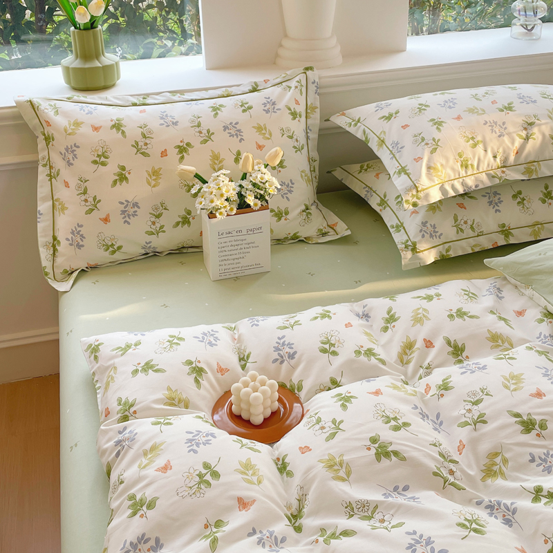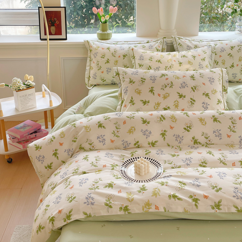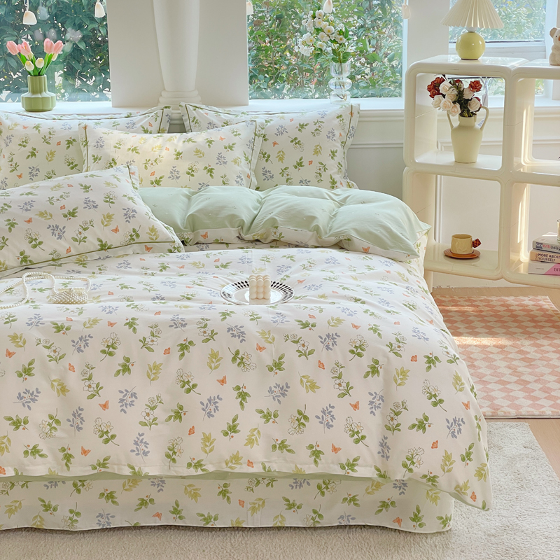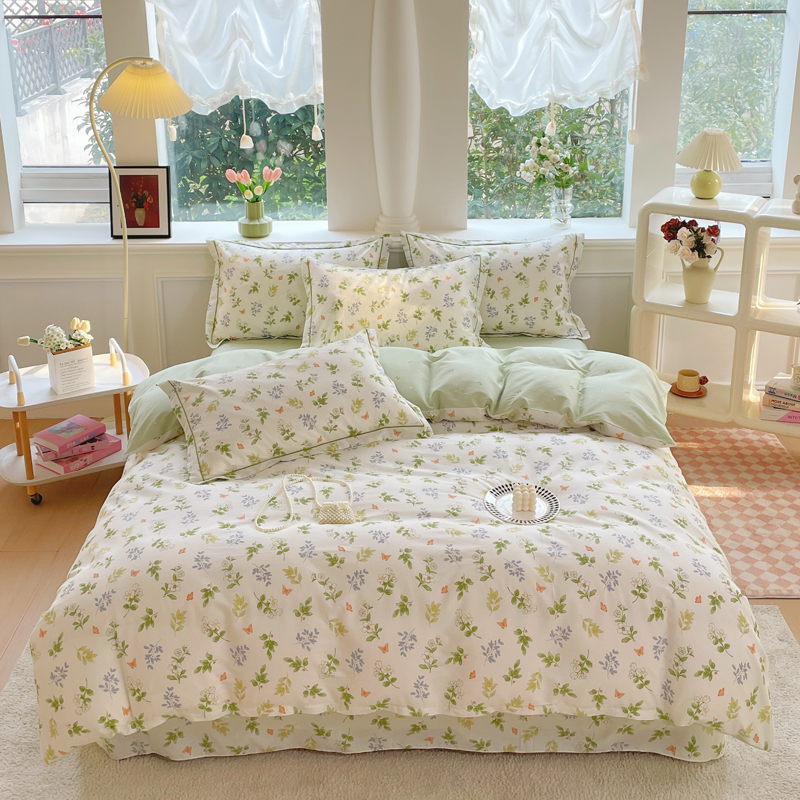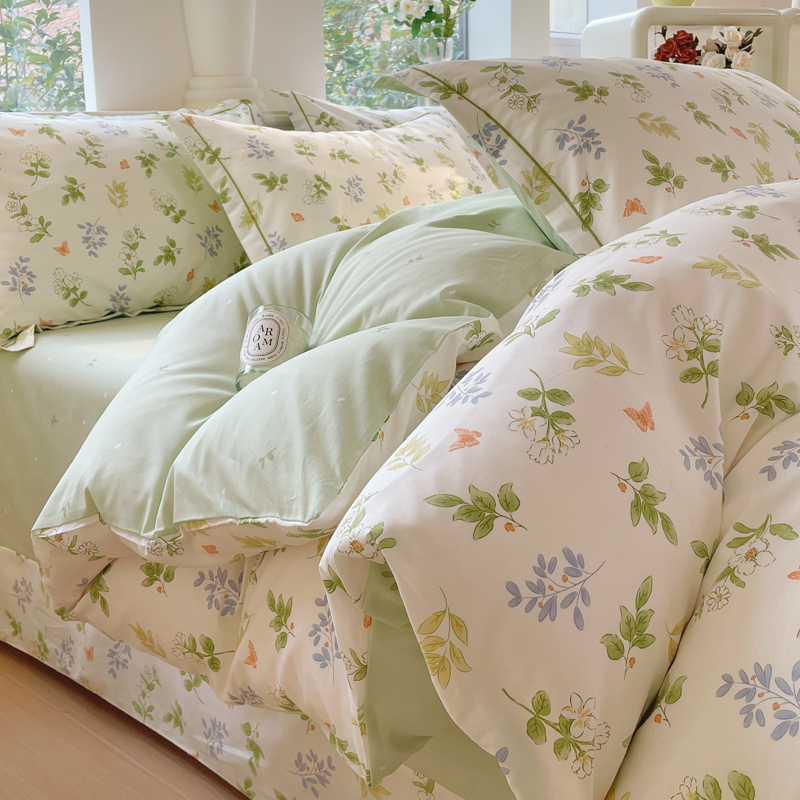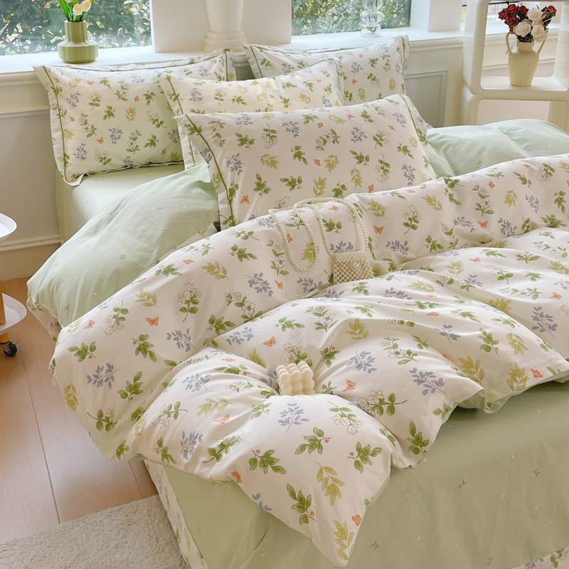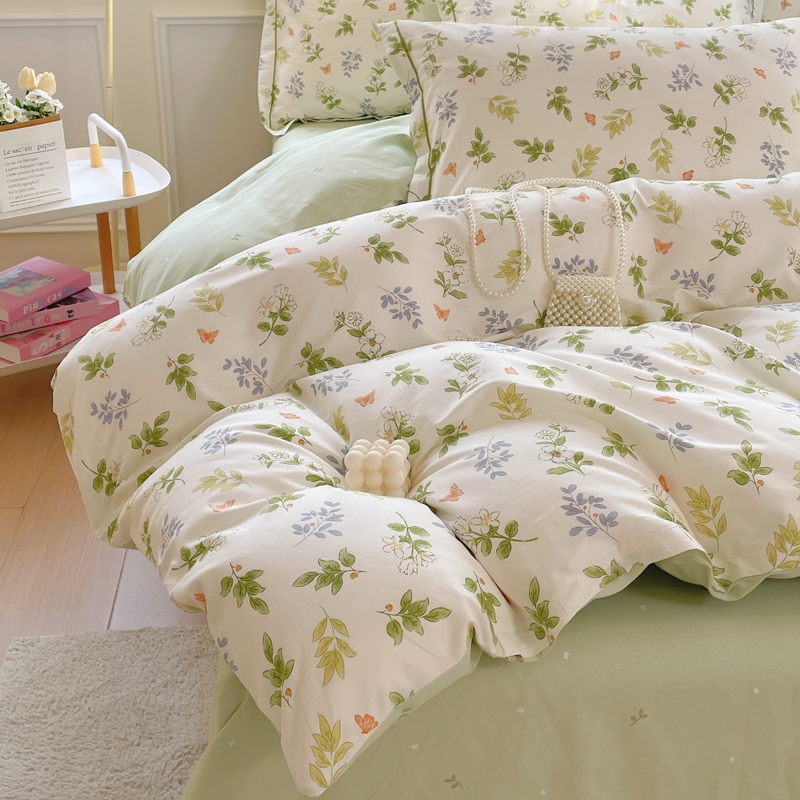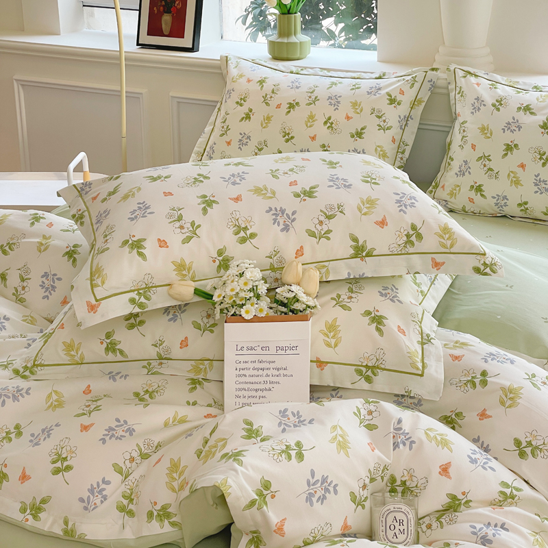 商品名称:铭博家纺 2025新款直播爆款100%全棉吊边一字绣工艺款13070印花全棉四件套 芳草记忆
