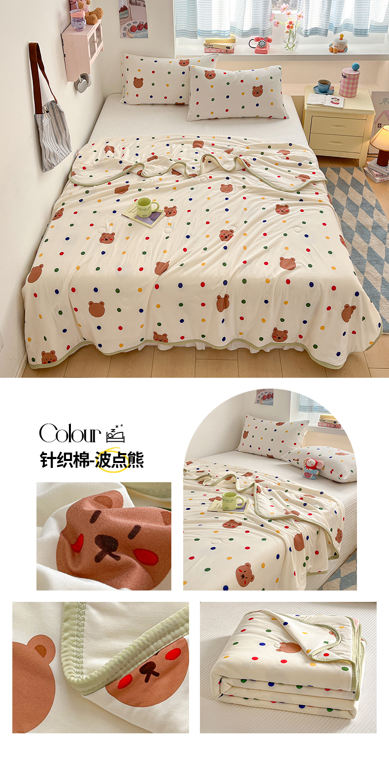 商品名称:桃子家居 2025新款A类高品质牛奶针织棉软糯大豆夏被 针织棉-波点熊