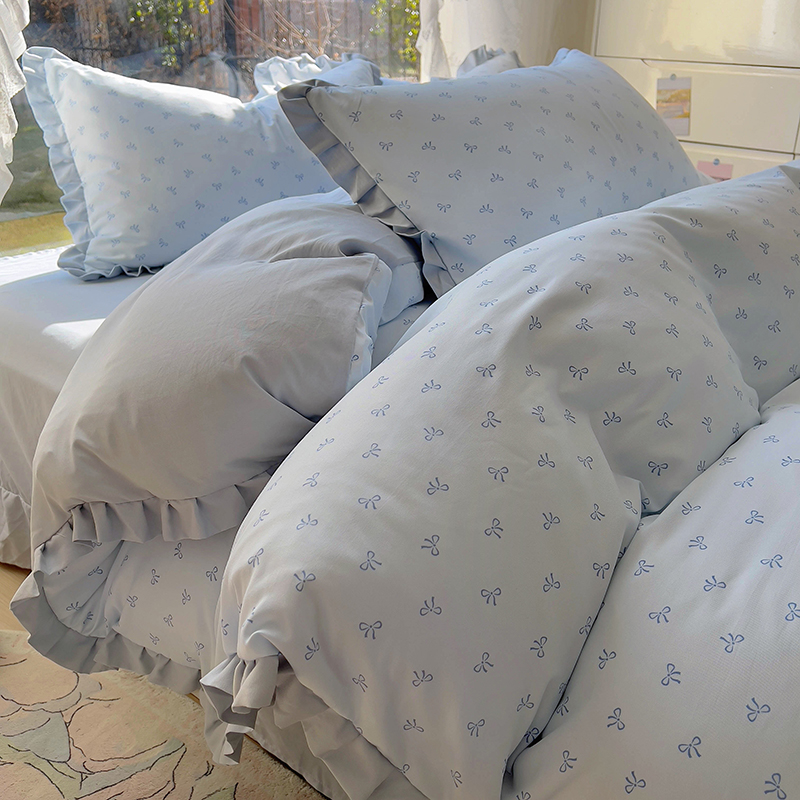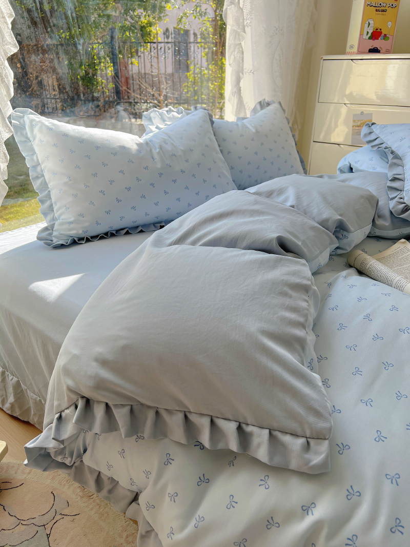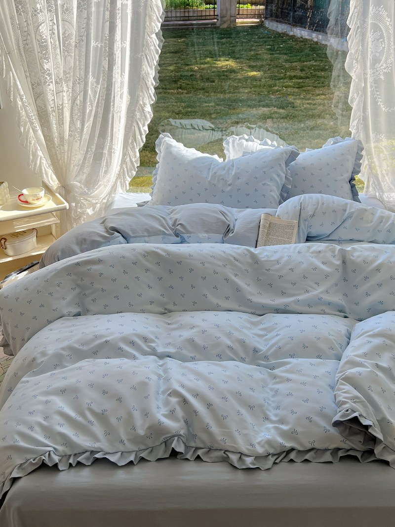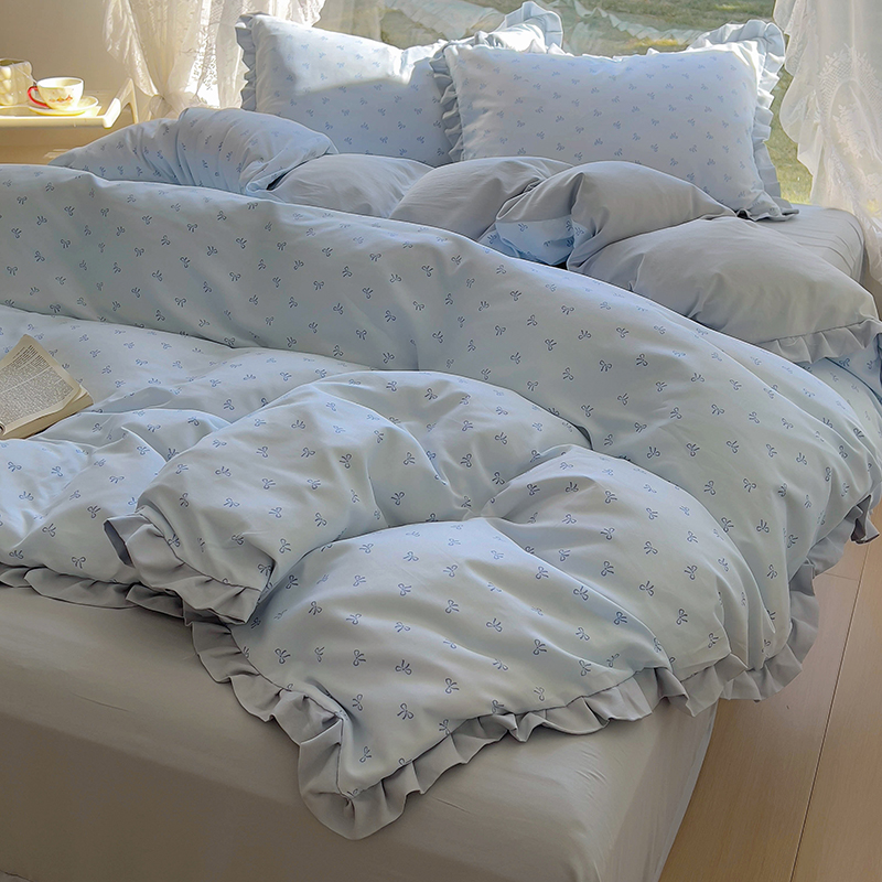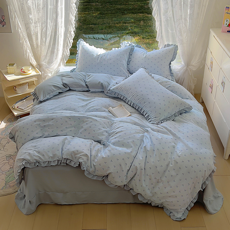 商品名称:欧尚 2025新款针织棉双层纱四件套 洁美蓝