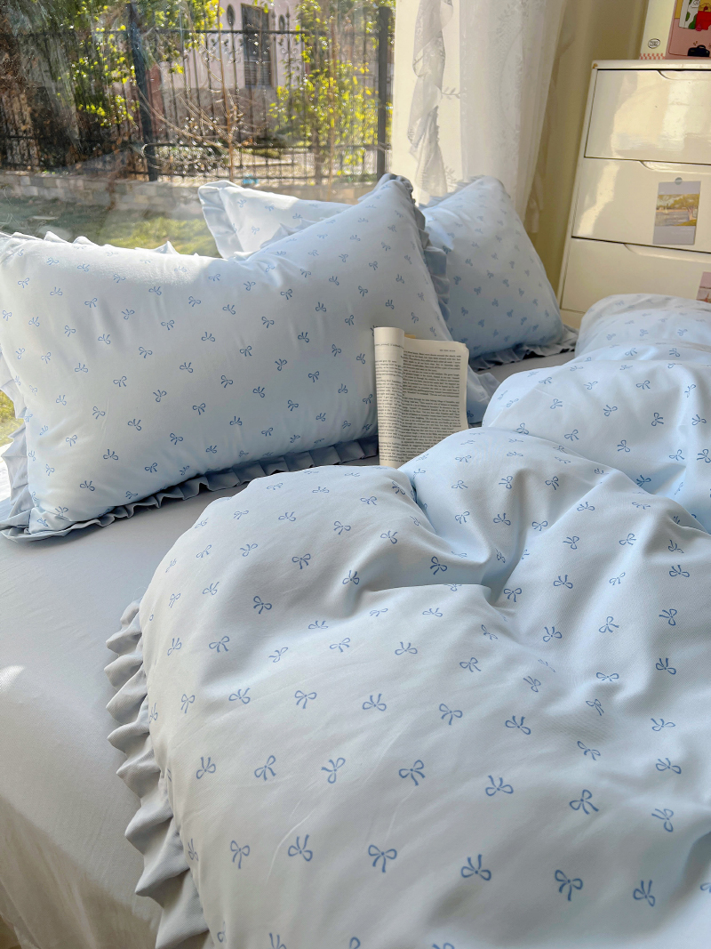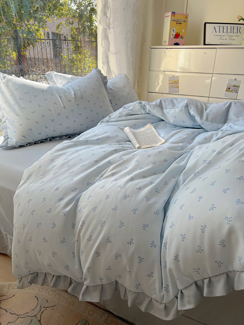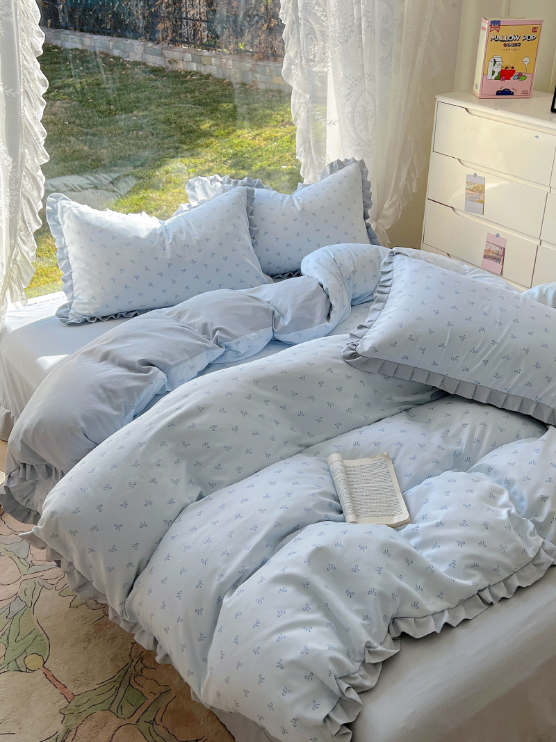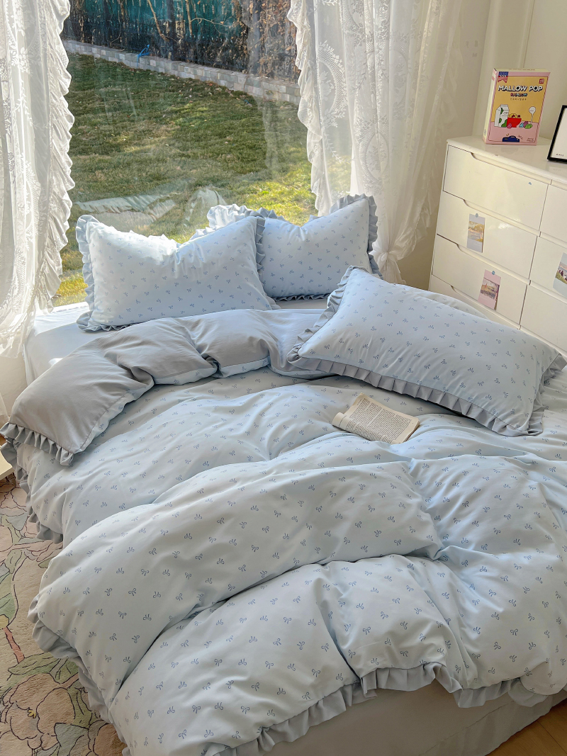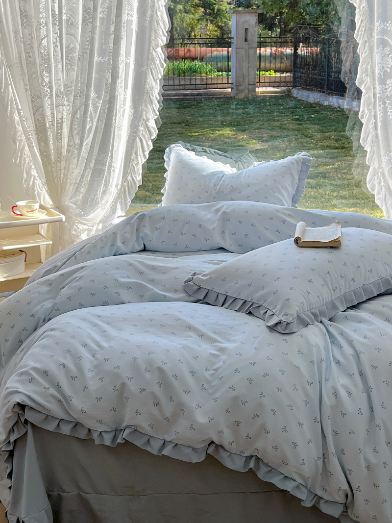 商品名称:欧尚 2025新款针织棉双层纱四件套 洁美蓝