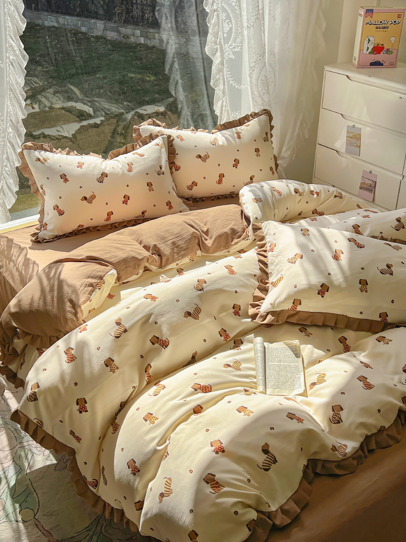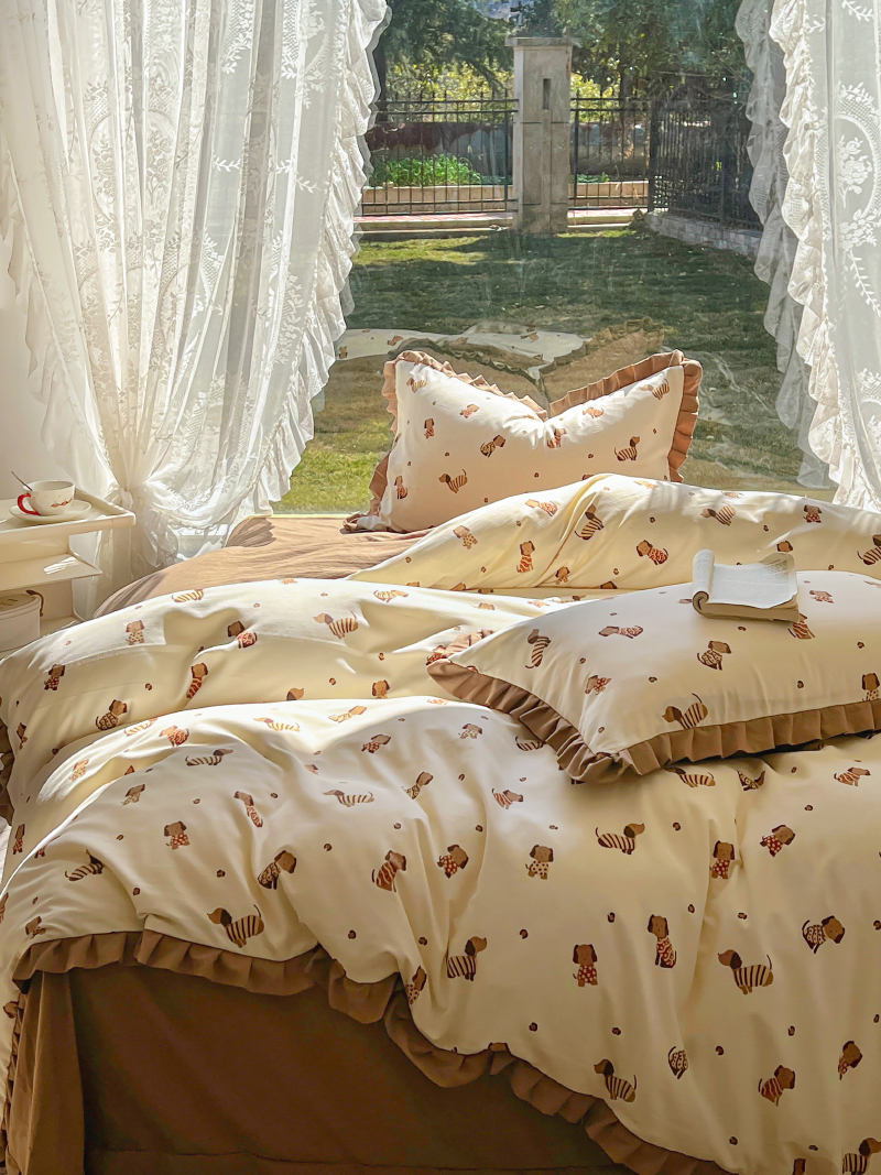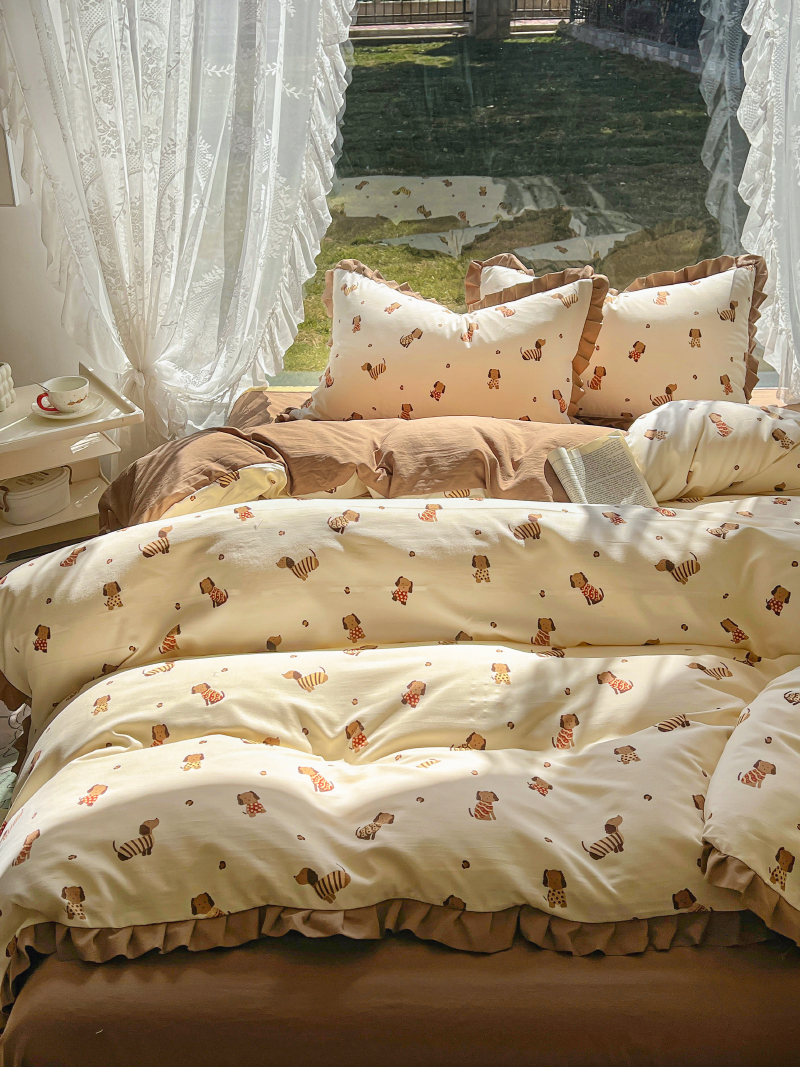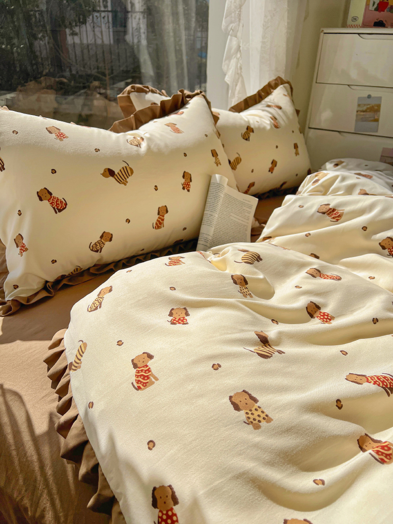 欧尚 2025新款针织棉双层纱四件套 香肠狗