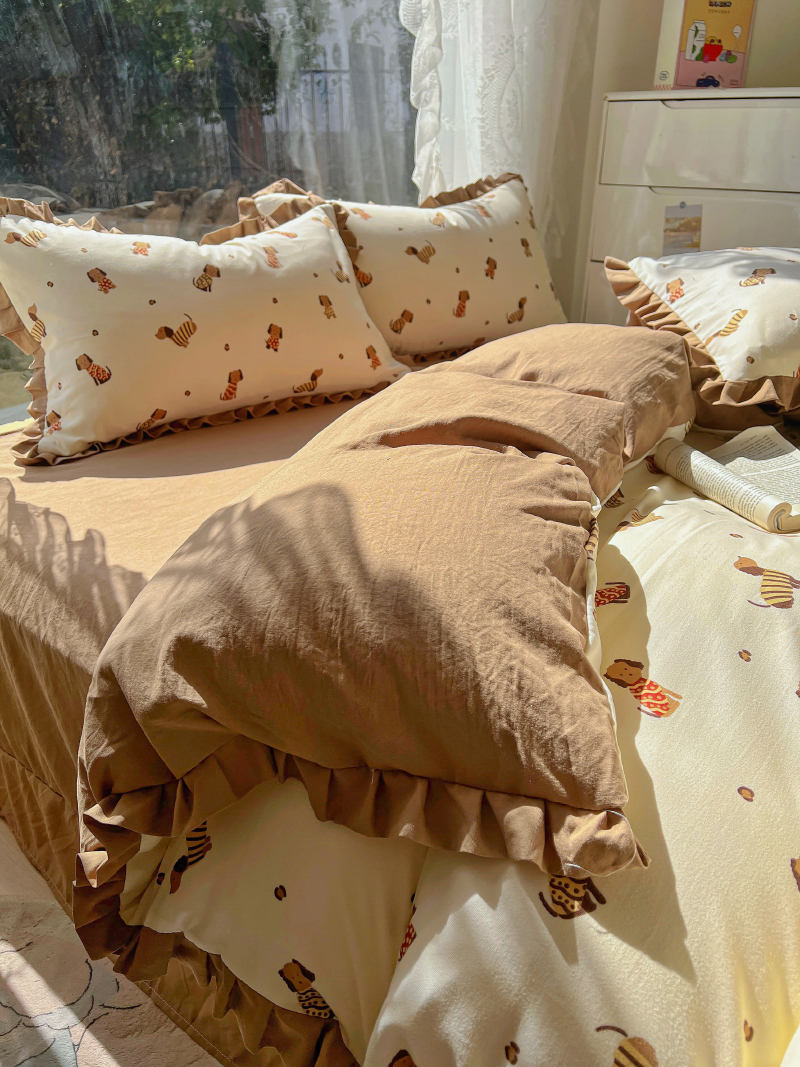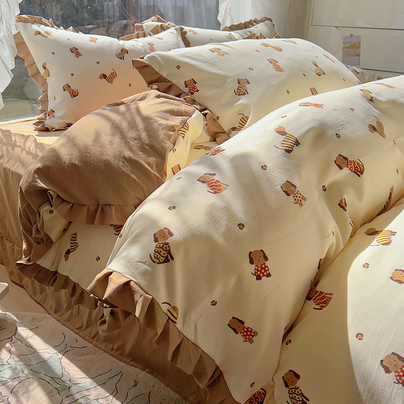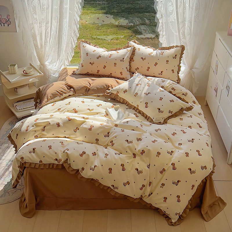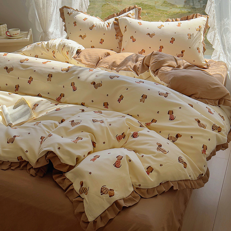 欧尚 2025新款针织棉双层纱四件套 香肠狗