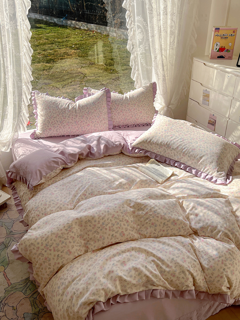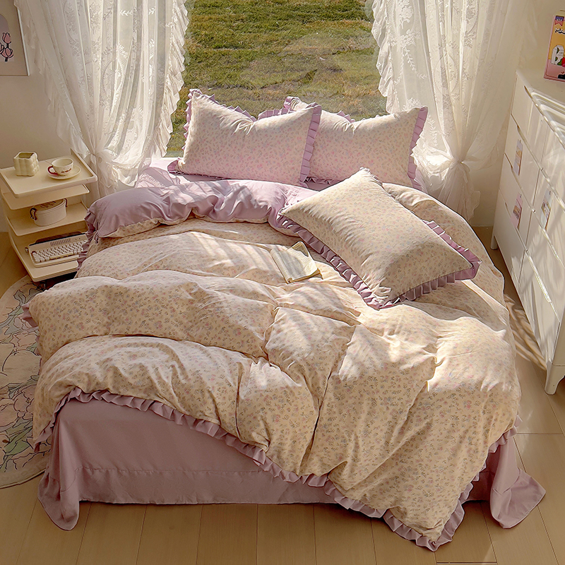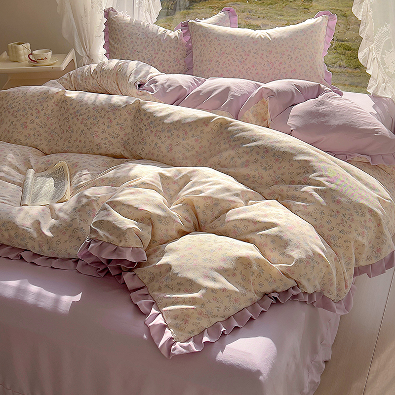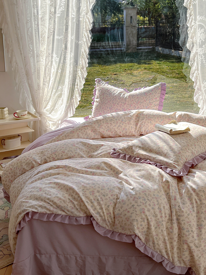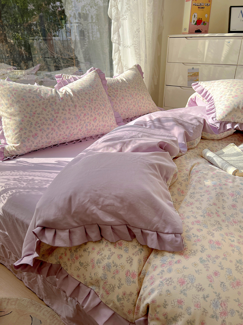 商品名称:欧尚 2025新款针织棉双层纱四件套 紫苏