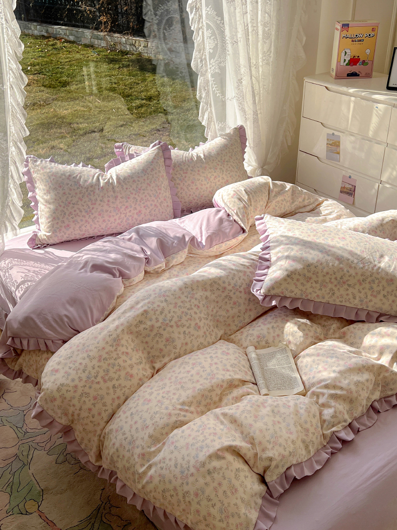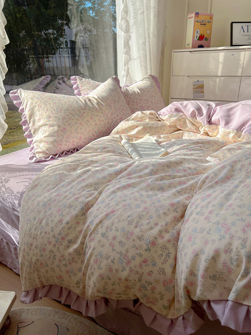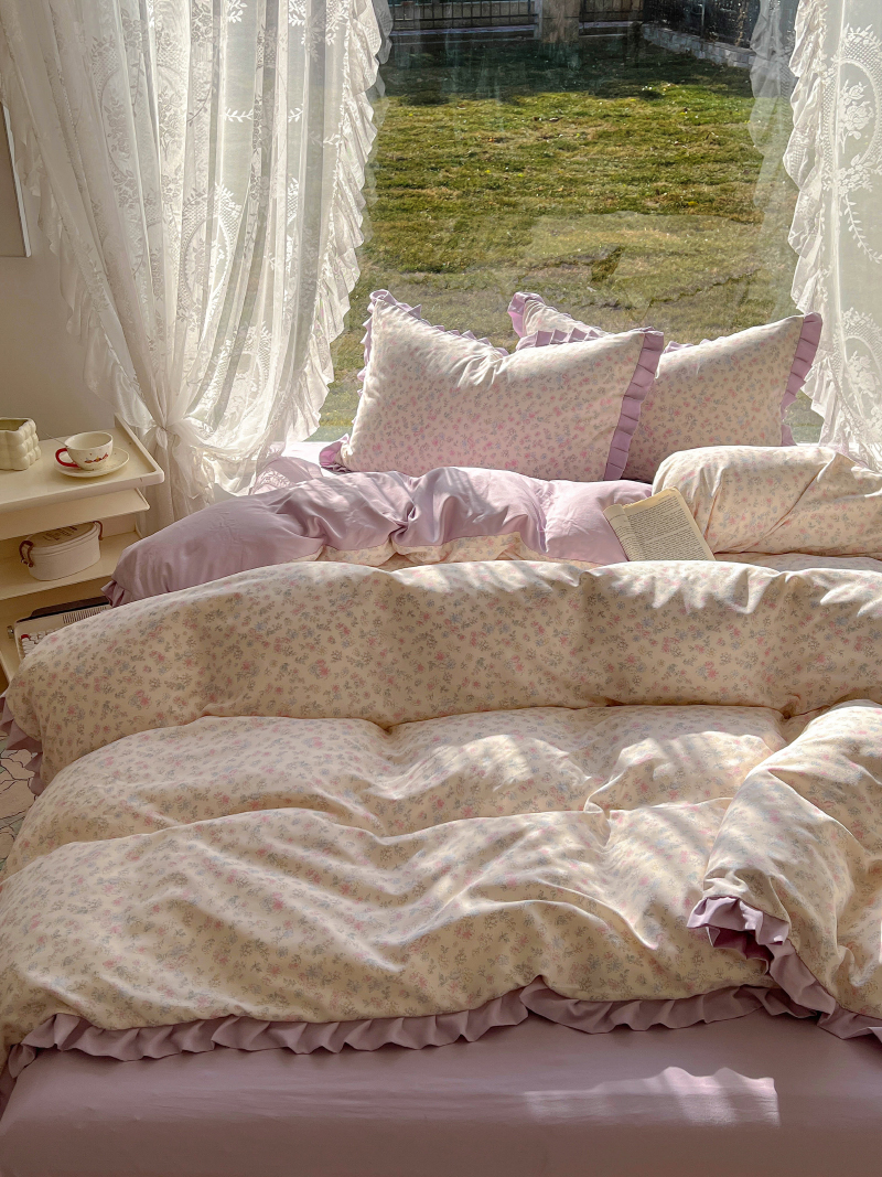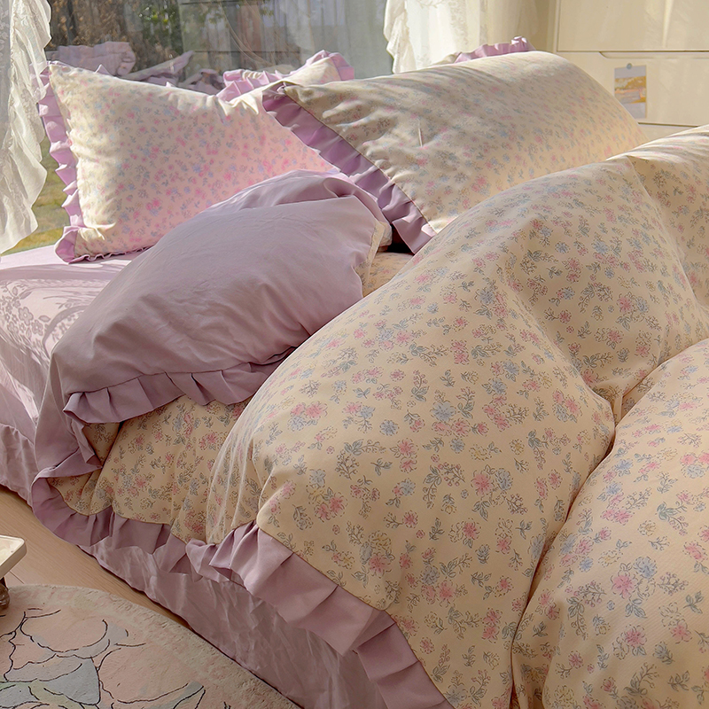 商品名称:欧尚 2025新款针织棉双层纱四件套 紫苏
