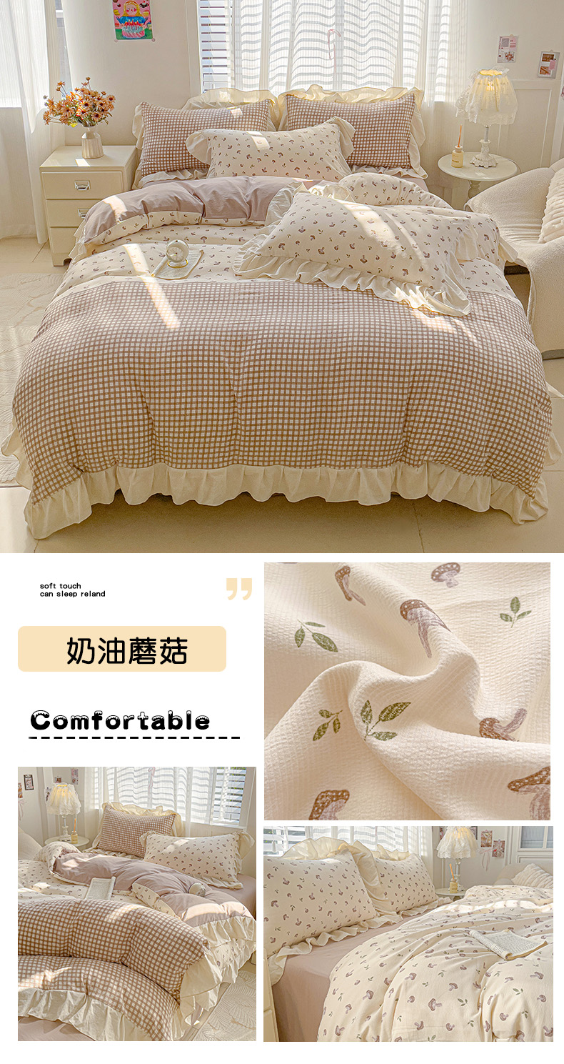当前位置: 91家纺网 > 商品网购 > 床品套件 > 四件套 > 双层纱四件套 > 金梦拉2025新款云朵泡泡纱韩系小碎花格纹系列皱皱纱四件套 奶油蘑菇