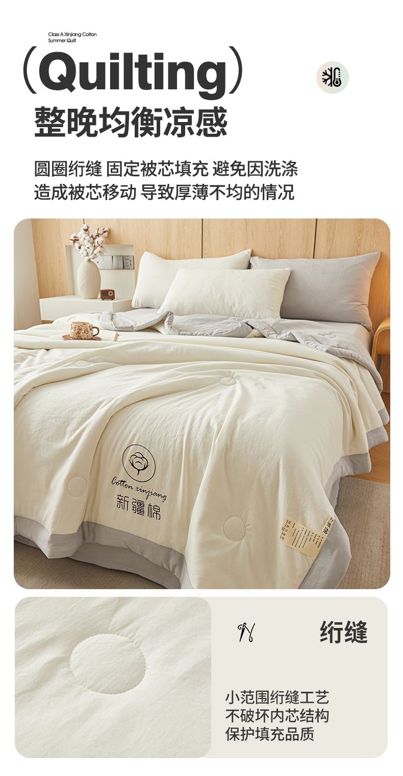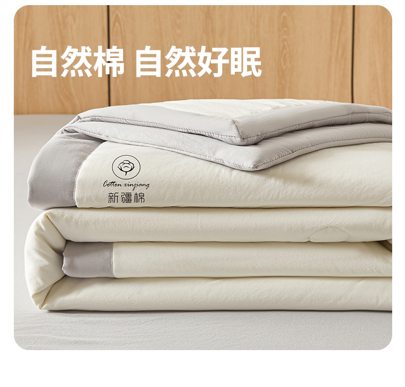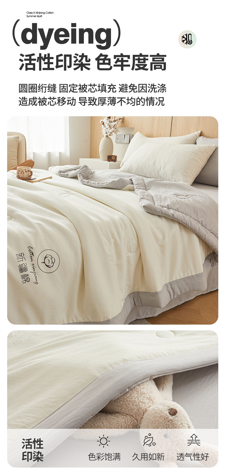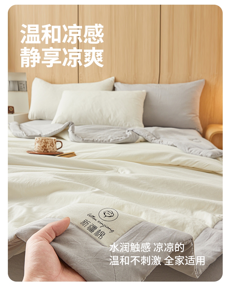 晓时候 2025新款无印风水洗棉新疆棉花被夏被夏凉被空调被子 素夏-白灰