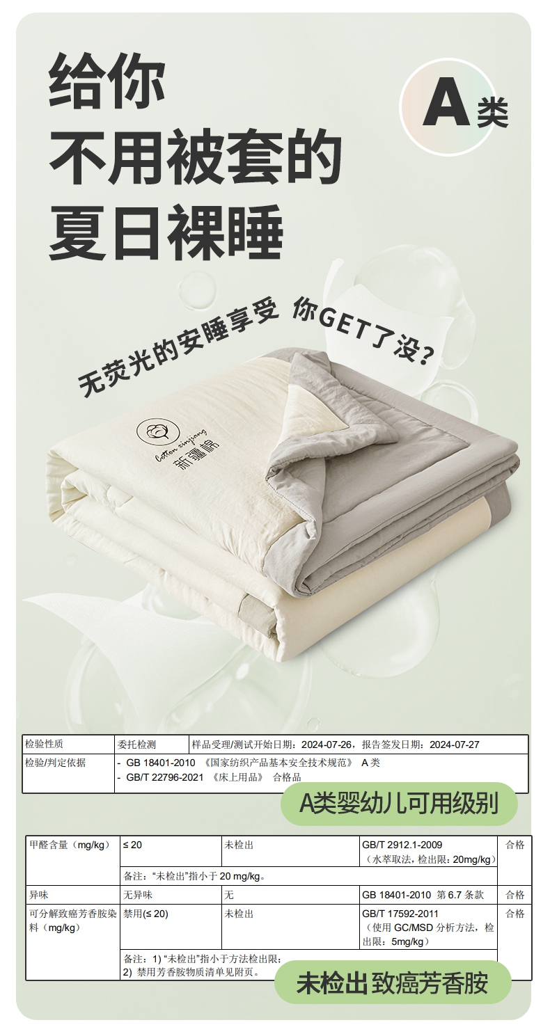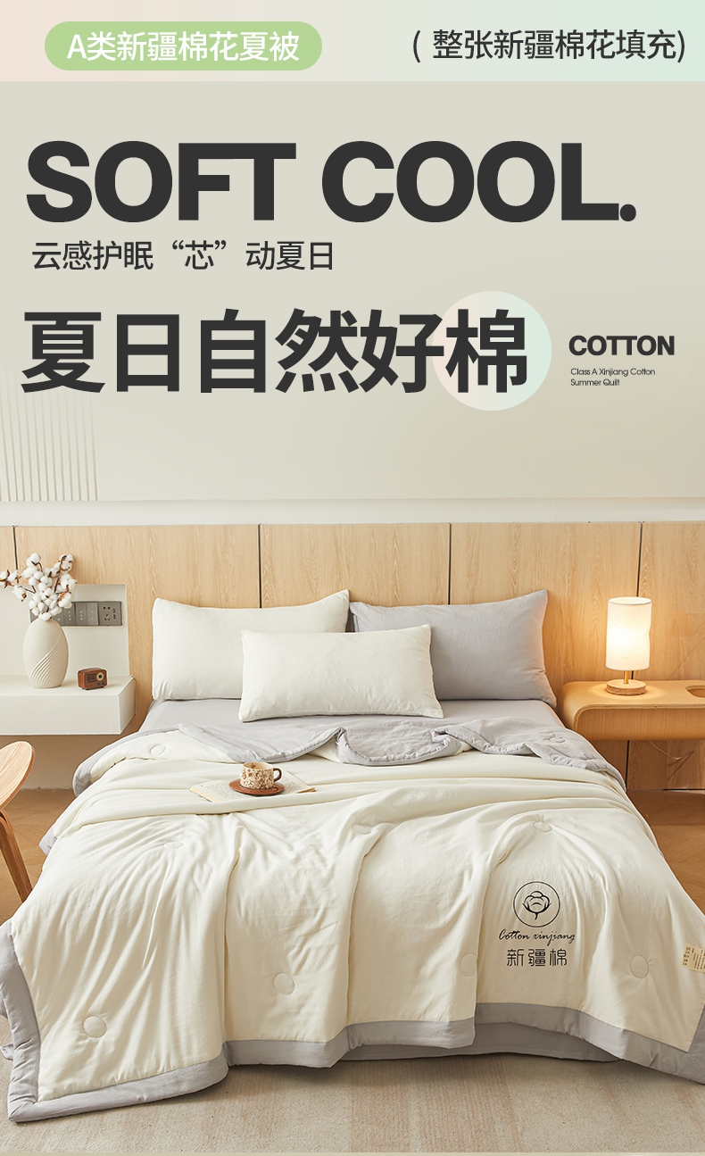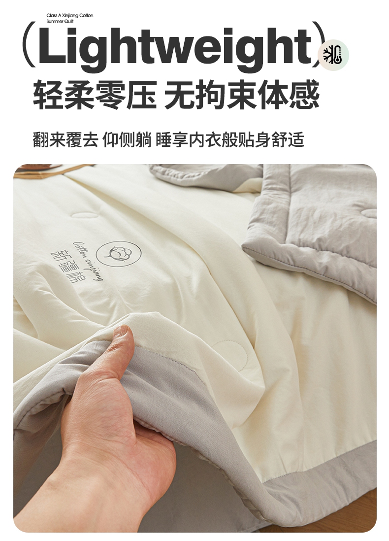 商品名称:晓时候 2025新款无印风水洗棉新疆棉花被夏被夏凉被空调被子 素夏-白灰