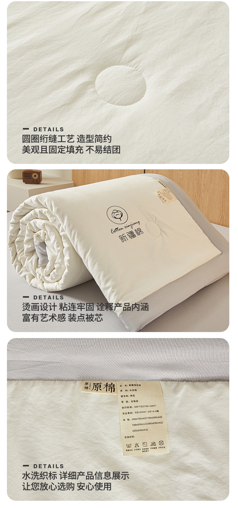 (总)晓时候 2025新款泡泡纱新疆棉花被冬被春秋被被子被芯四季空调被,初棉-淡雅灰,初棉-奶白灰,初棉-奶昔白