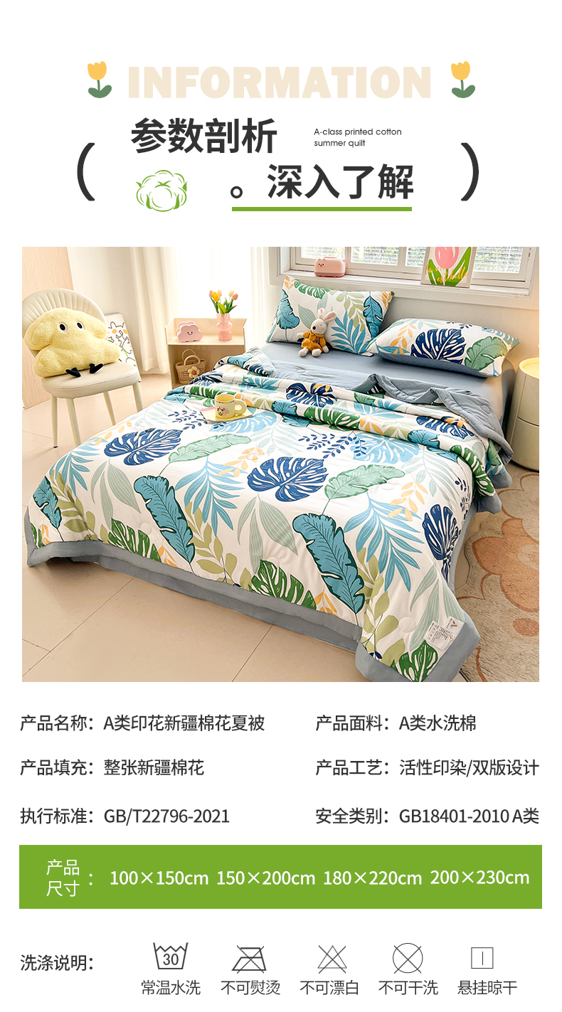 商品名称:晓时候 2025新款水洗棉夏被新疆棉花被印花夏凉被空调被薄被子 夏日风情